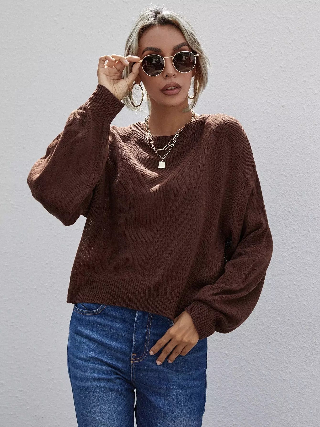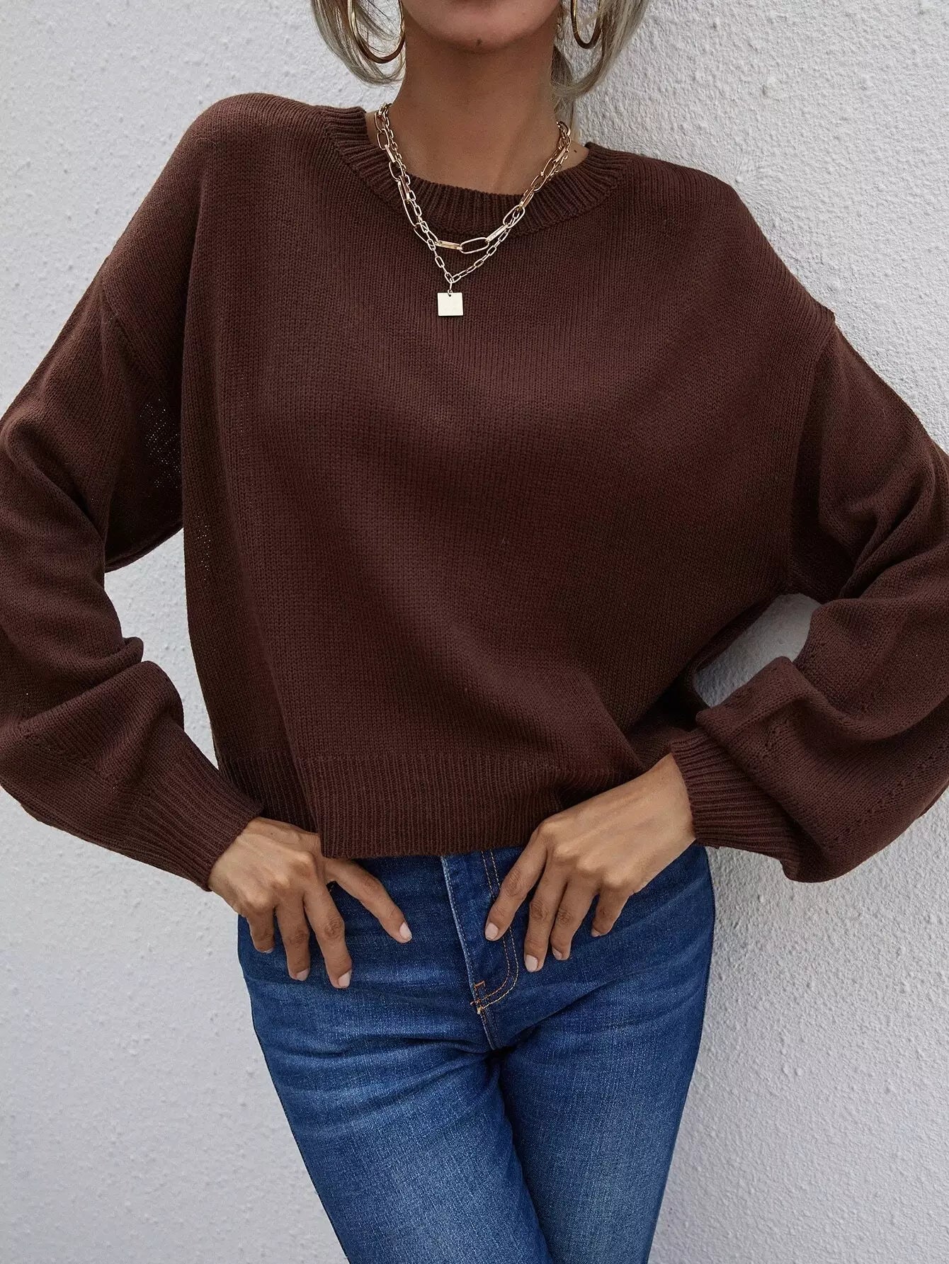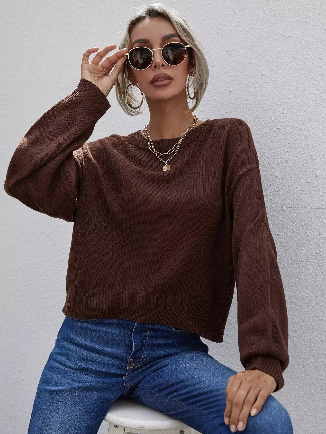 Solid Drop Shoulder Sweater