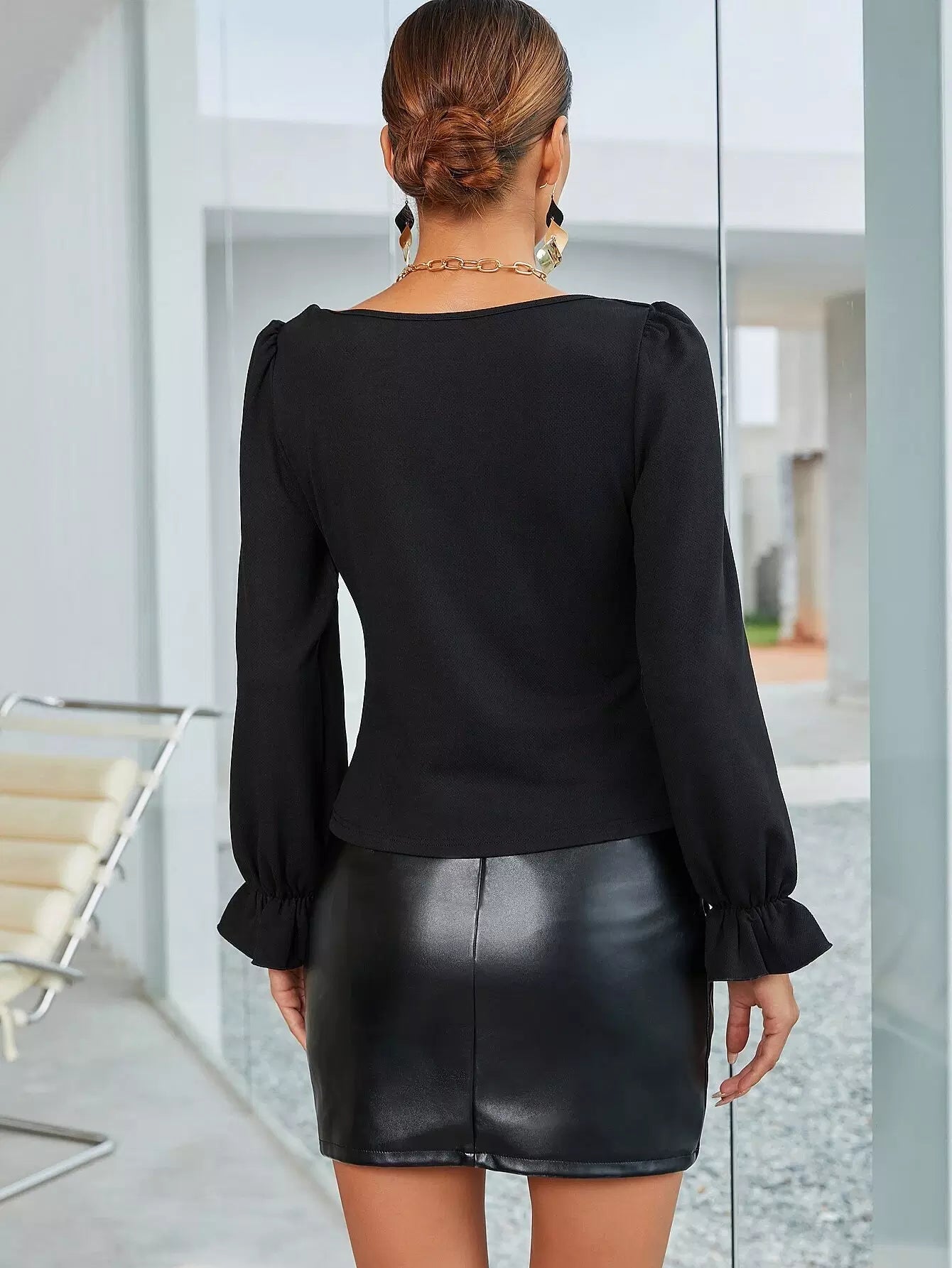 Solid Flounce Sleeve Tee