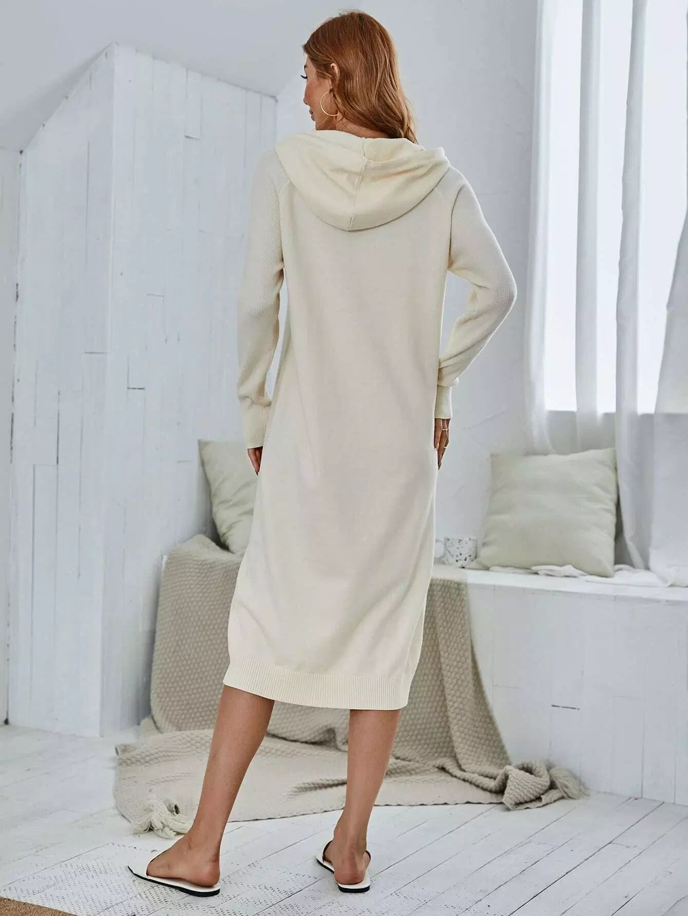 Solid Kangaroo Pocket Hooded Sweater Dress