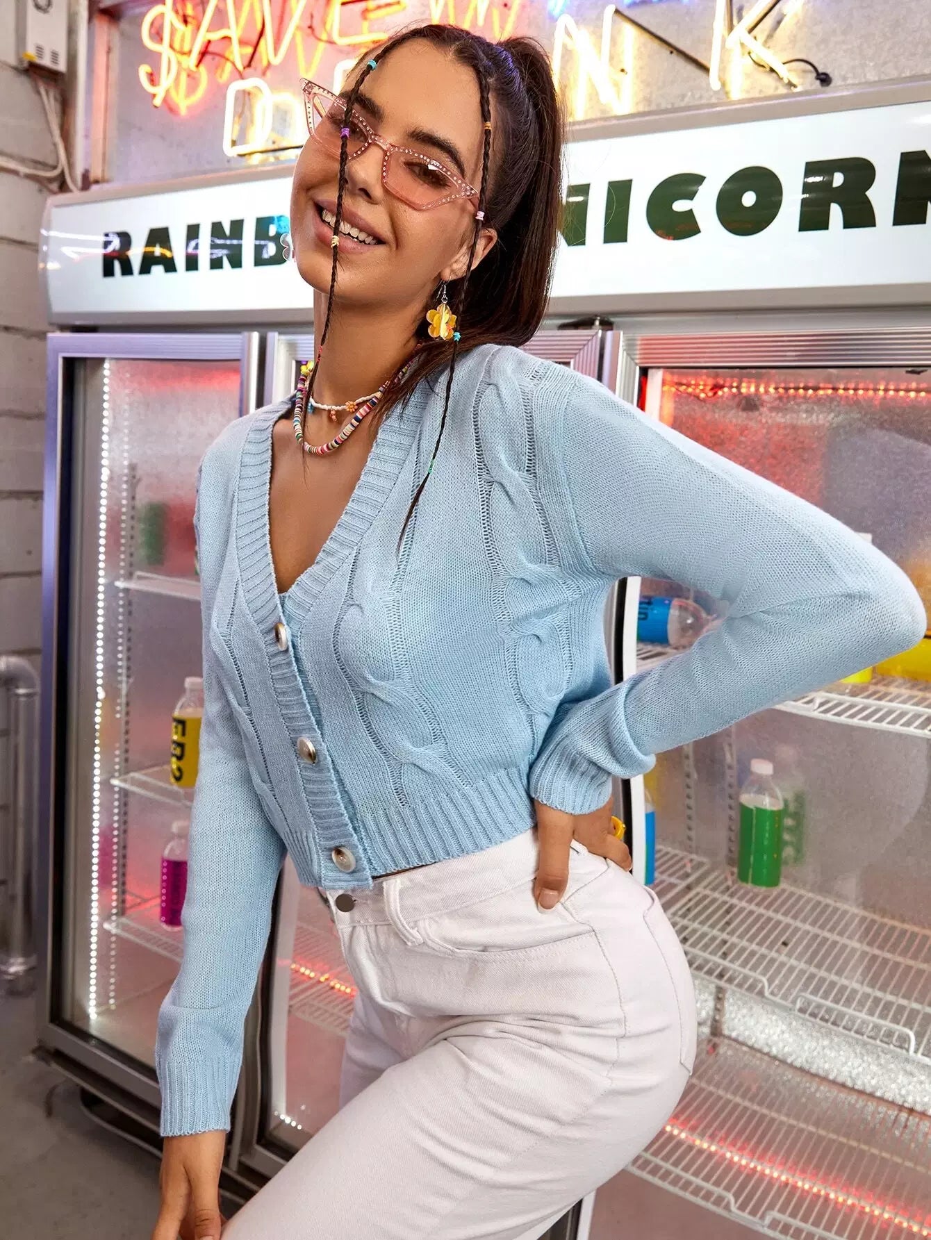 Solid Knit Cami Top & Drop Shoulder Cable Knit Cardigan