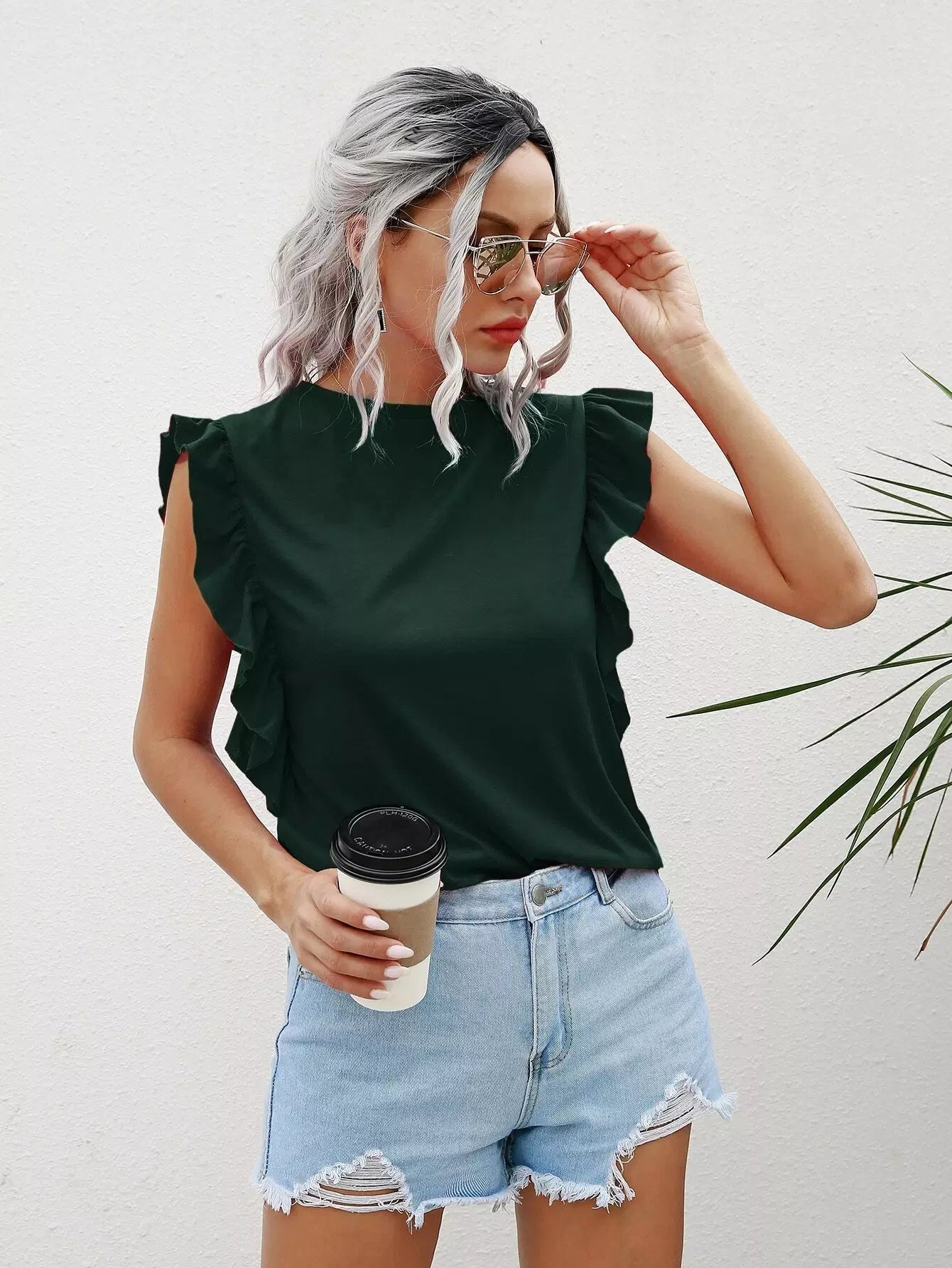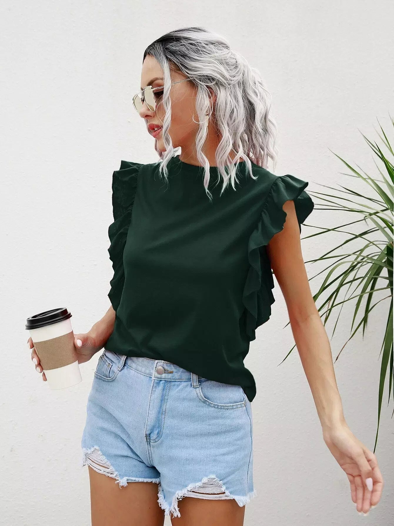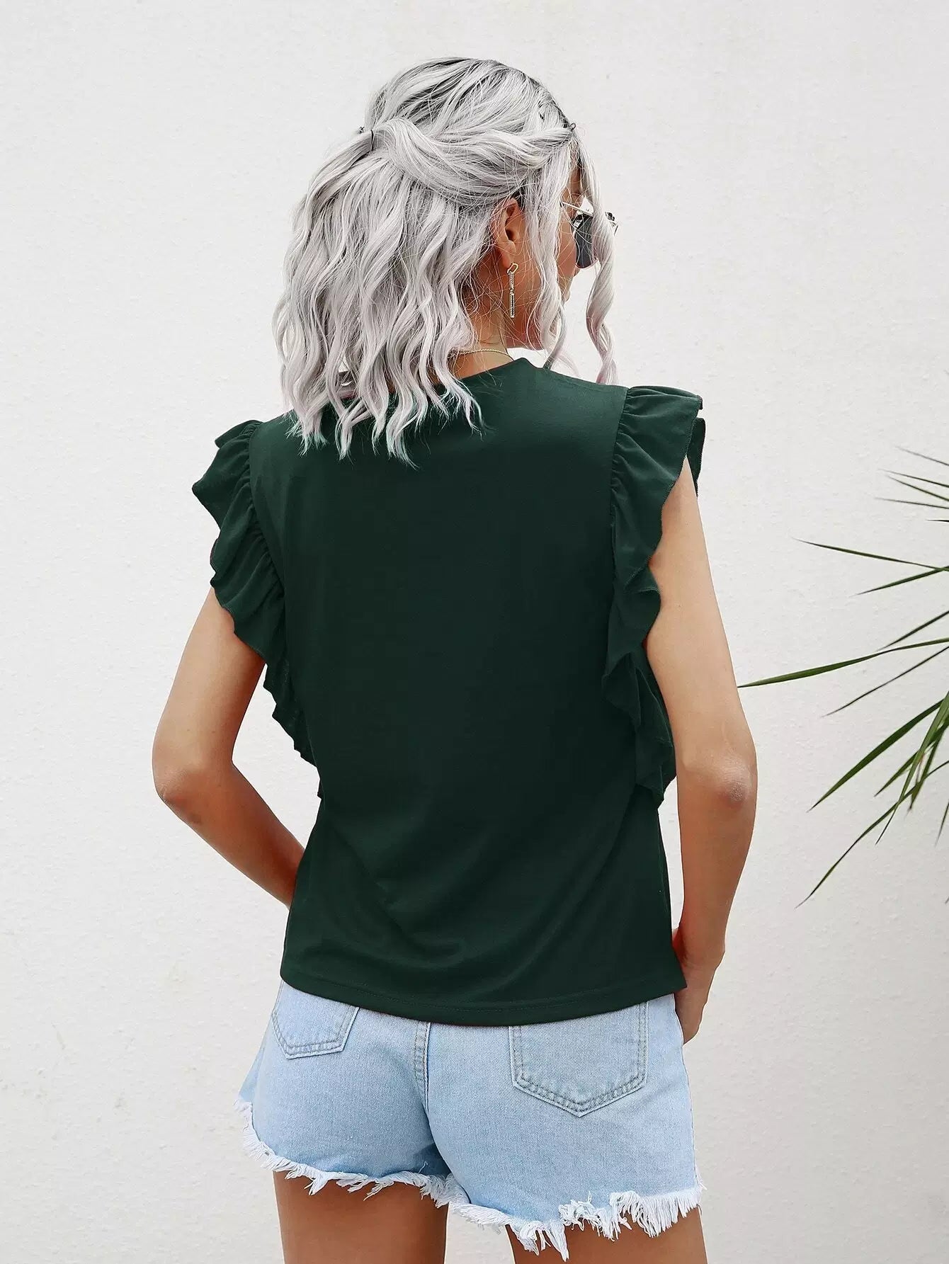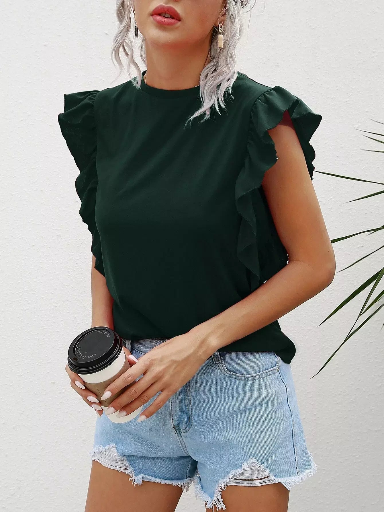 Solid Ruffle Trim Tee