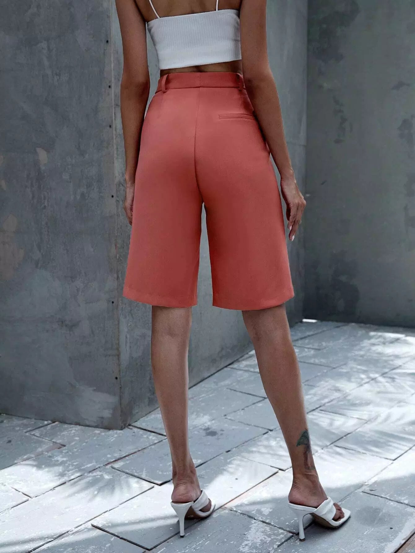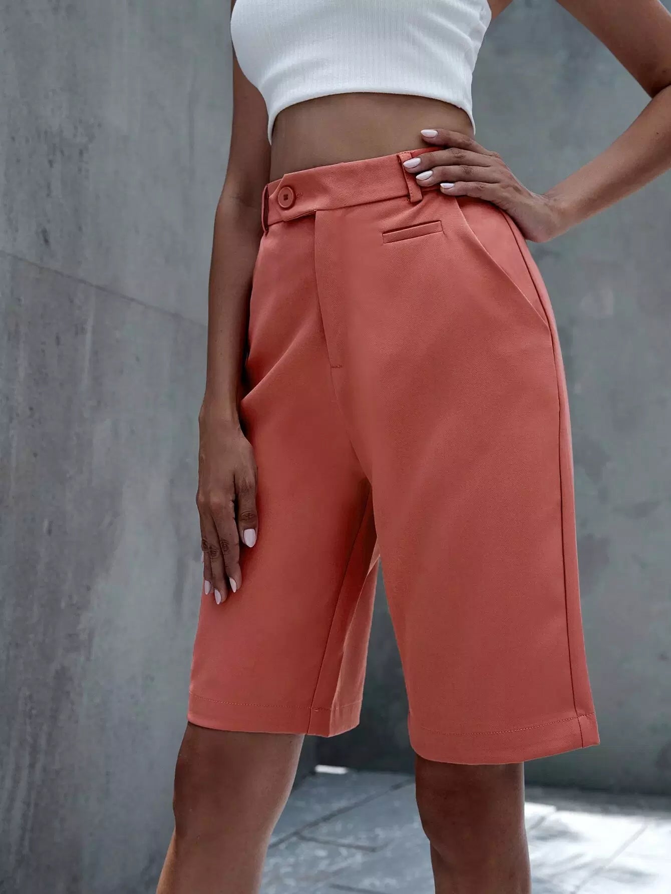 Solid Slant Pocket Bermuda Shorts