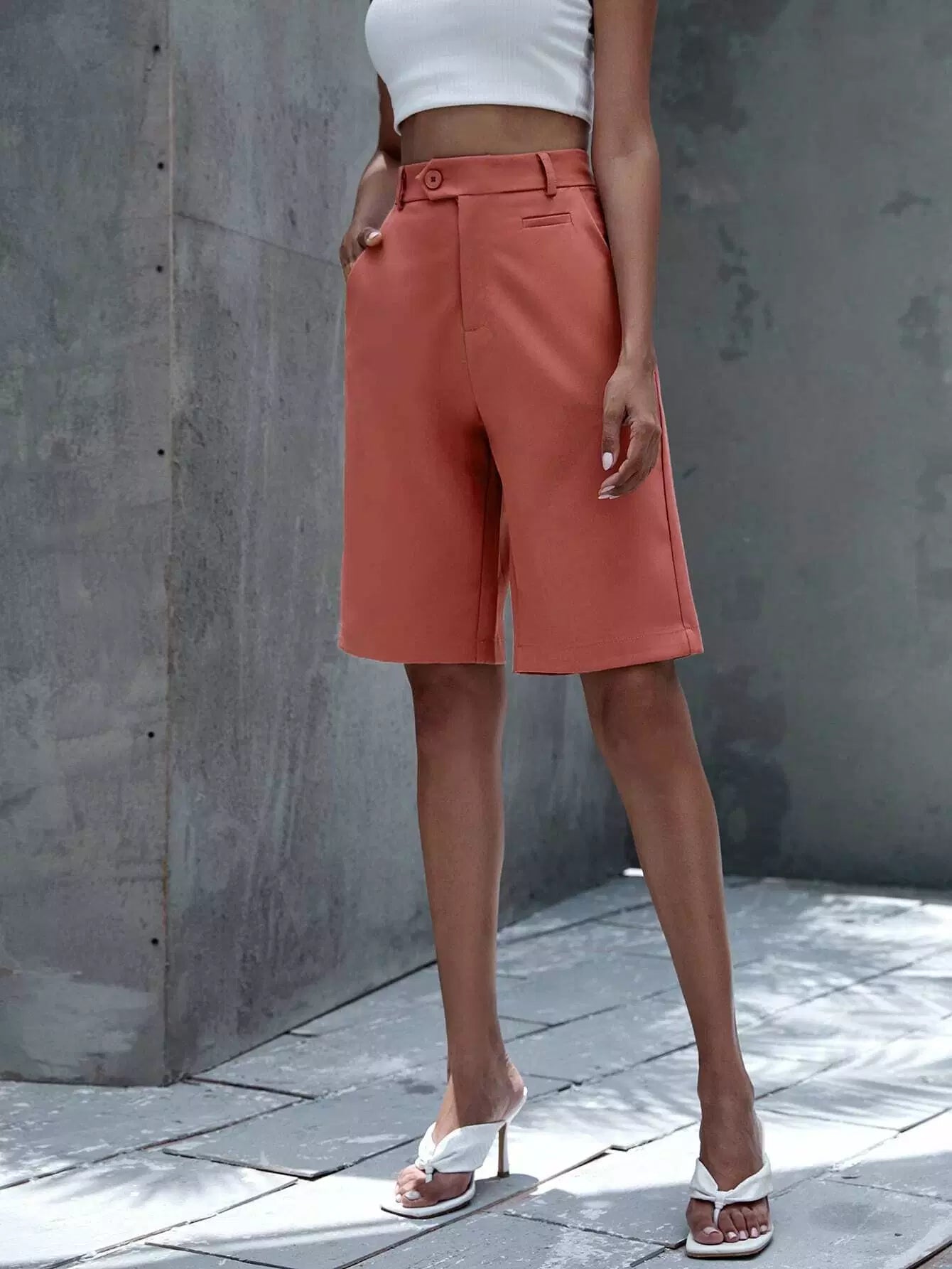 Women - Solid Slant Pocket Bermuda Shorts