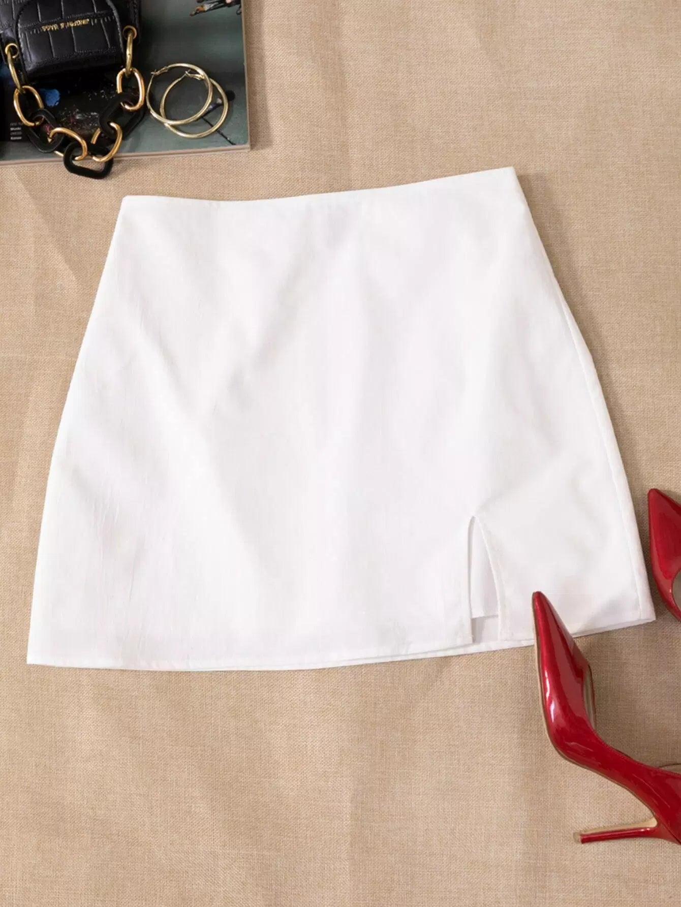 Solid Split Hem Zipper Skirt