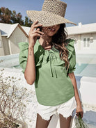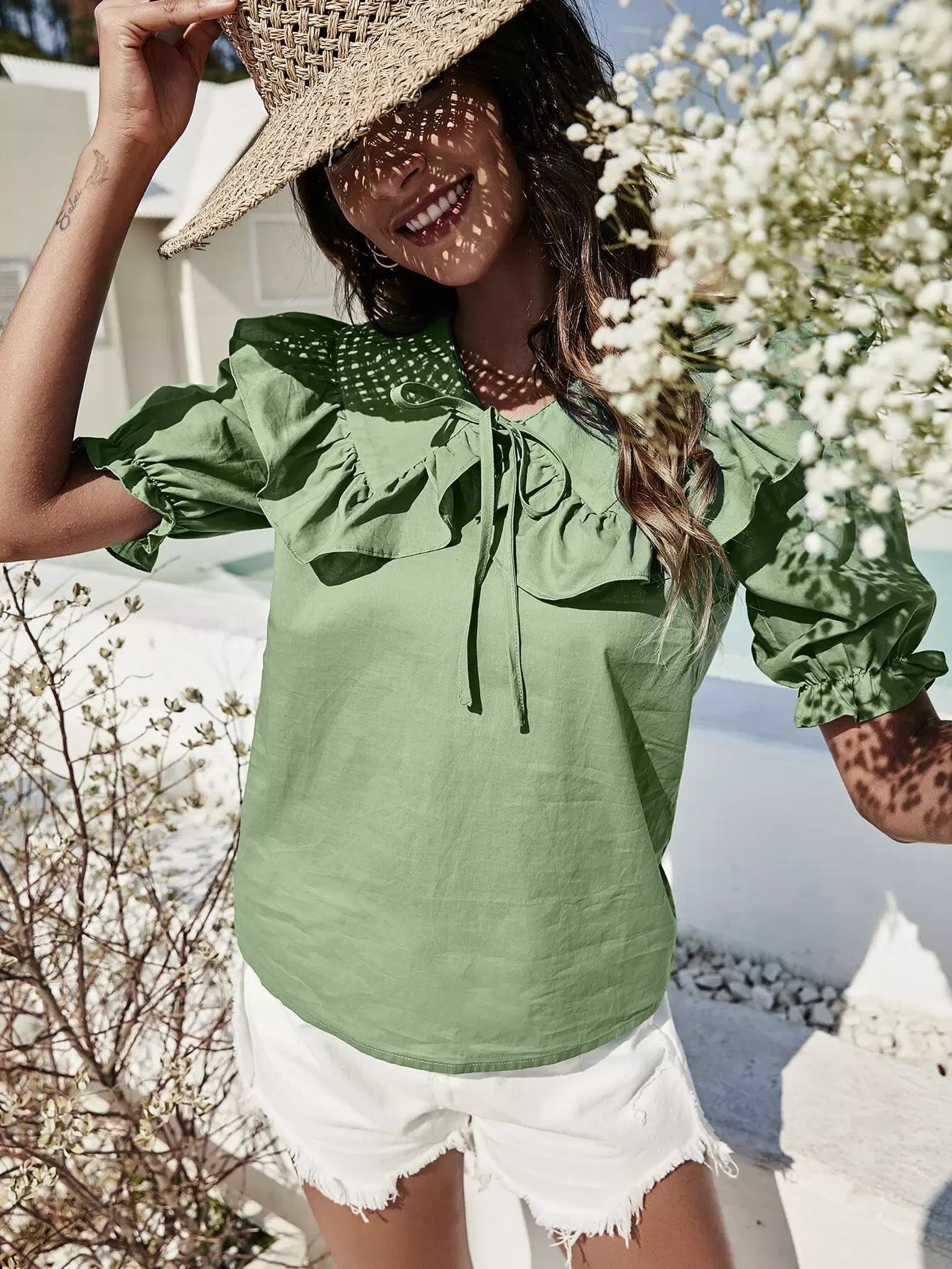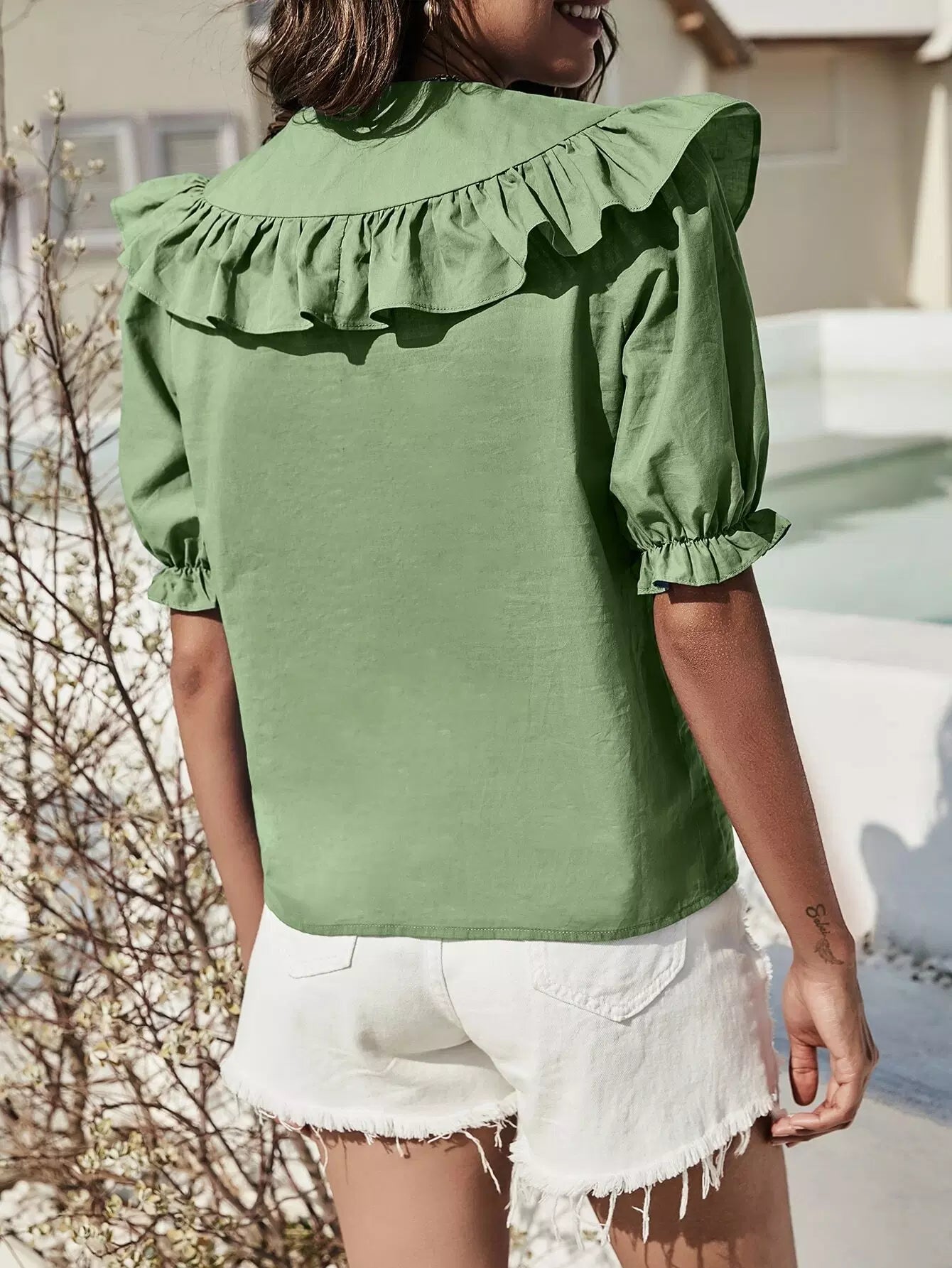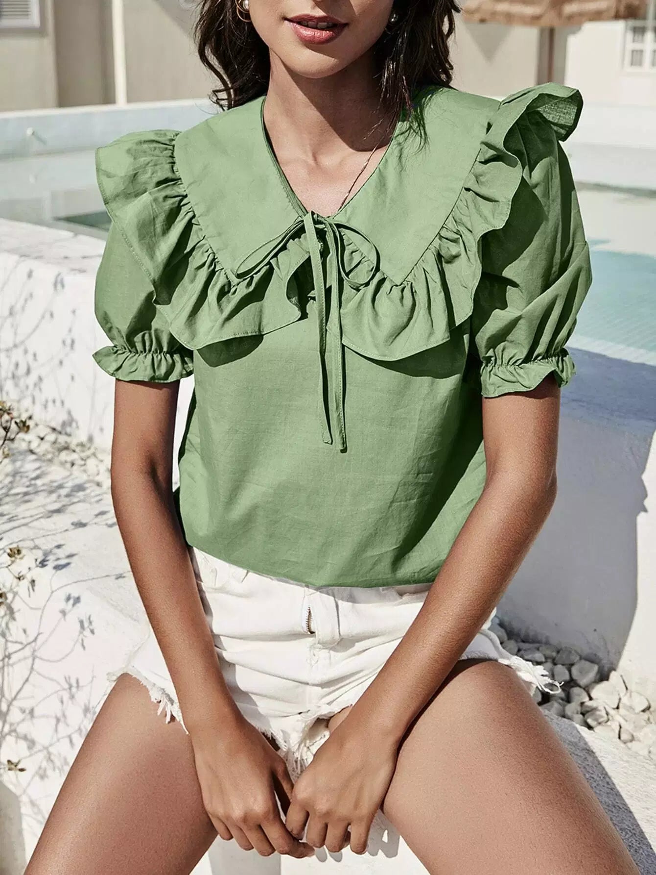 Women - Solid Statement Collar Puff Sleeve Blouse
