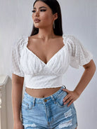 Solid Swiss Dot Crop Blouse
