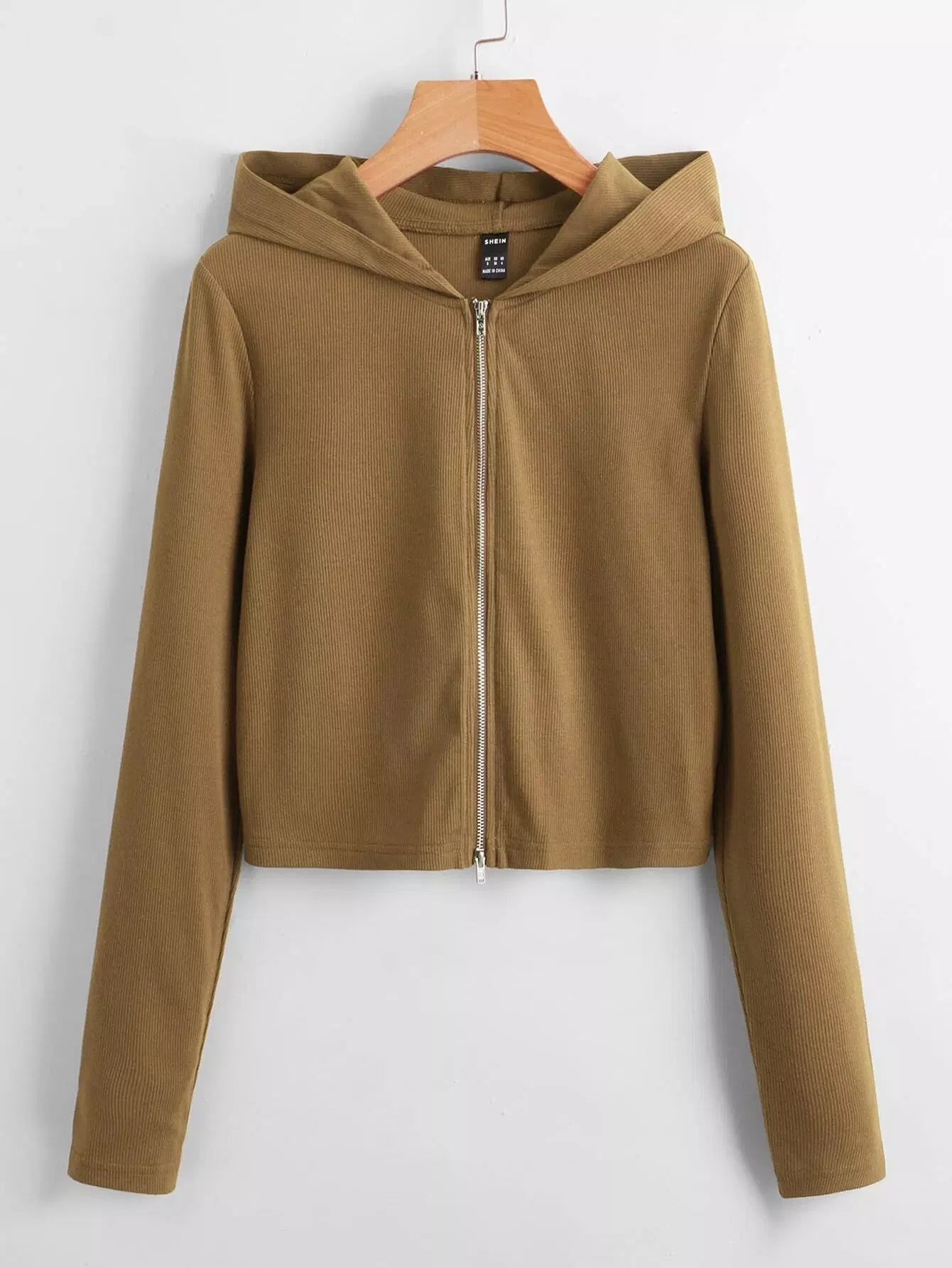 Solid Zip Up Hooded Jacket
