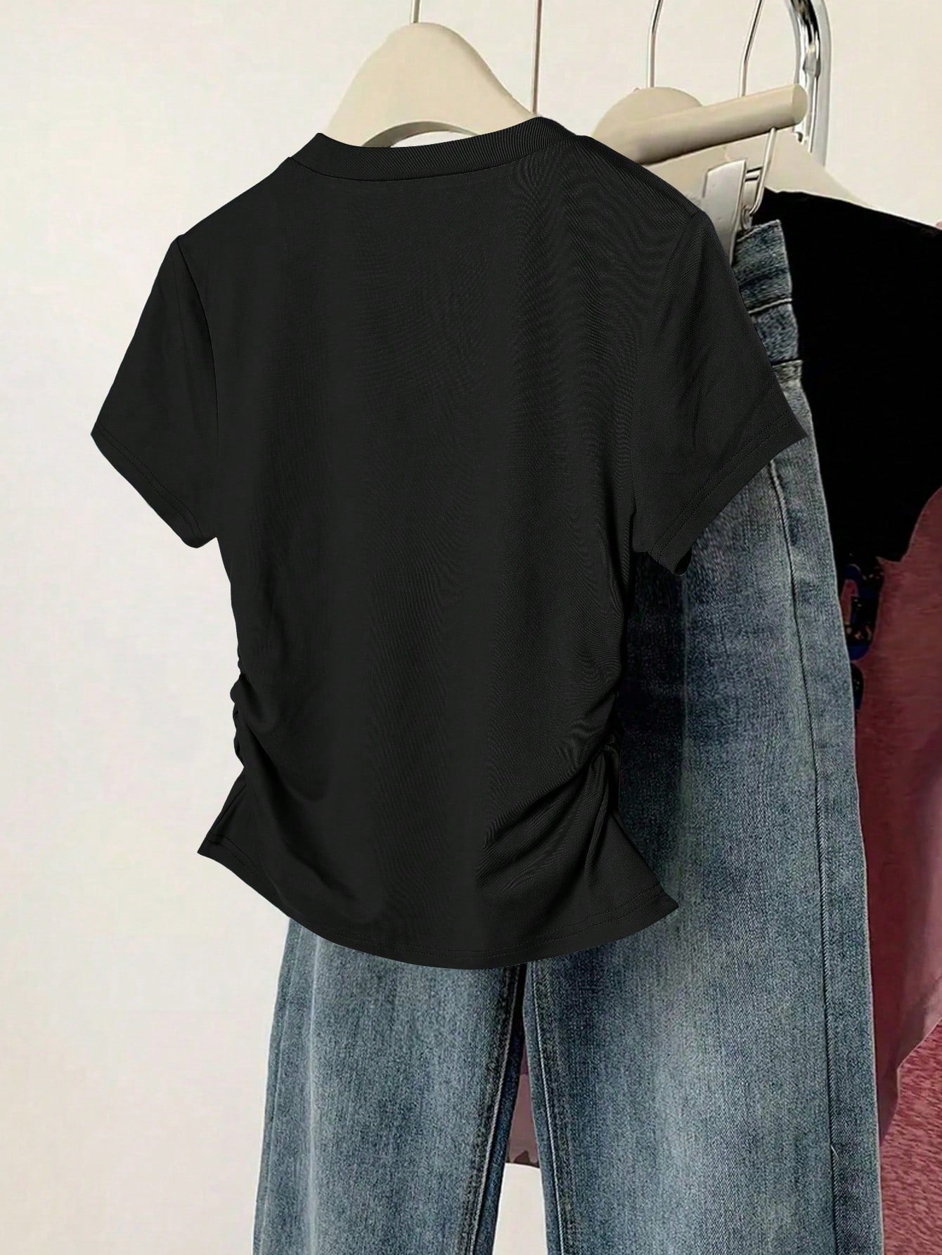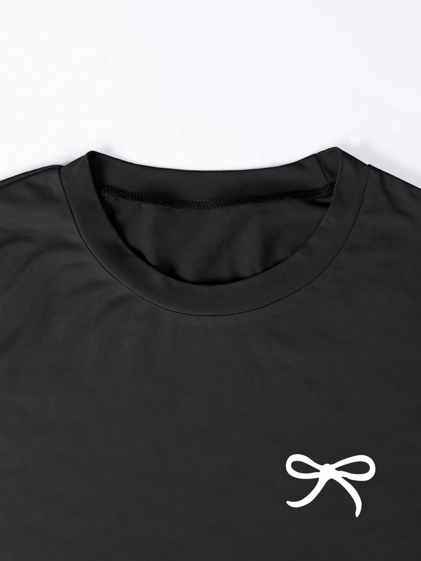 Sparklyn Teen Girl Round Neck Short Sleeve Bow Print Simple Casual T-Shirt Summer Holiday
