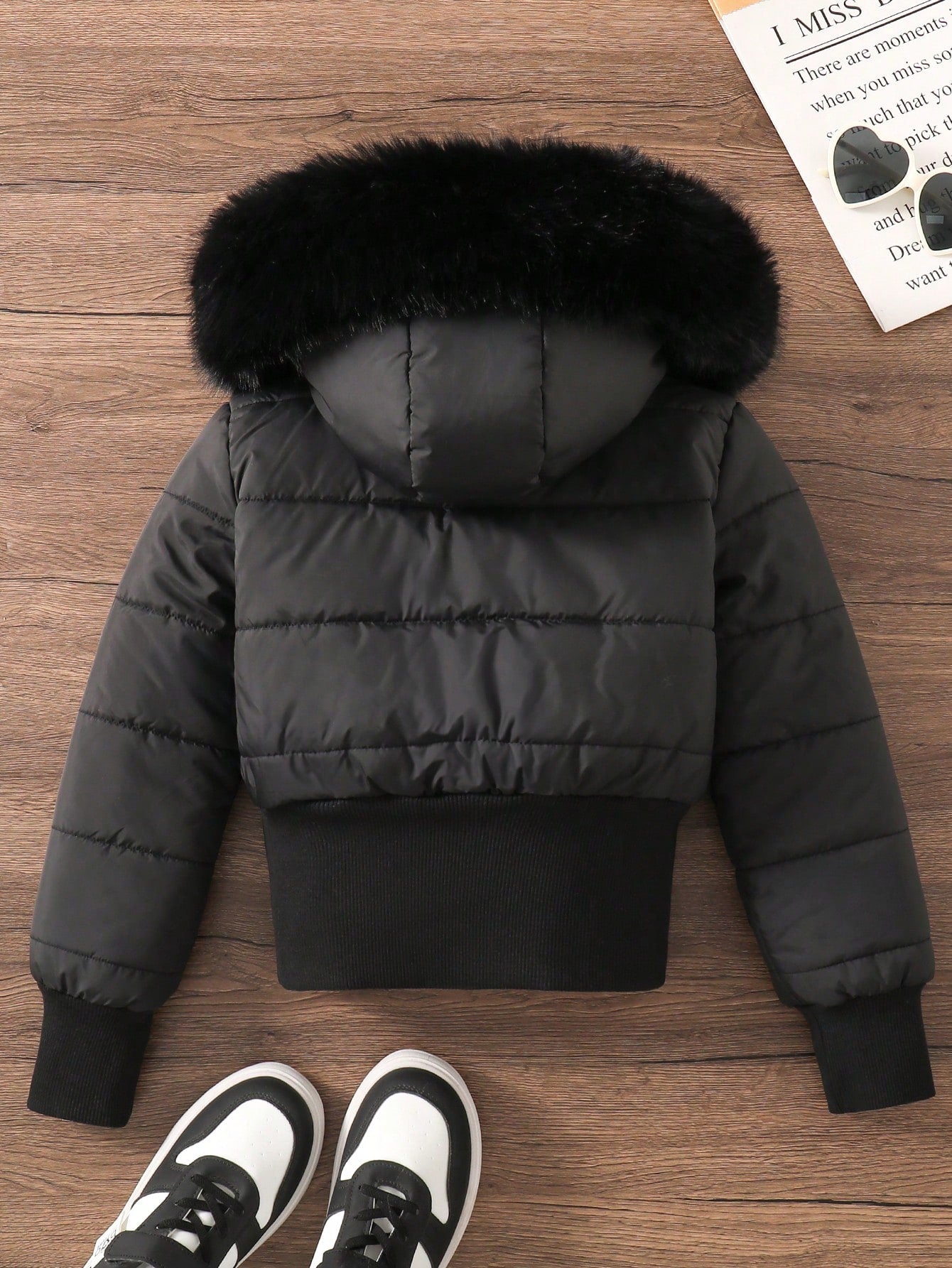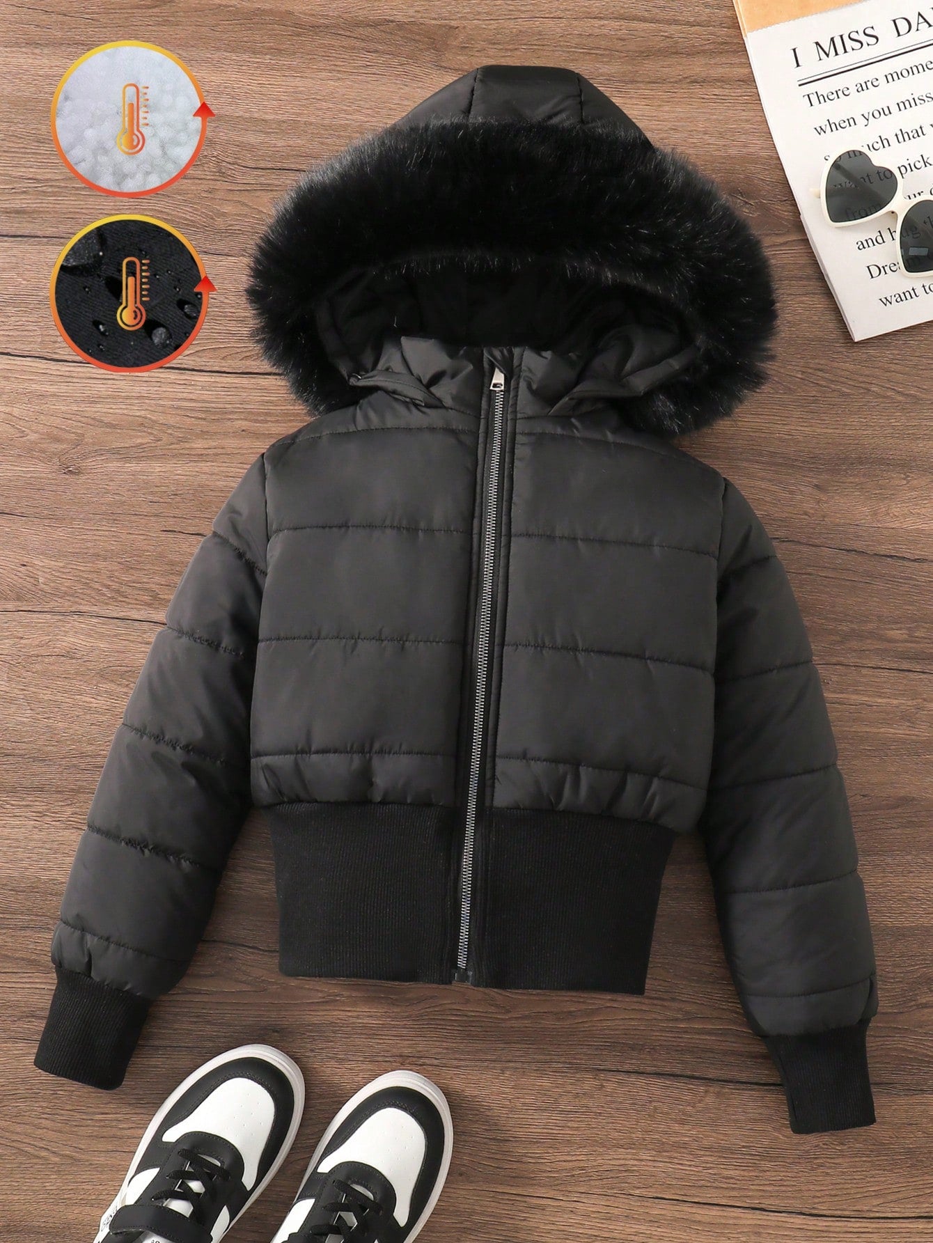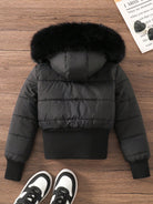 Sparklyn Tween Girl Cropped Wide Hem Warm Lined Water-Resistant Long Sleeve Padded Coat