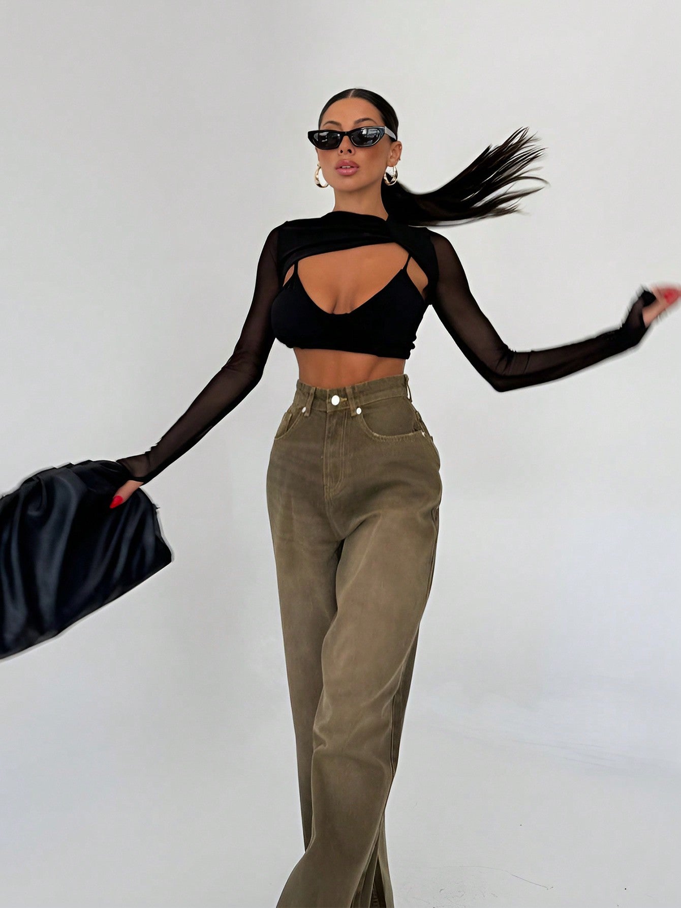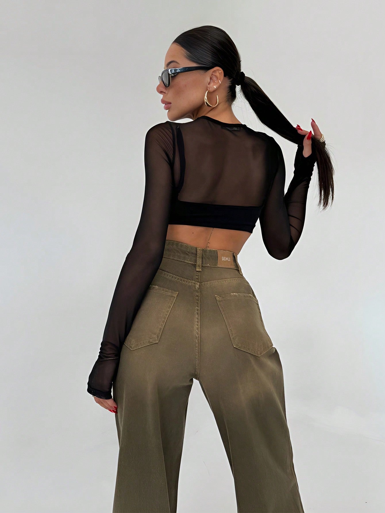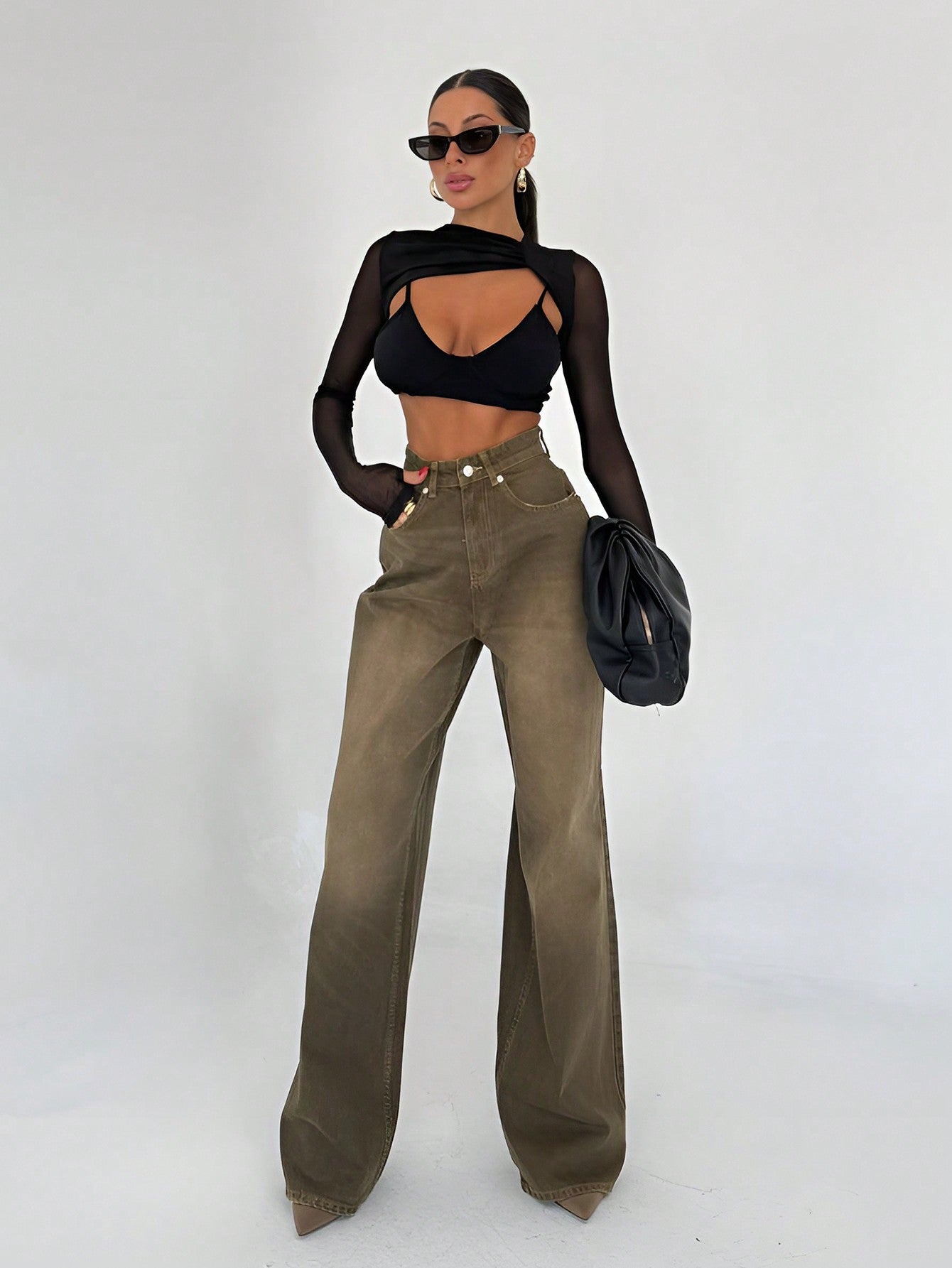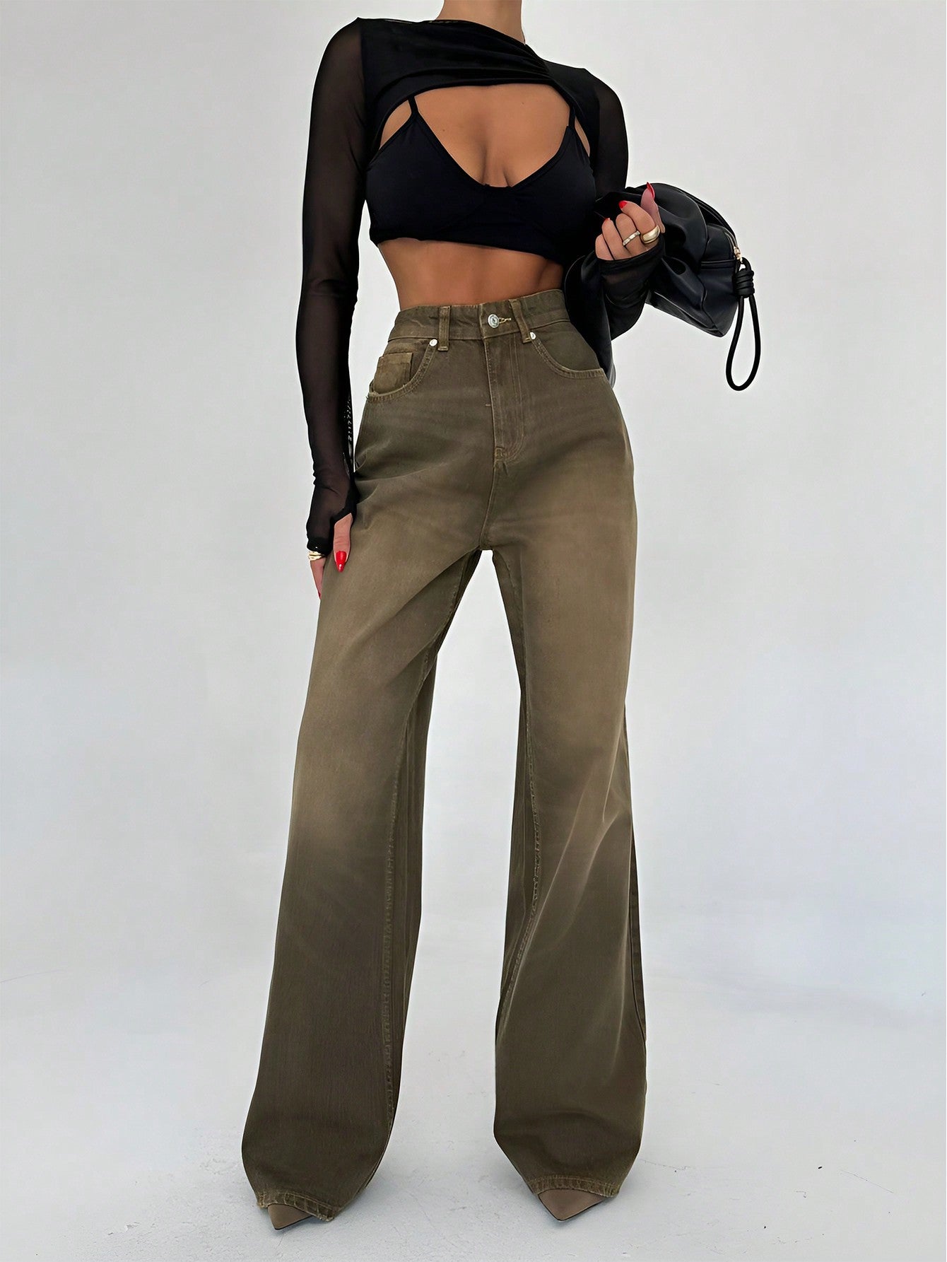 SQUALO Women's Ultra Long High Waisted Vintage Wash Denim Jeans