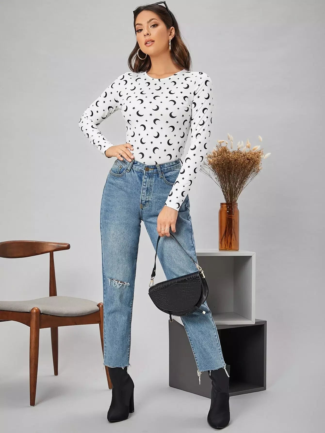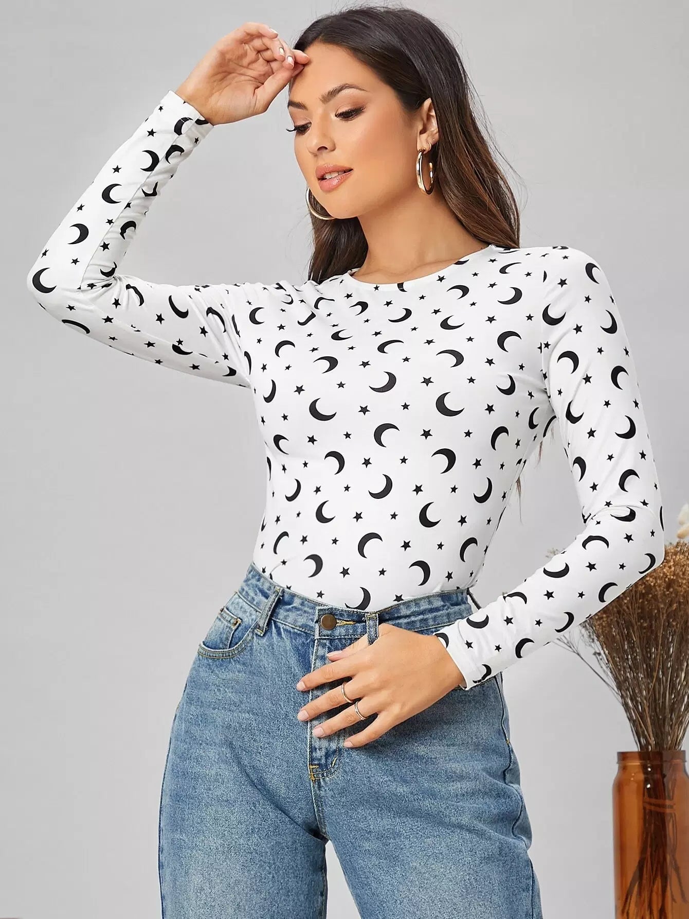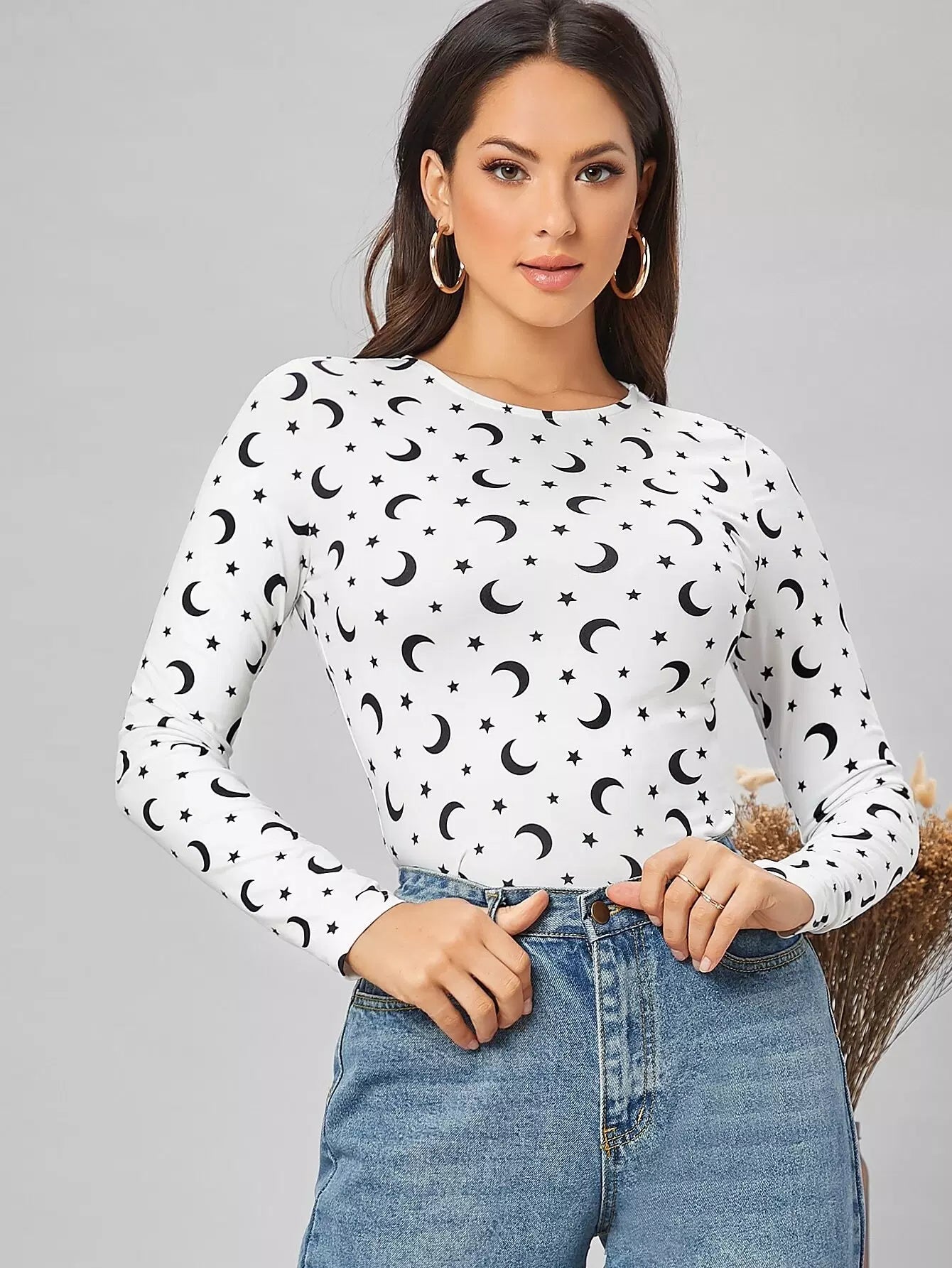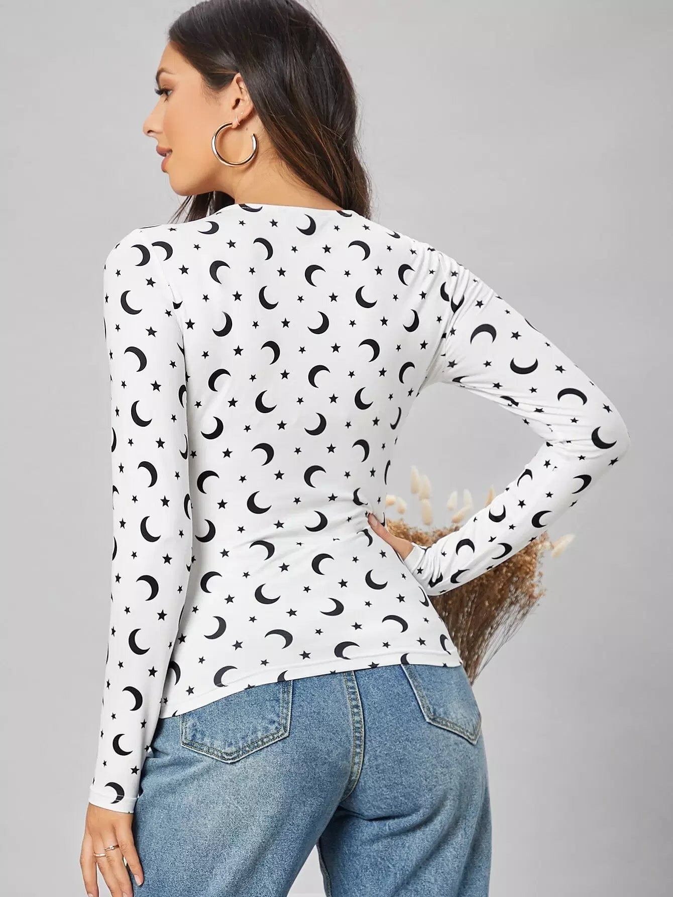 Star and Moon Print Fitted Tee