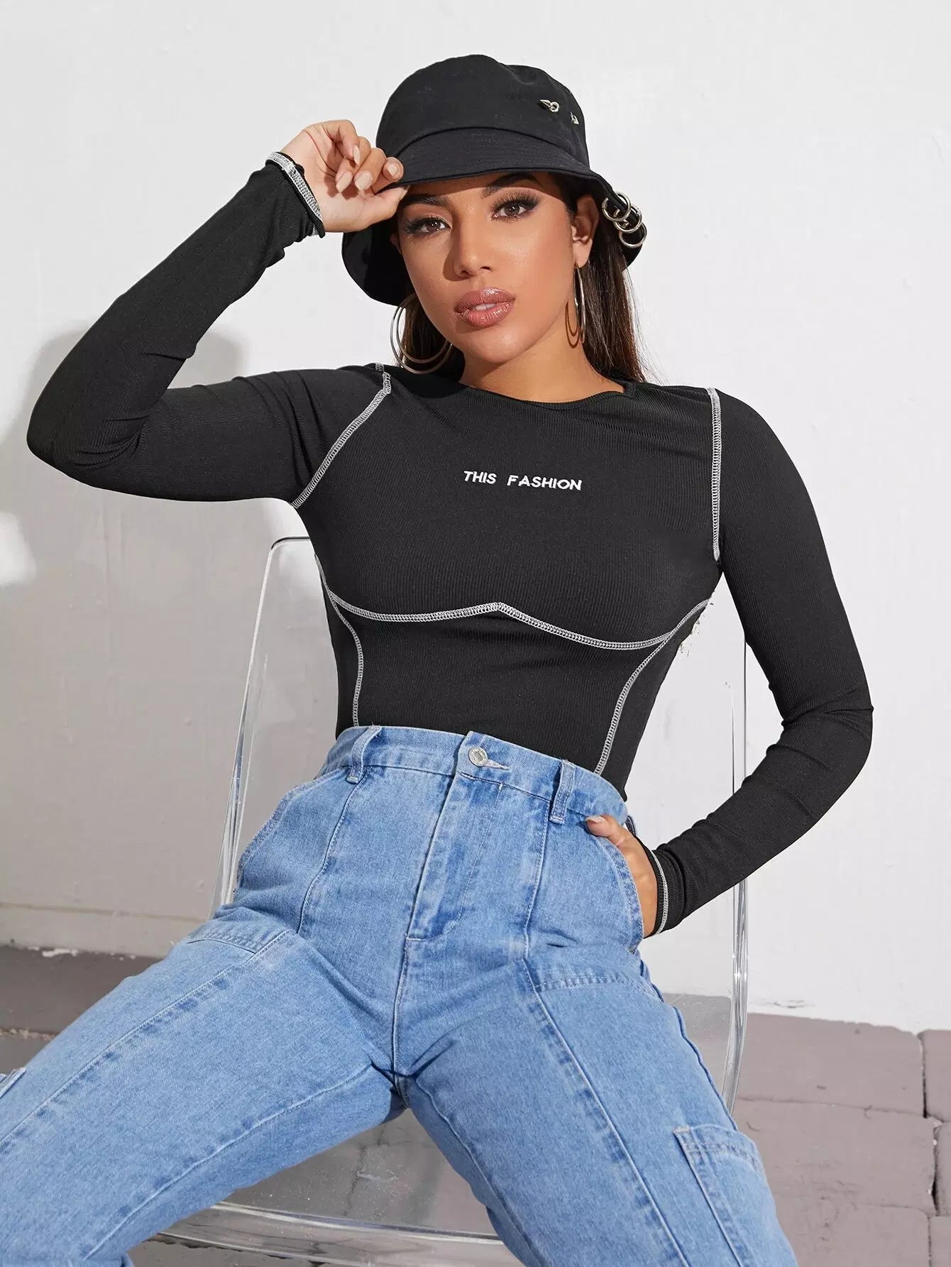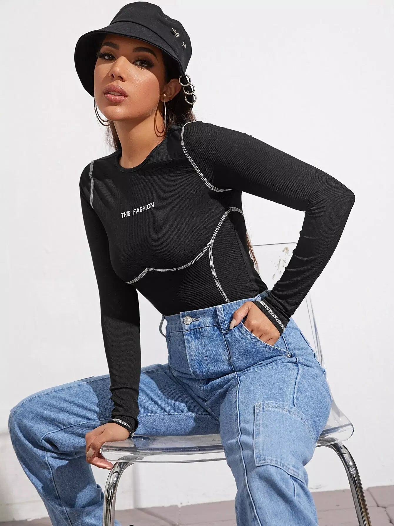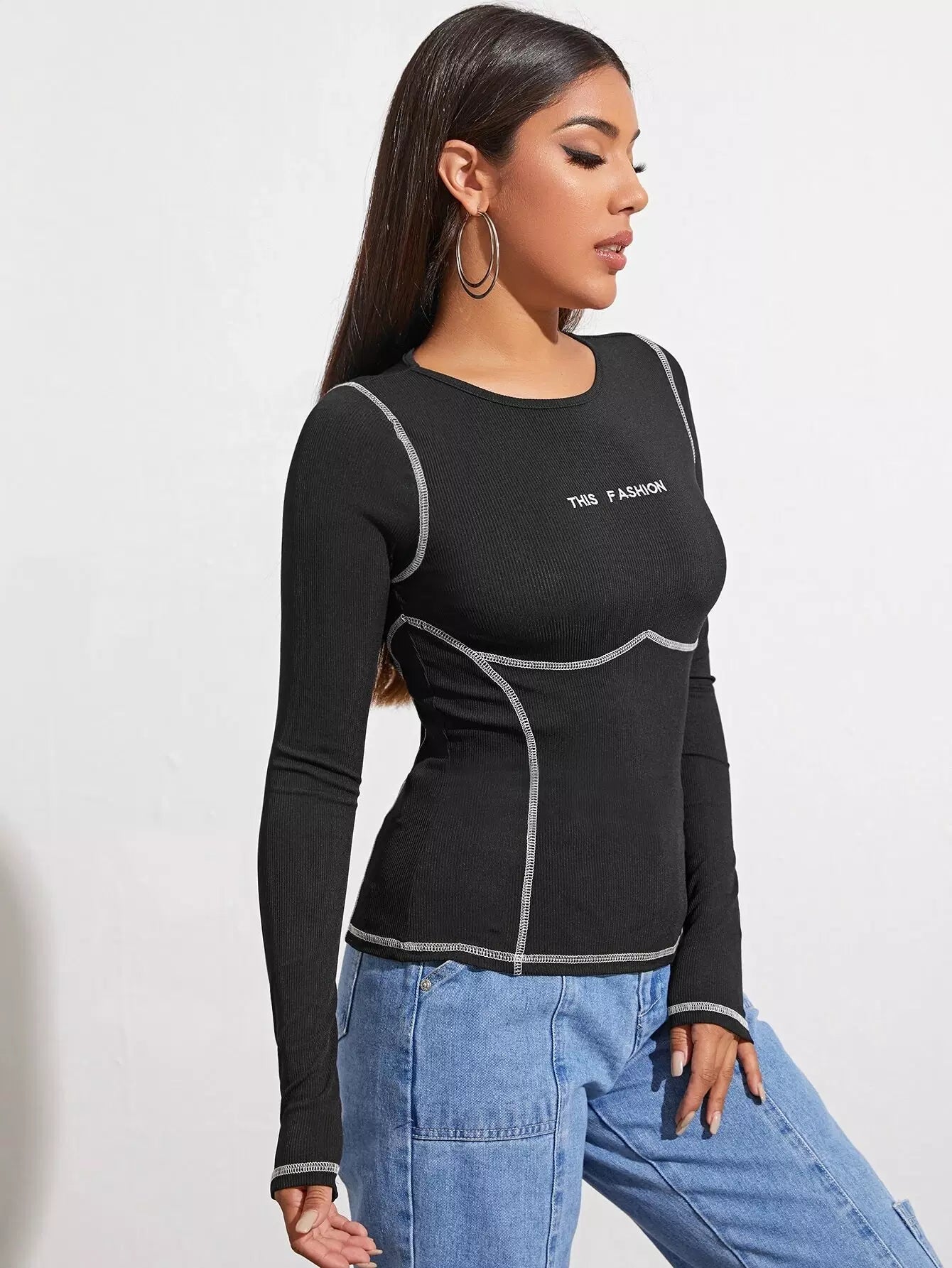 Stitch Trim Embroidered Letter Tee