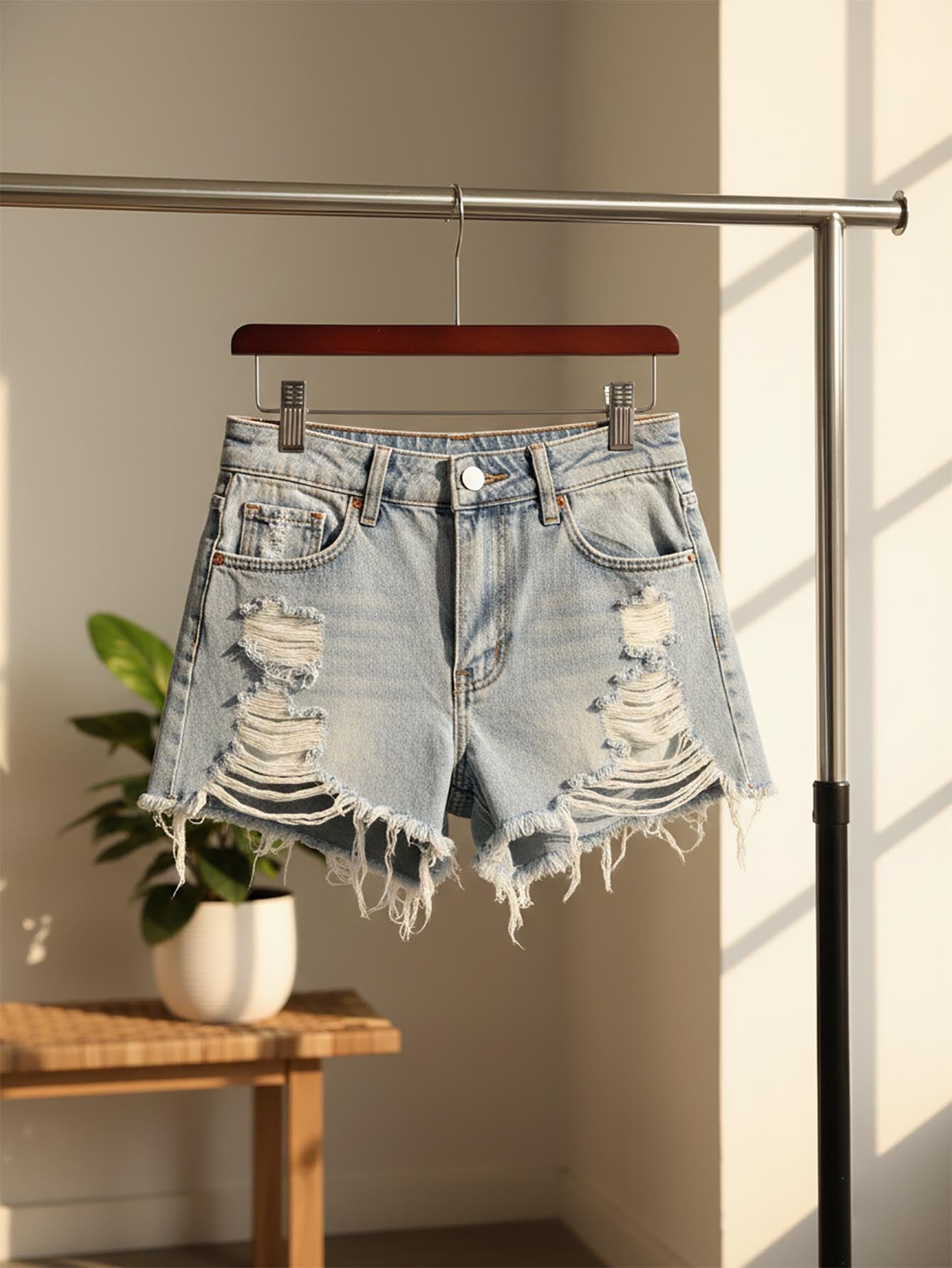 STLY Women High Waist Distressed Vintage Denim Shorts