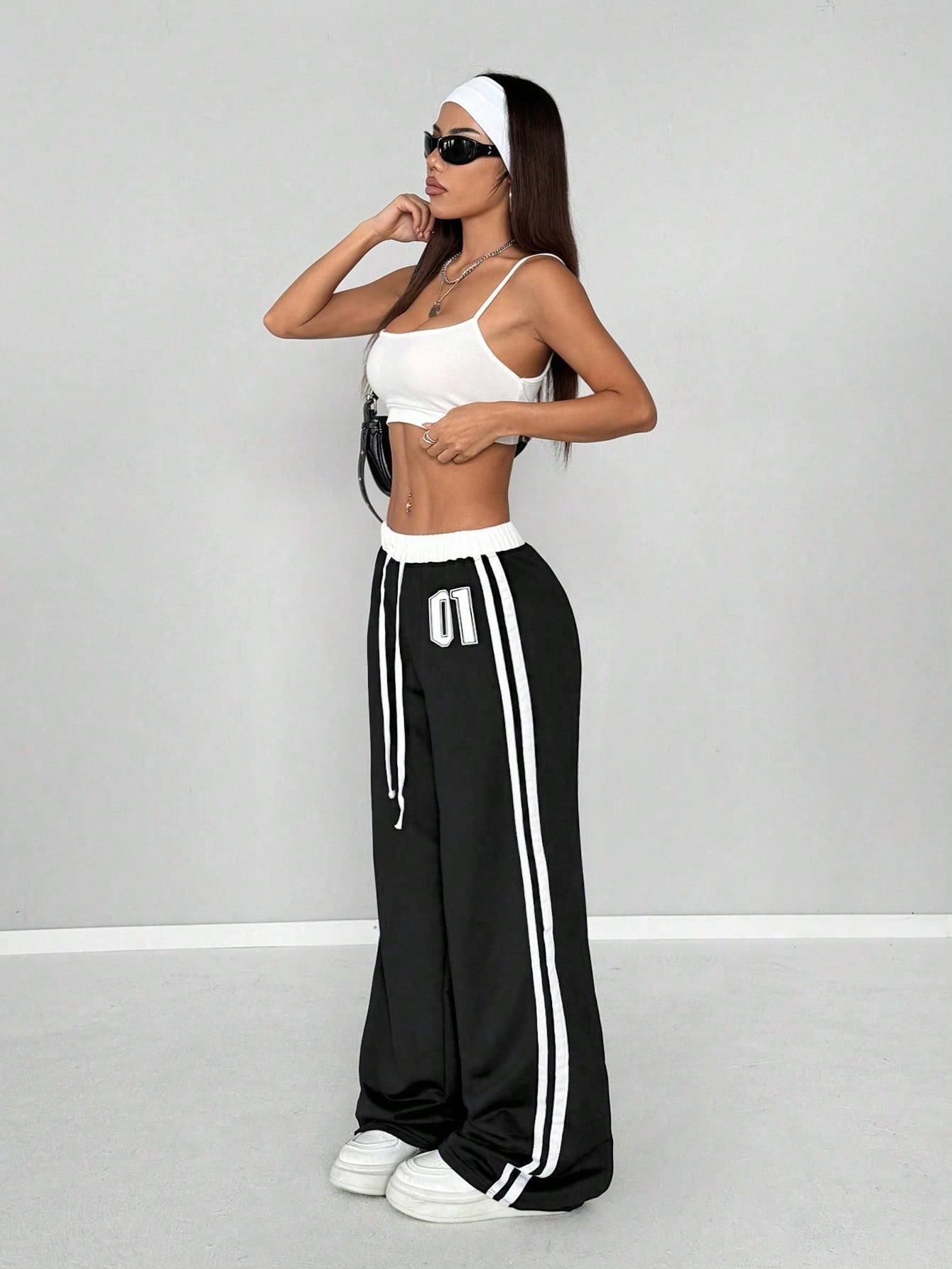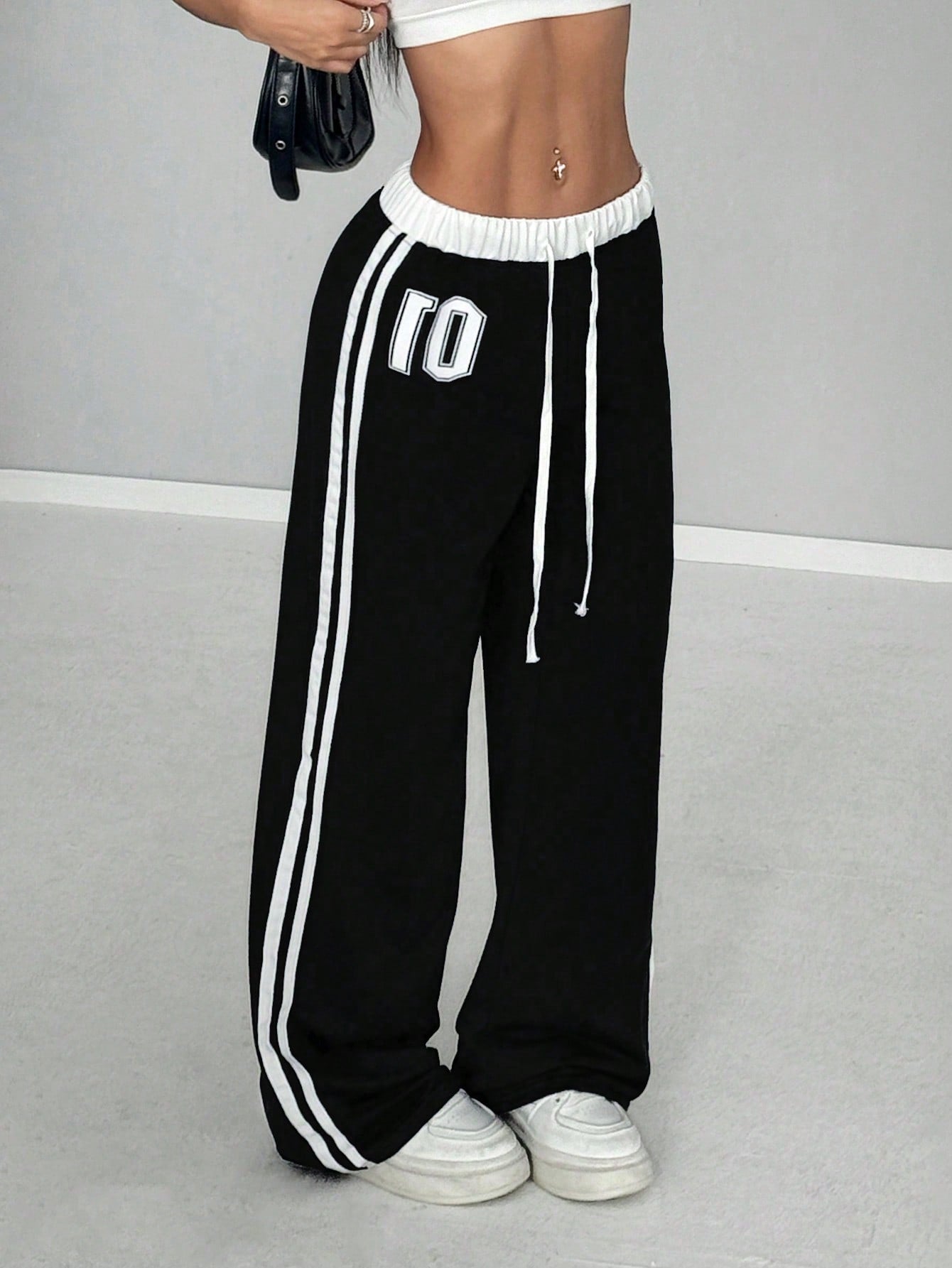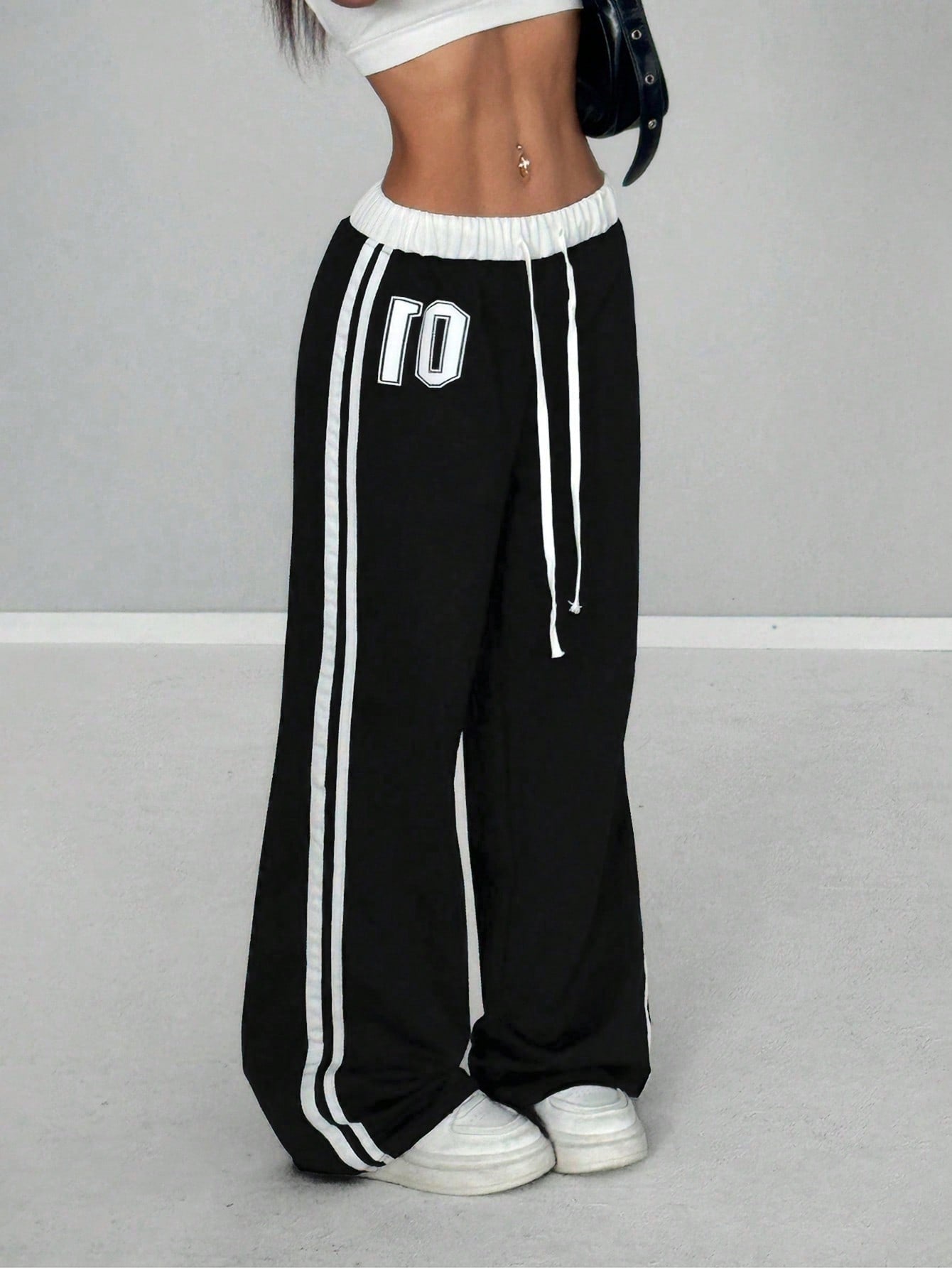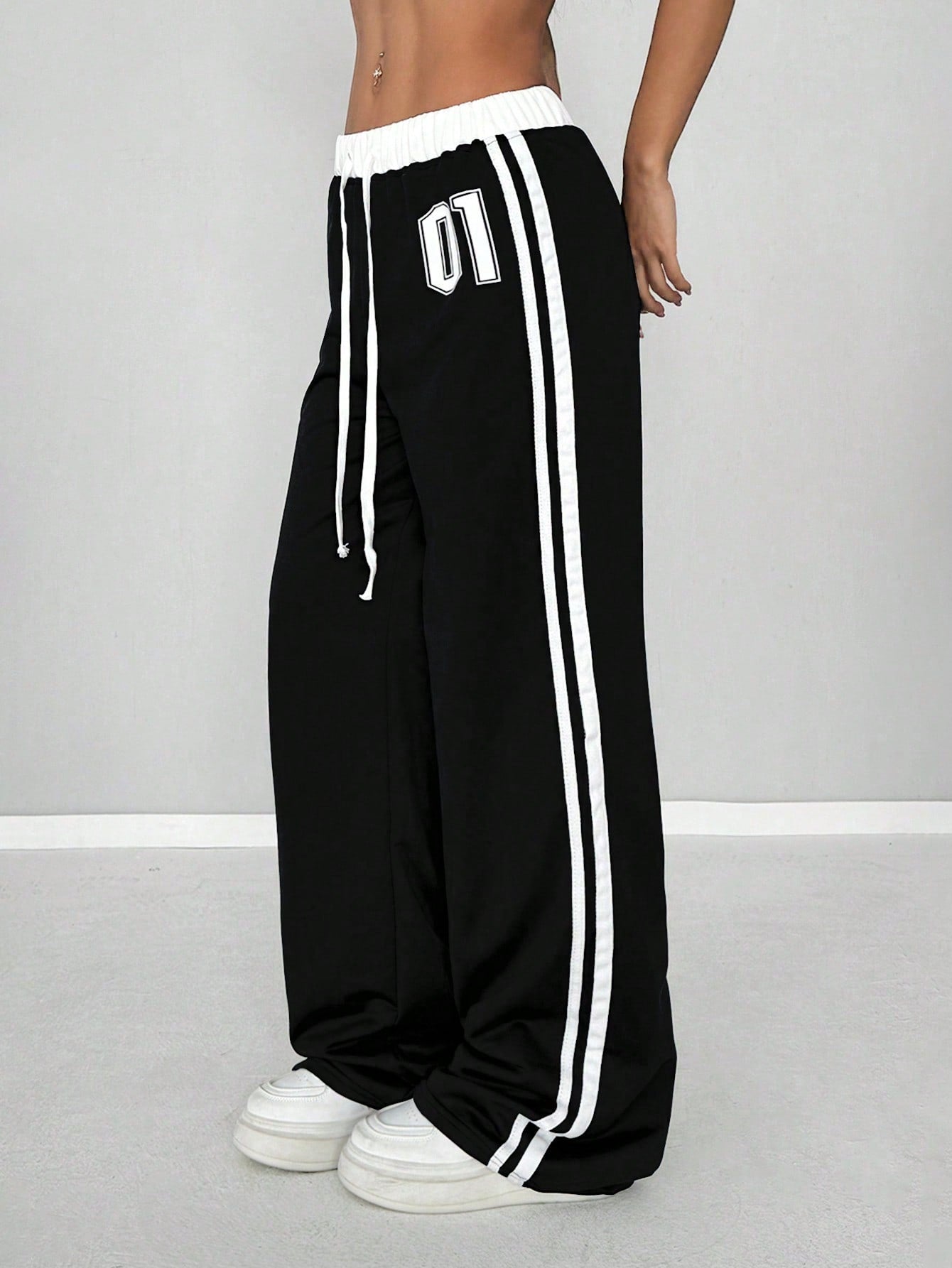 StreetHx Women's Spring & Summer Numeric Print Waist Insert Casual Sports Streetwear Retro Long Sweatpants Graduation