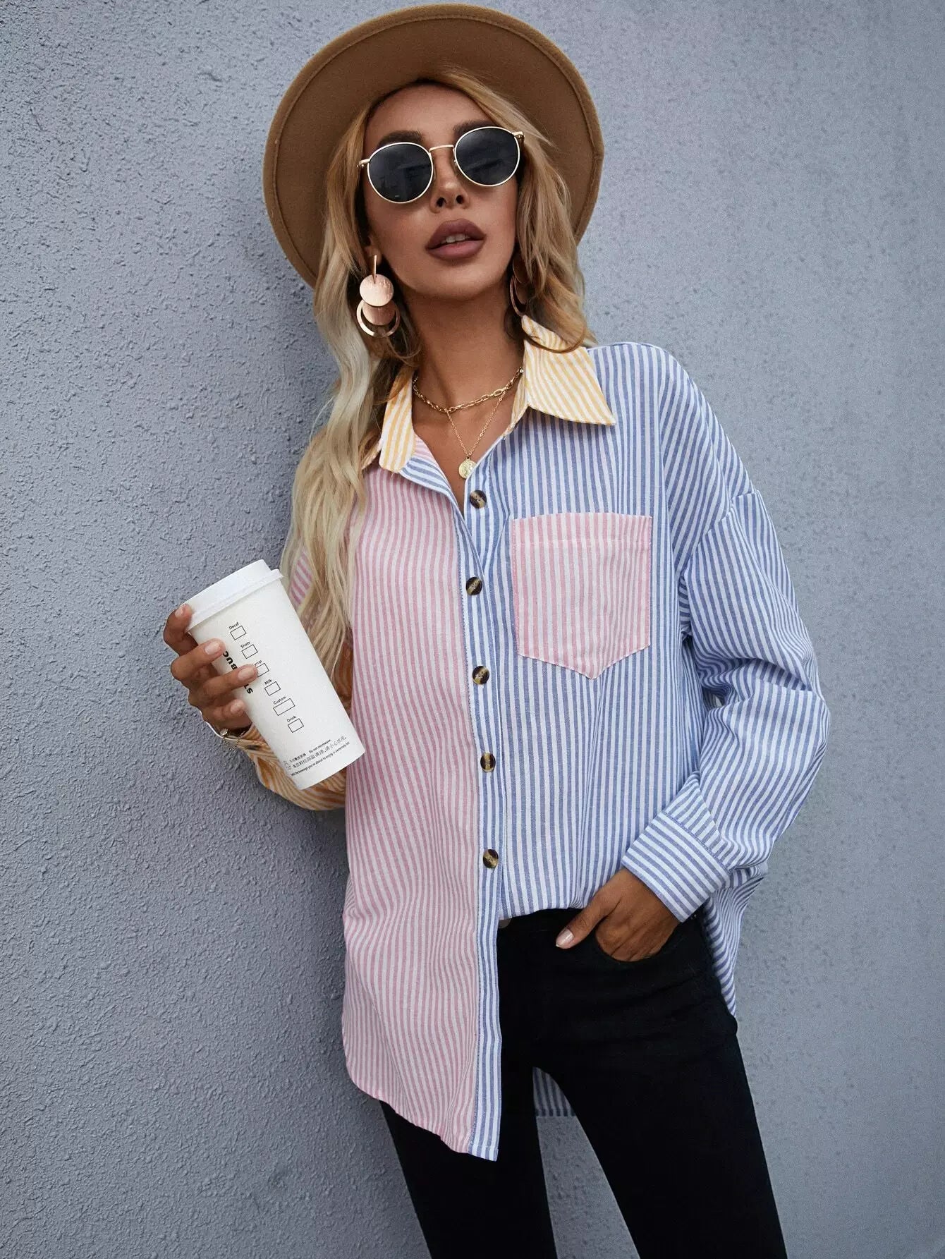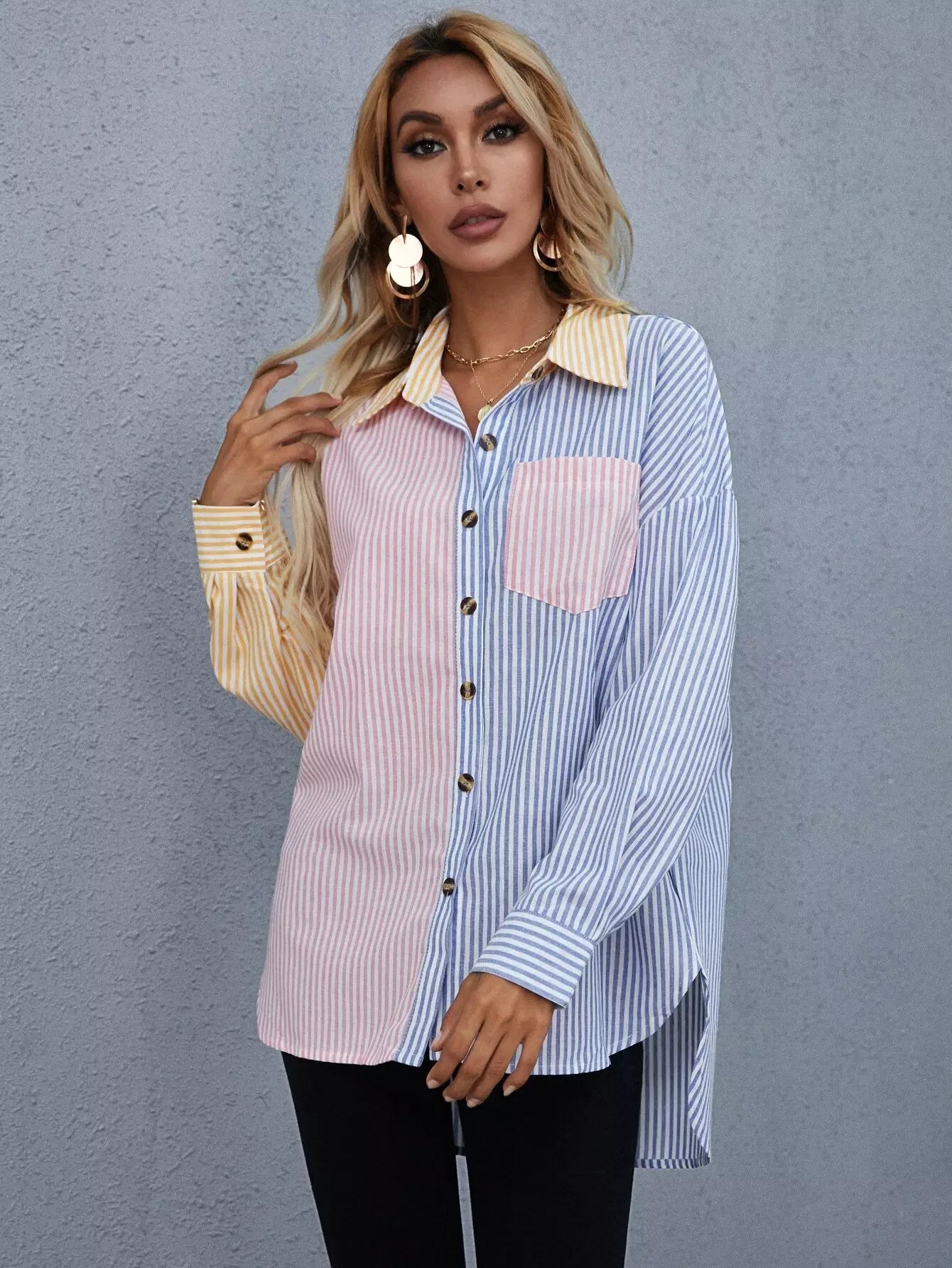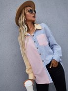 Striped Colorblock Button Through Shirt