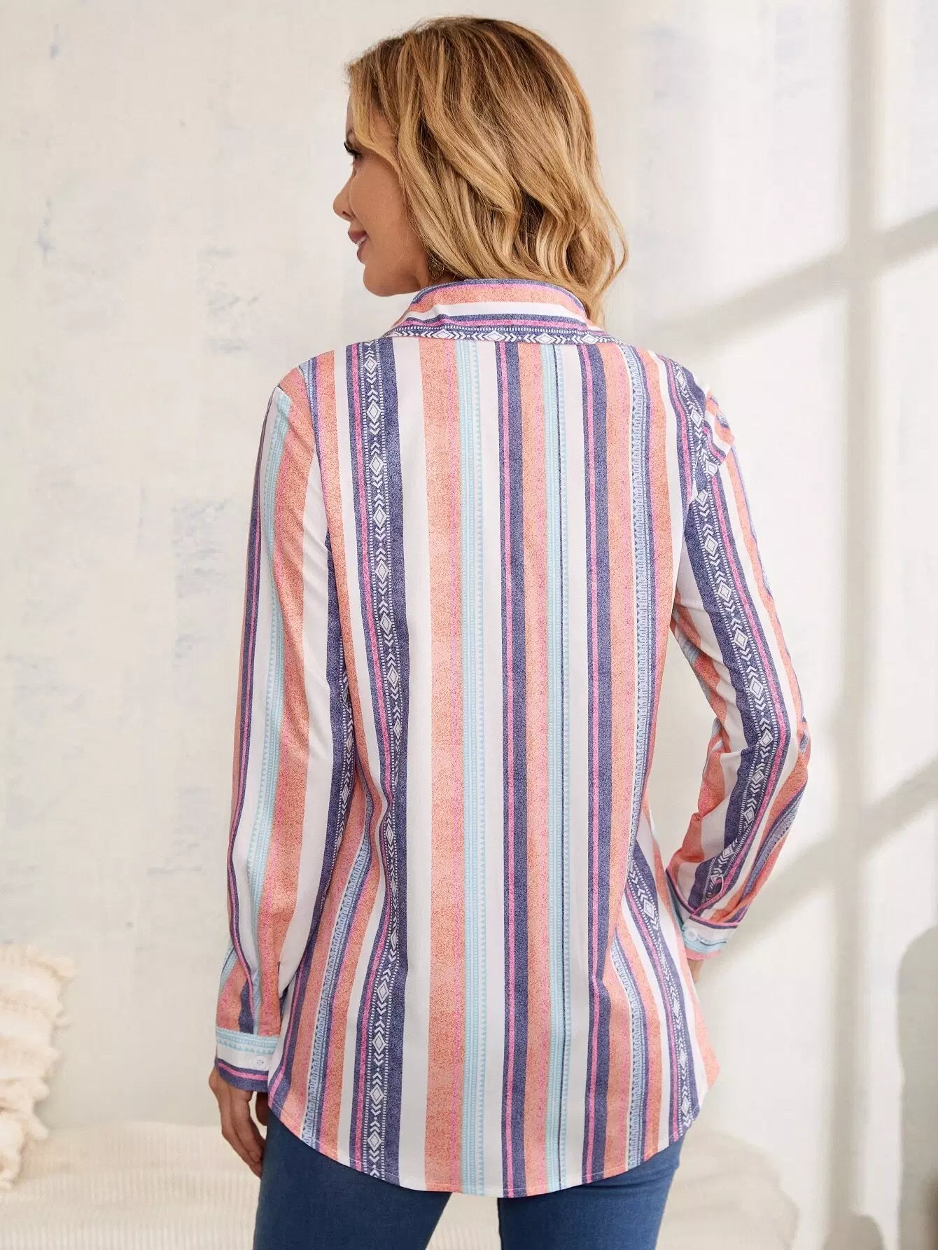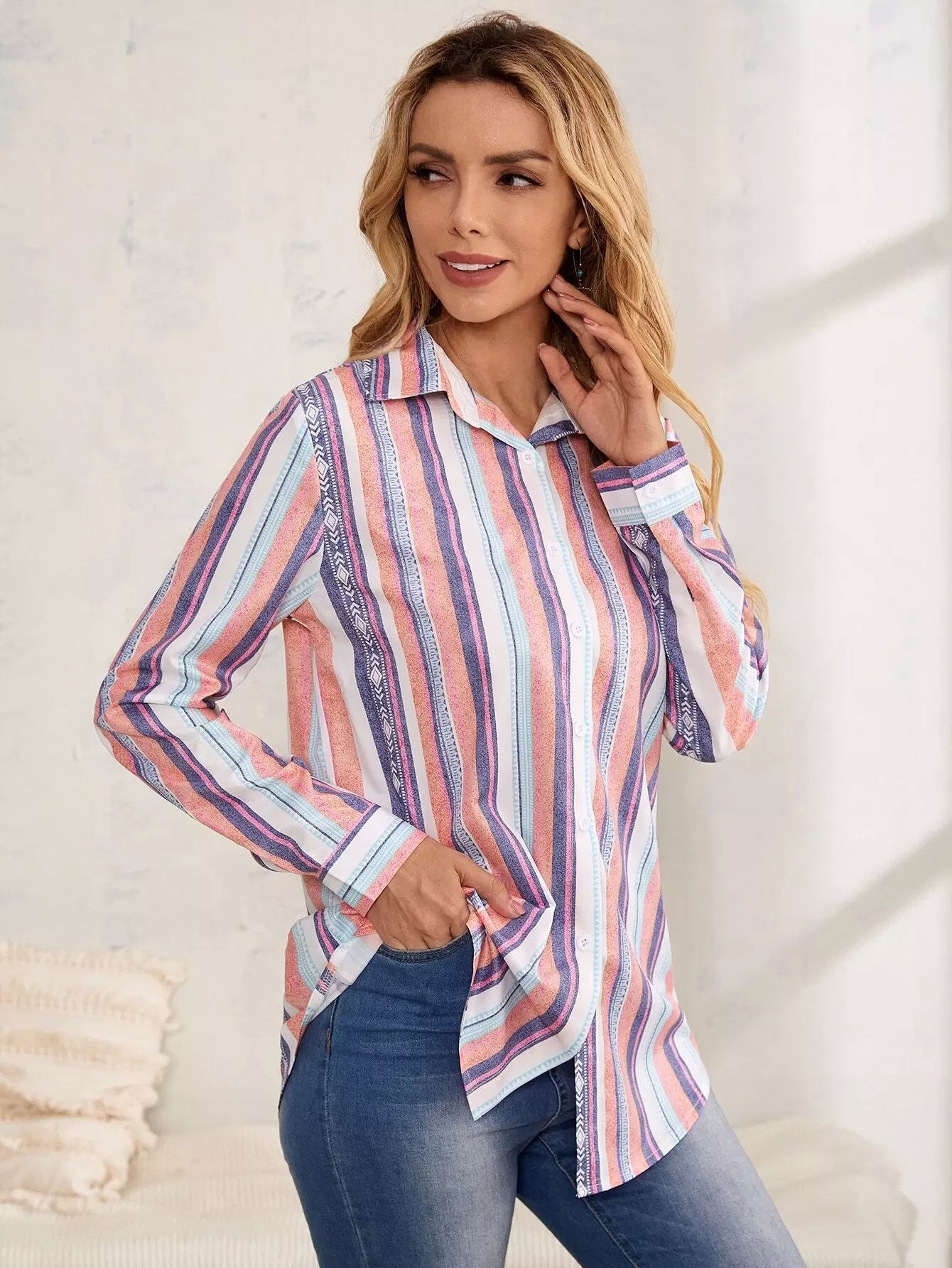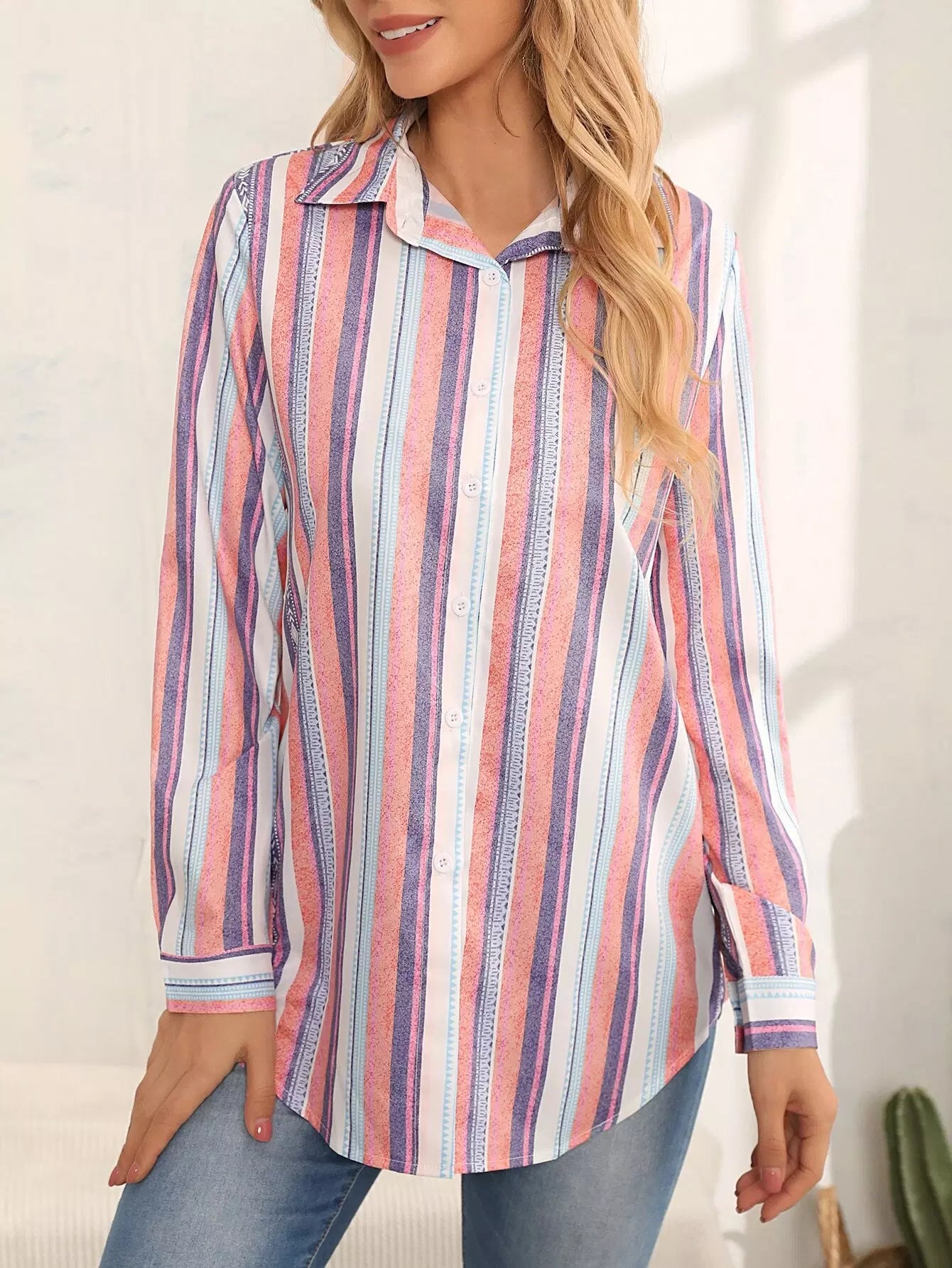 Striped Print Button Front Shirt