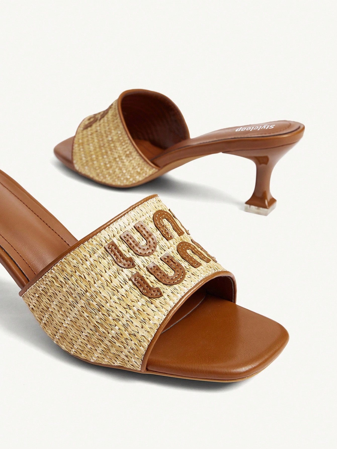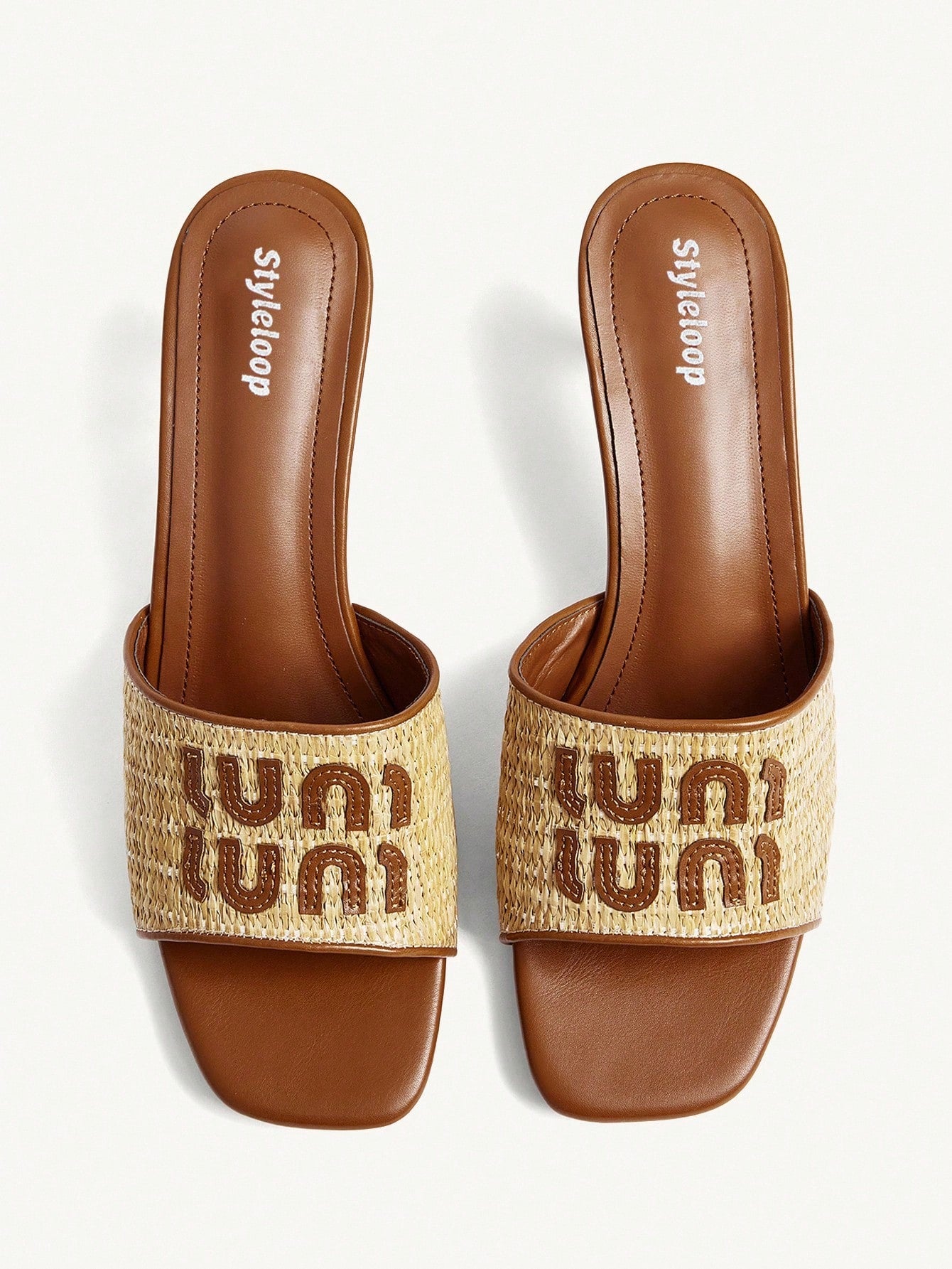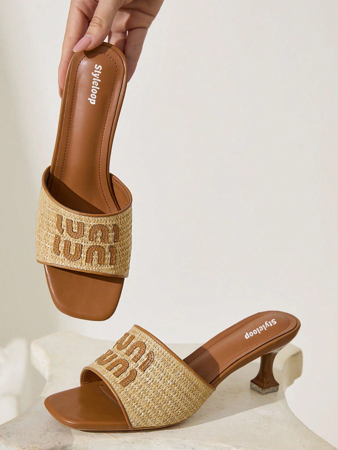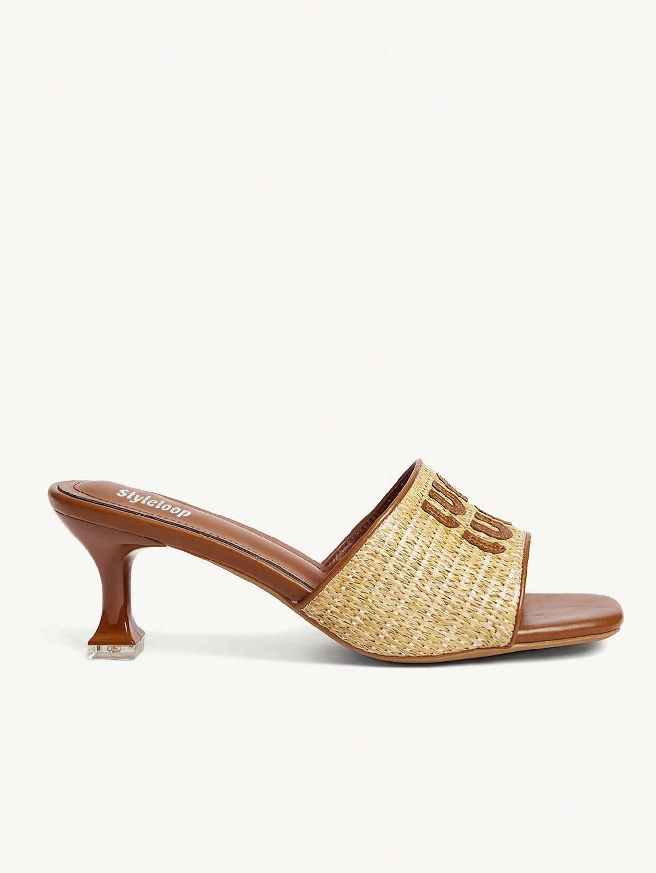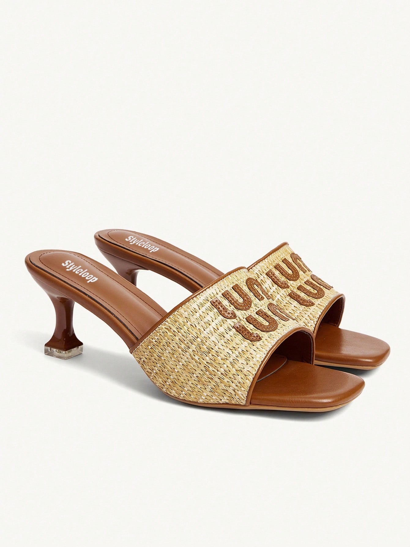 Styleloop Women's Square Toe Woven Stiletto Heeled Mid-Heel High Heel Gold Sandals