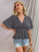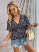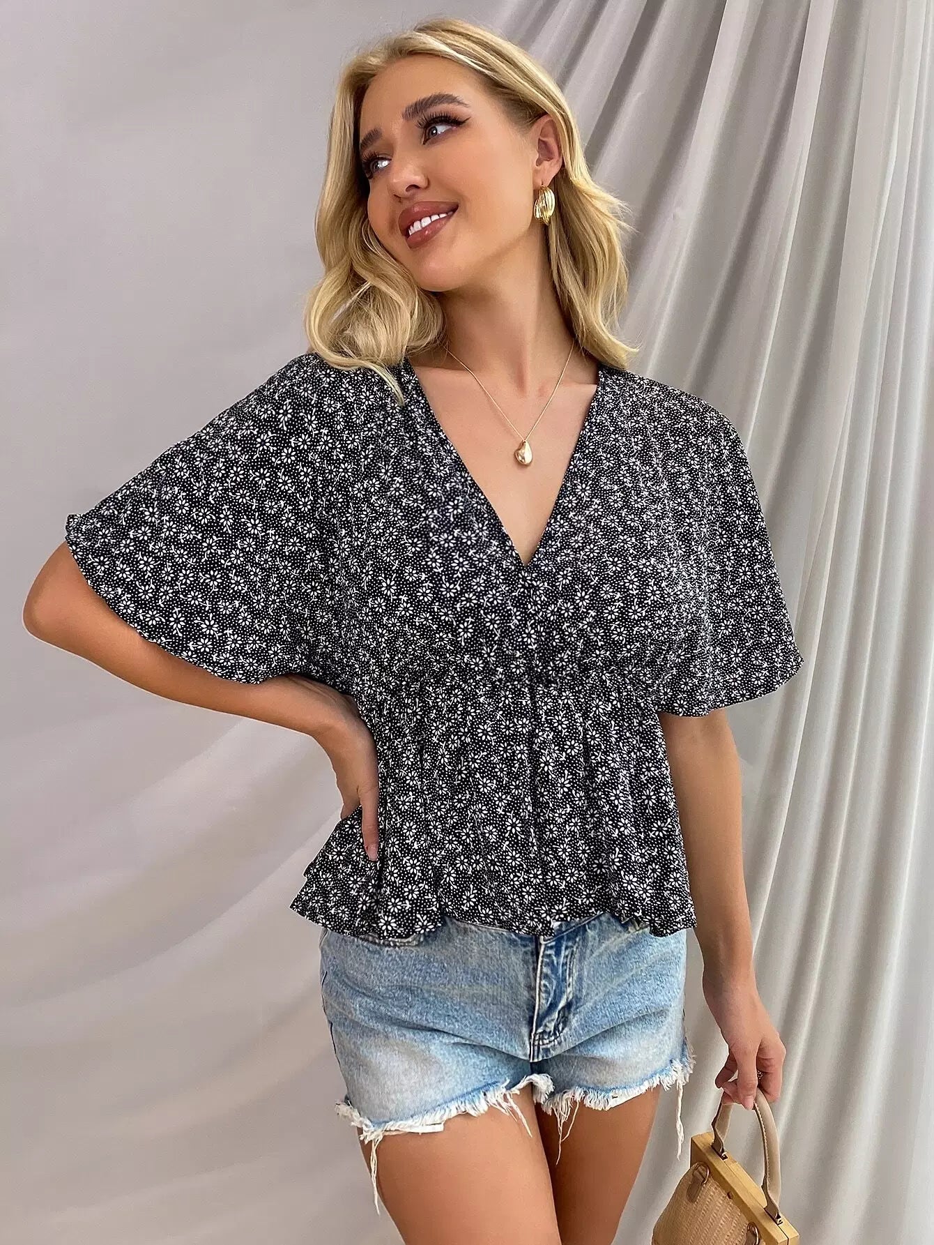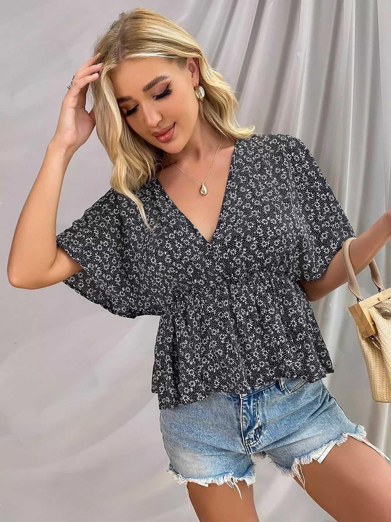 Surplice Neck Dolman Sleeve Floral Peplum Top