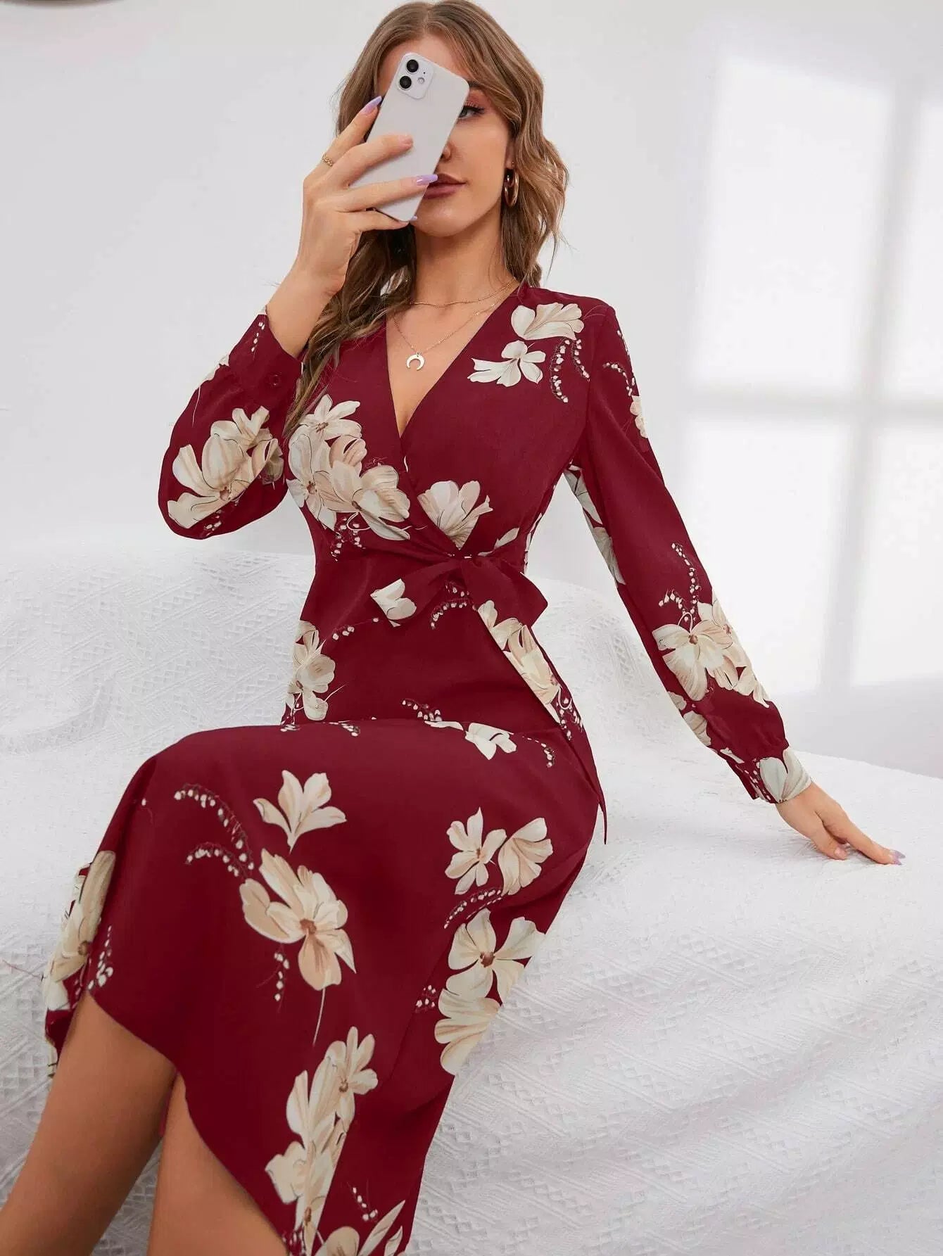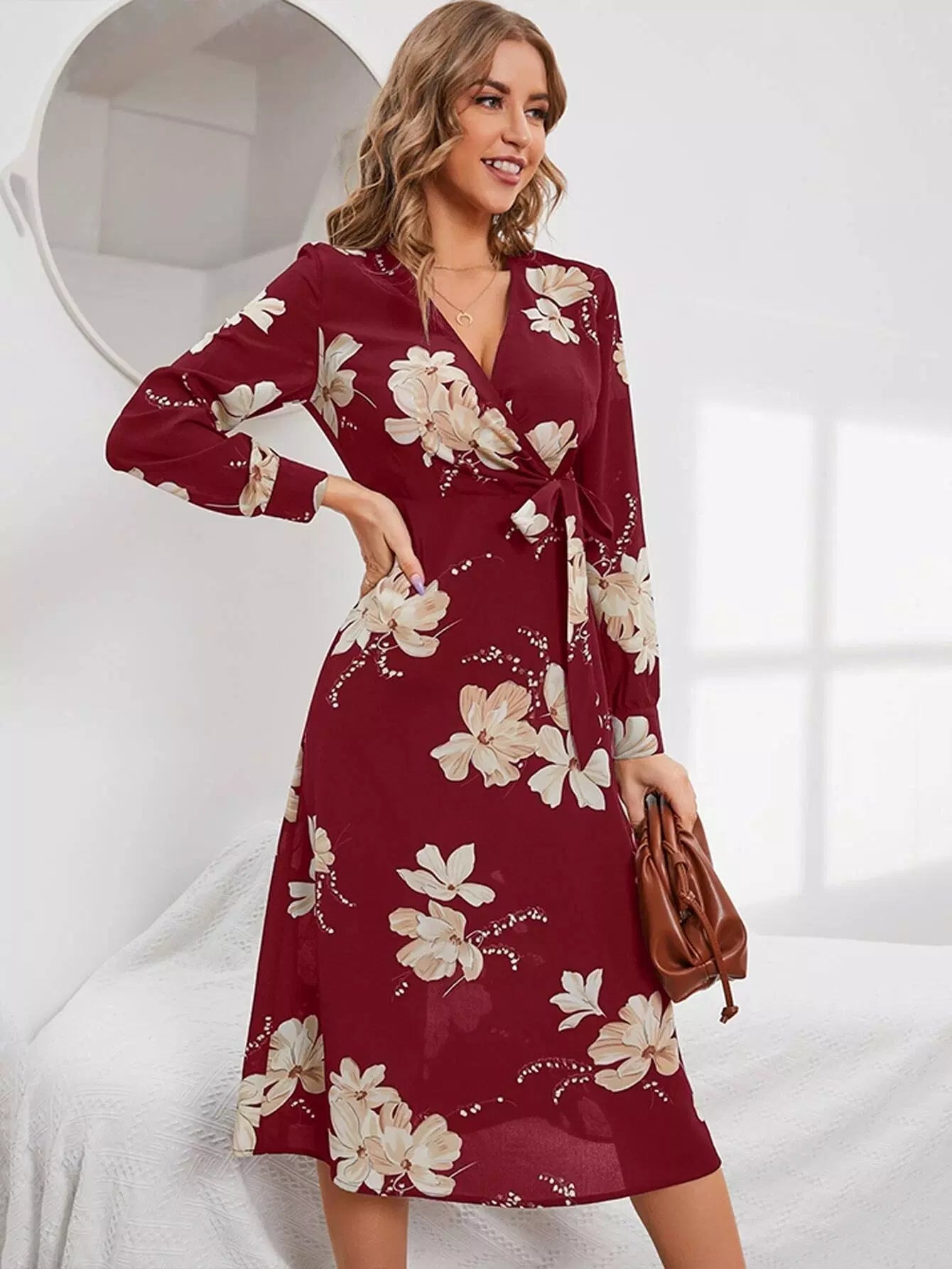 Surplice Neck Floral Print Tie Side Dress