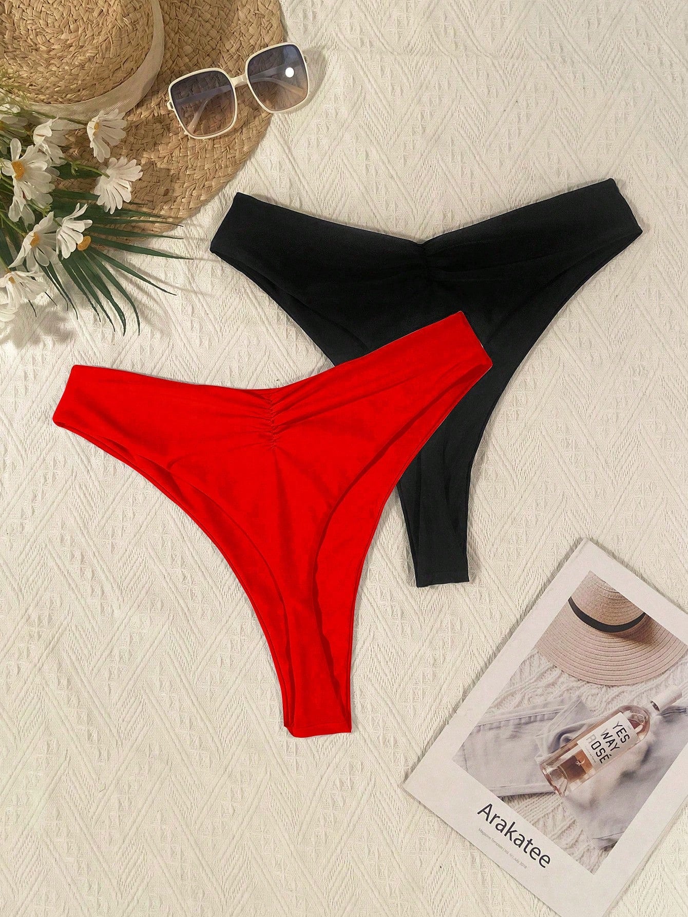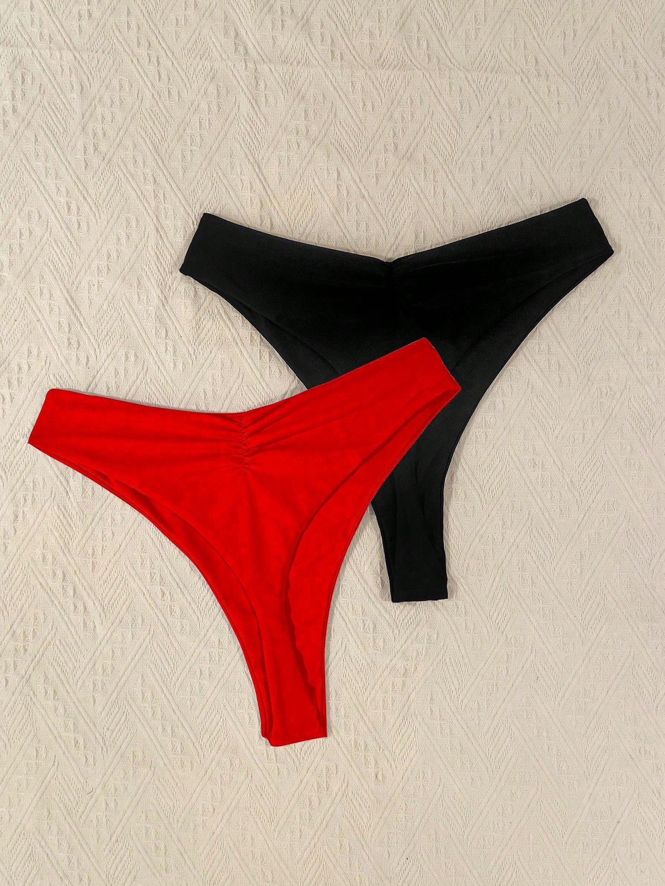 Swim Curve Plus Size Summer Beach Solid Color Ruched Bikini Bottom