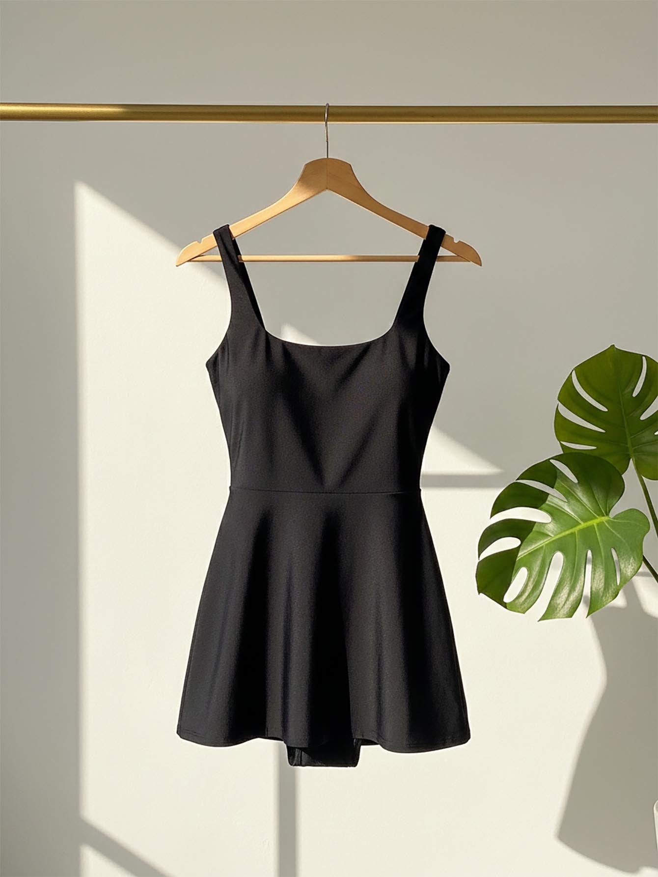 Swim Lushoire Women's Solid Color Round Neck Beach Holiday Swimwear Dress