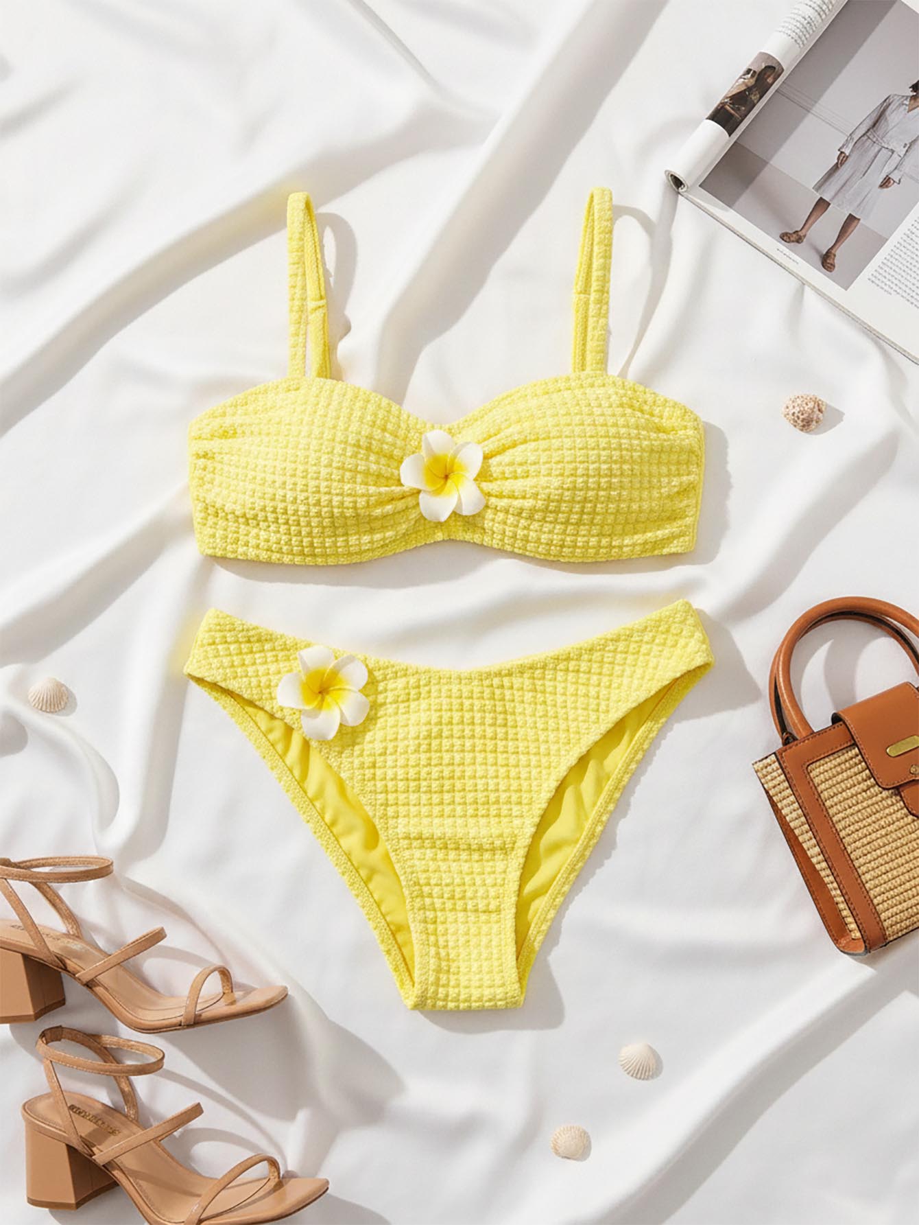 Swim Mod Plus Size Women's 2 Pieces Floral Yellow Bikini Set