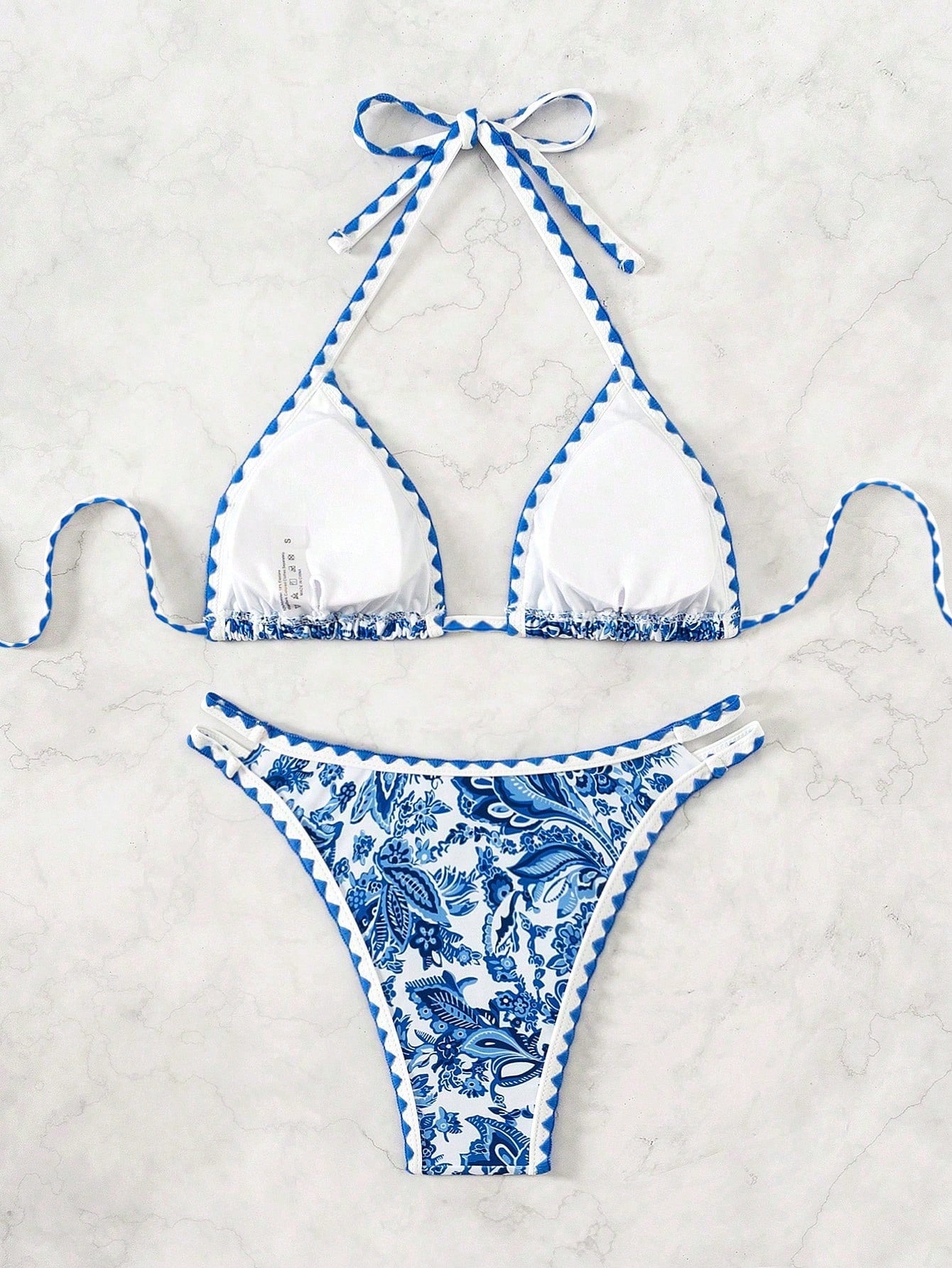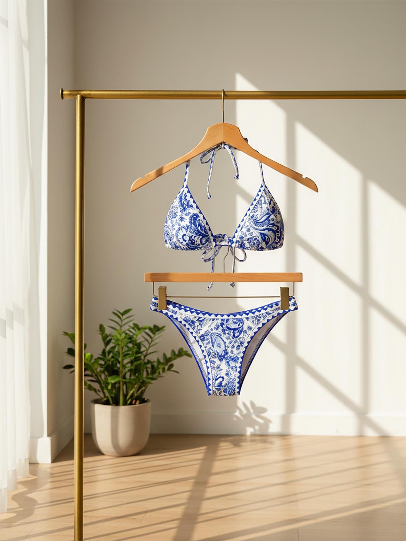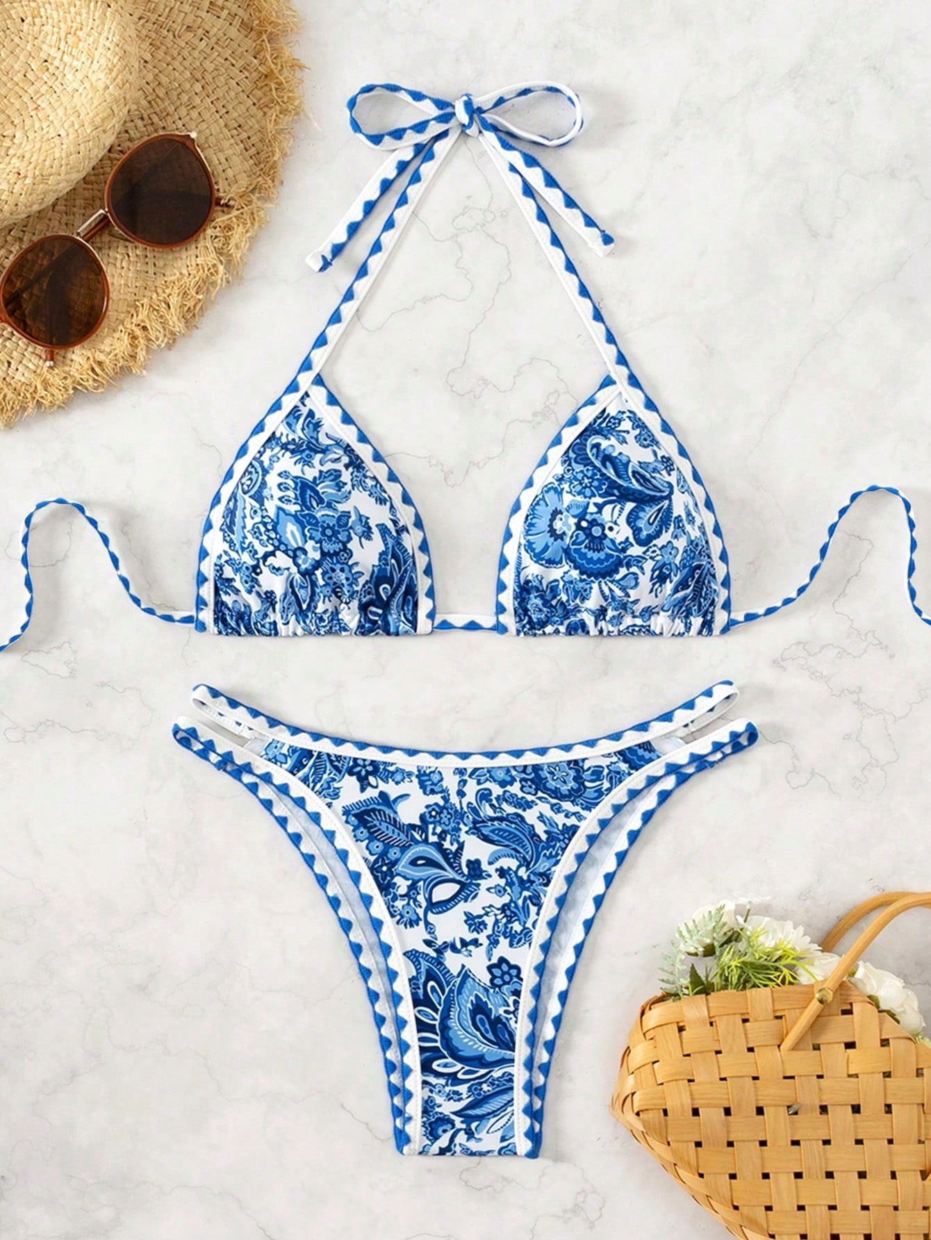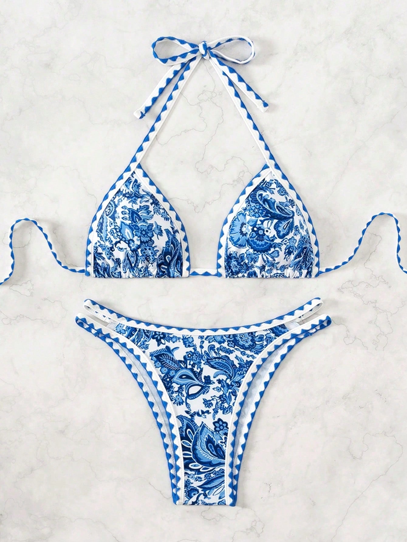Swim Vcay Women's Summer Beach Plant Printed Halter Neck Sexy Bikini Set With Separated Bikini Set
