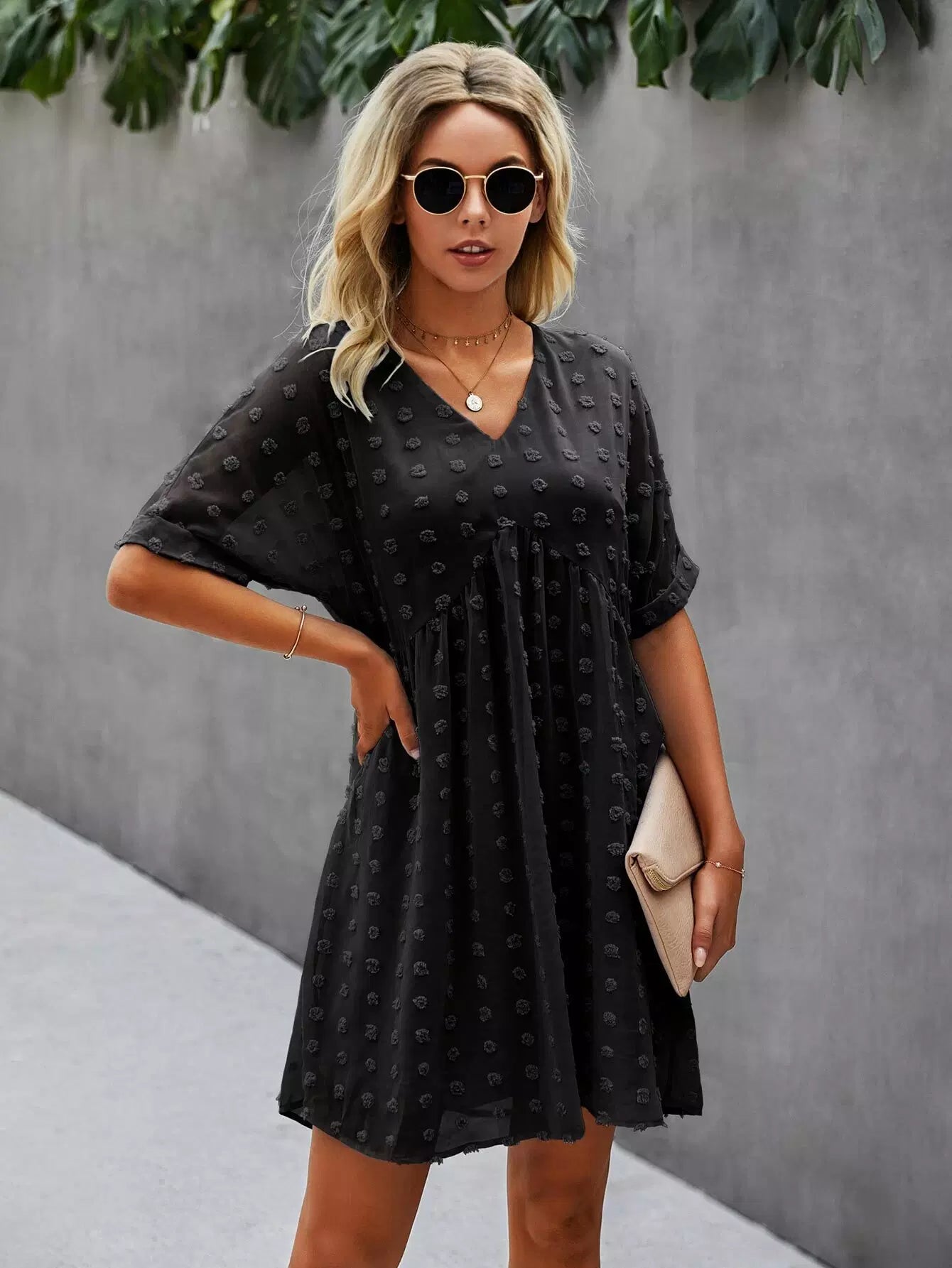 Women - Swiss Dot Batwing Sleeve Smock Dress