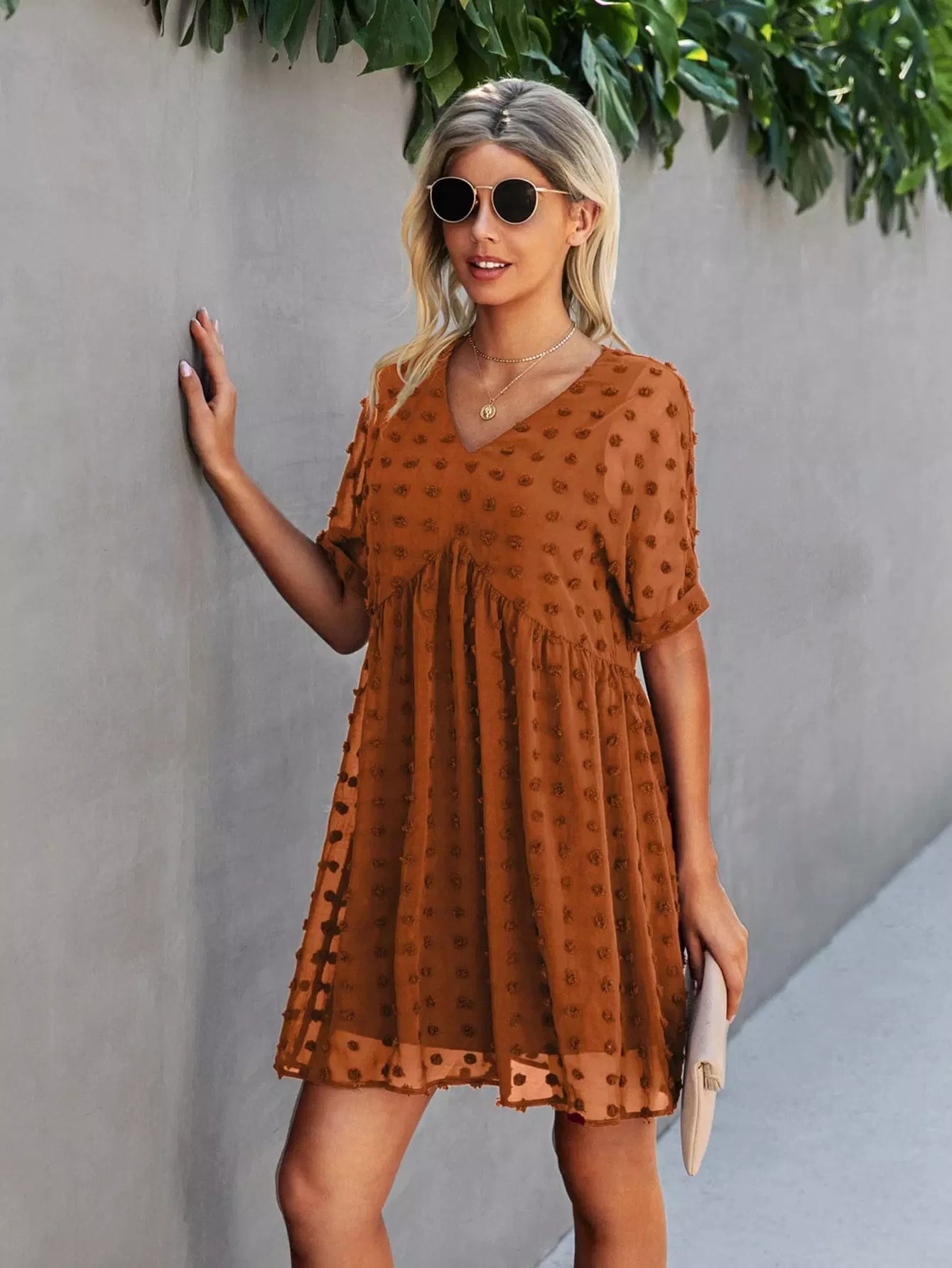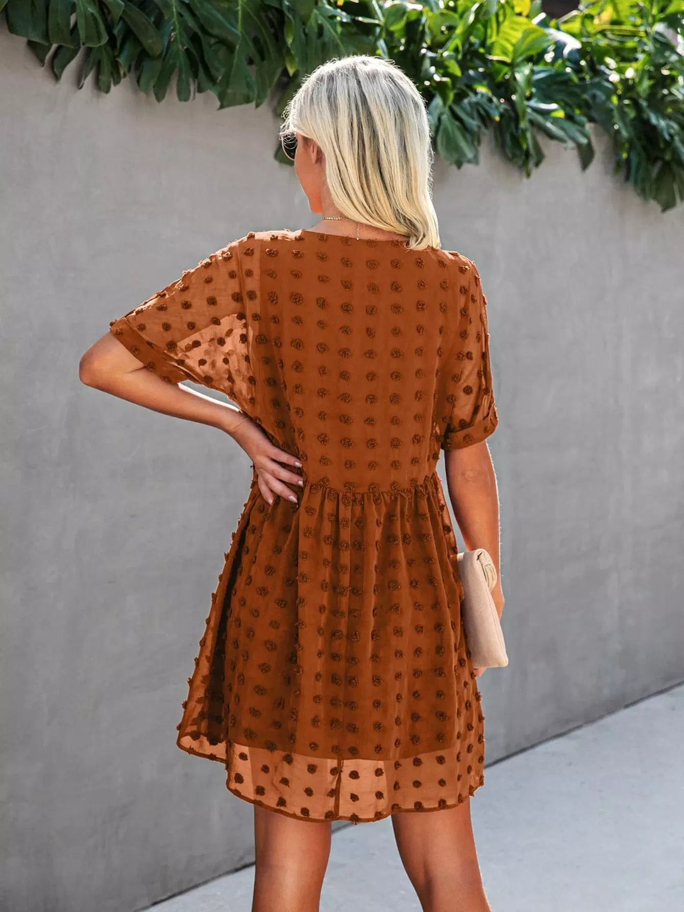 Swiss Dot Batwing Sleeve Smock Dress