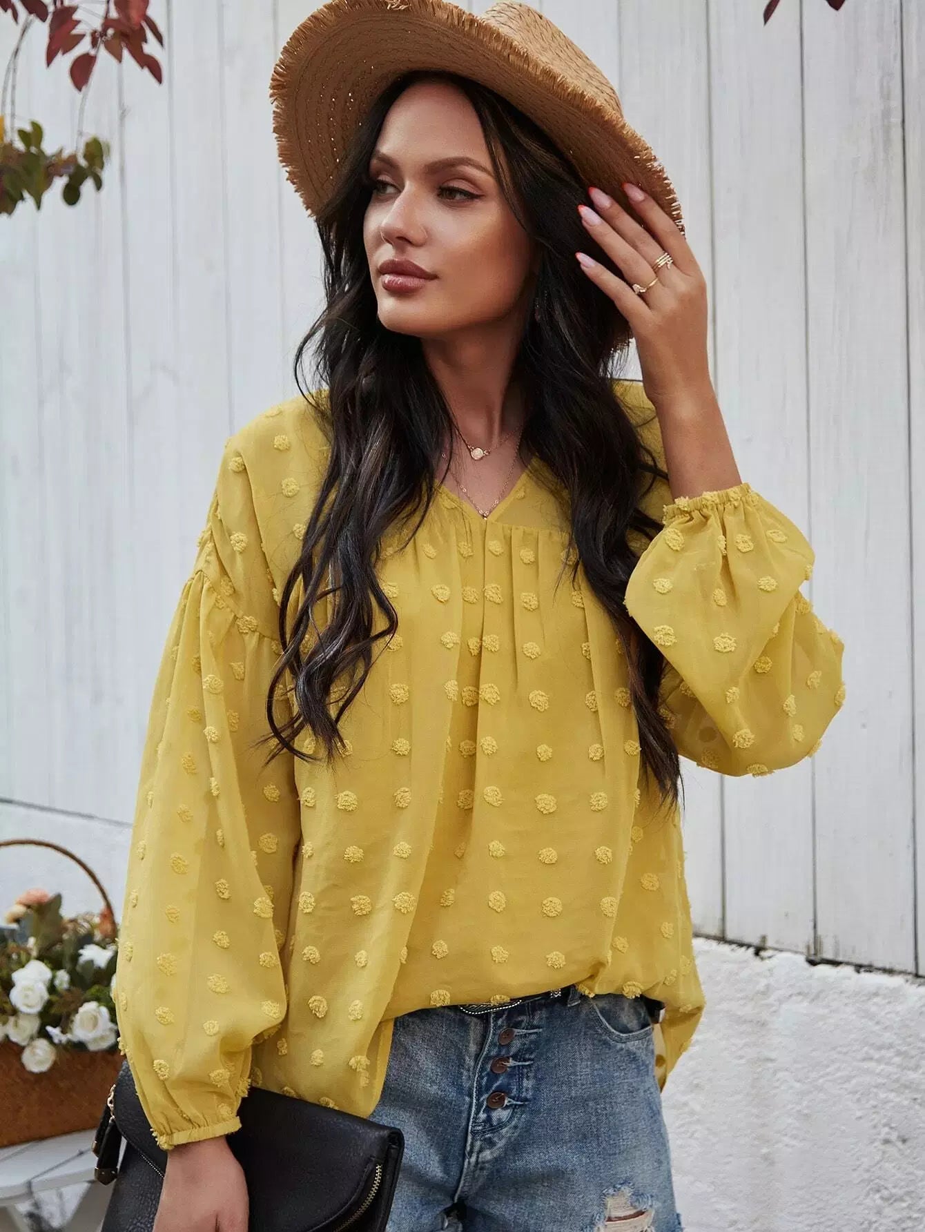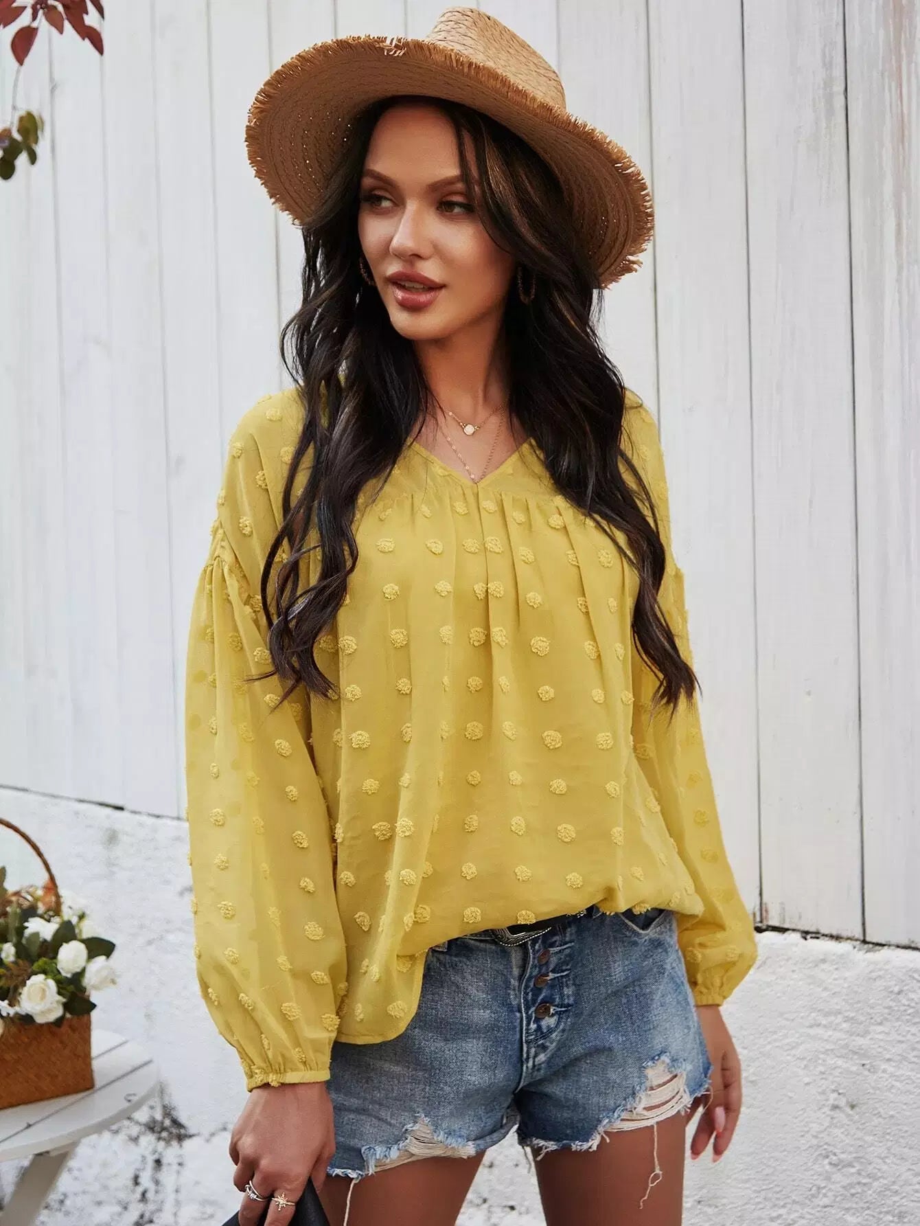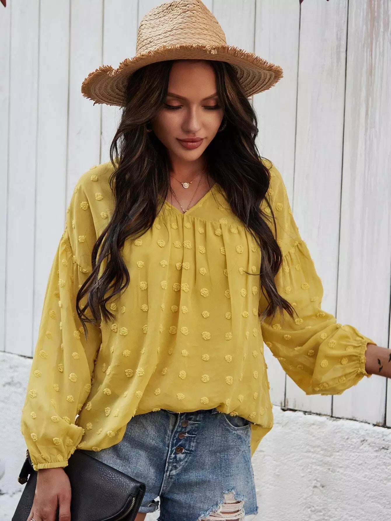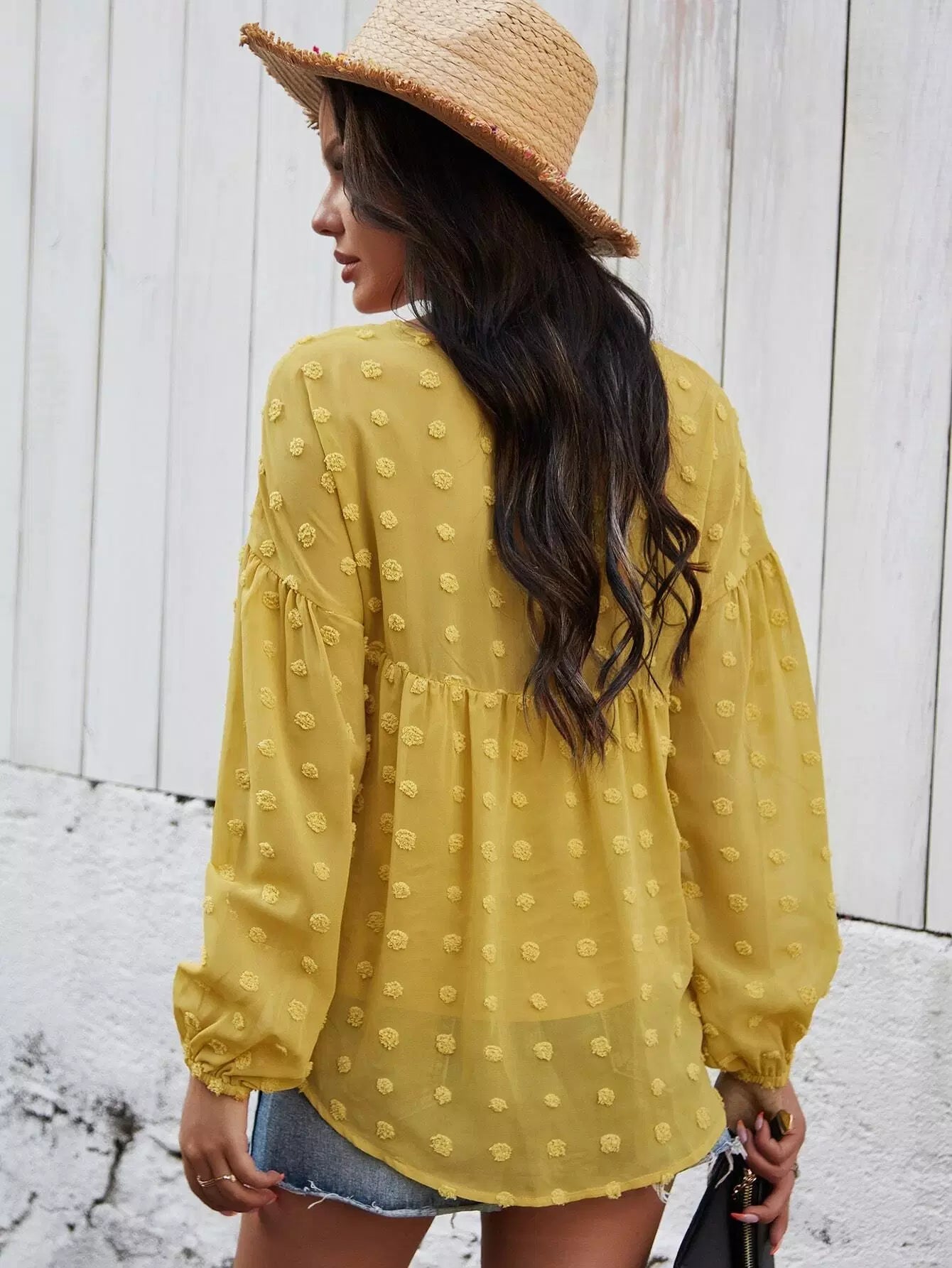 Swiss Dot Bishop Sleeve Blouse