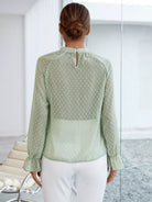 Women - Swiss Dot Mock Neck Flounce Sleeve Blouse