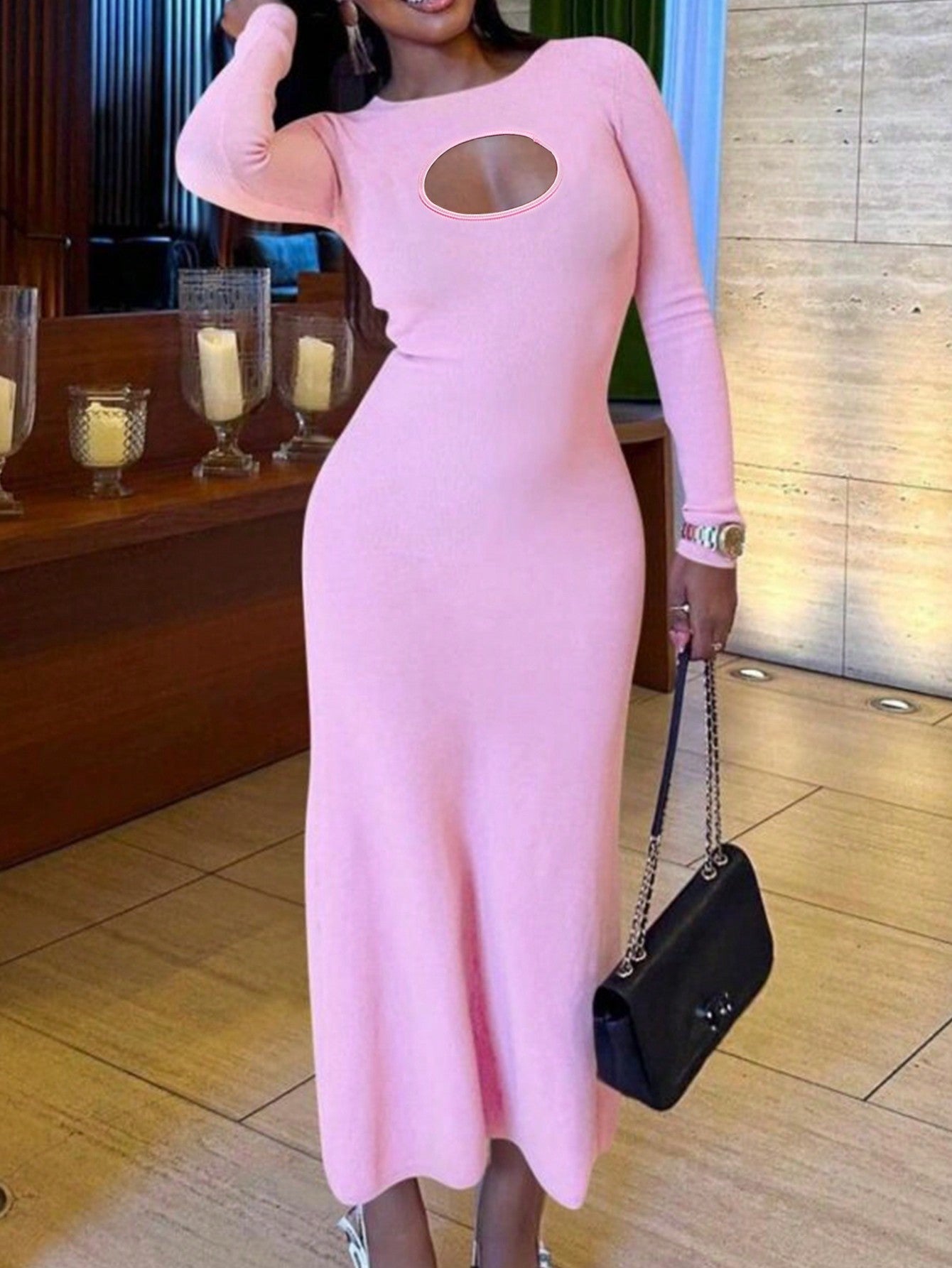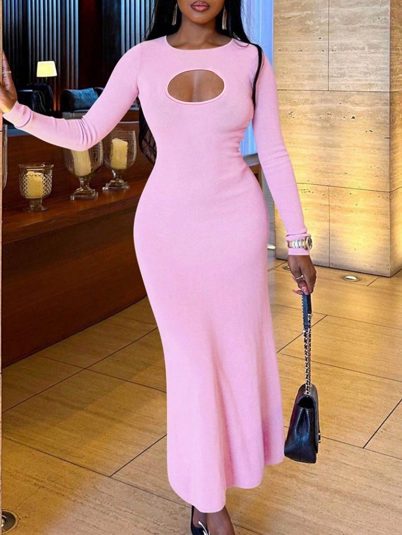 SXY Plus Size Women Sexy Solid Color Hollow Out Fitted Fishtail Hem Dress