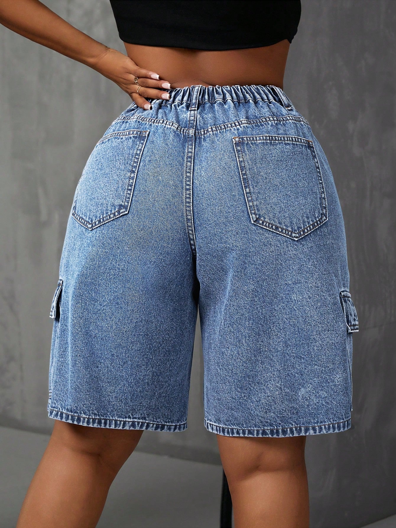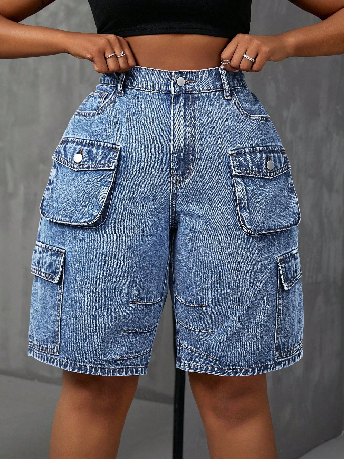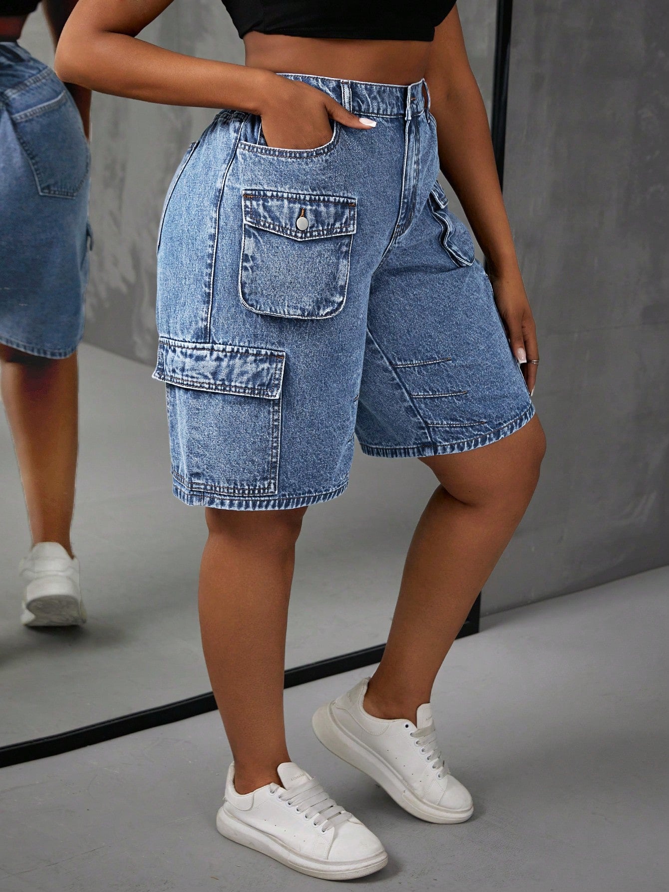 SXY Plus Size Women's Utility Pocket Loose Relaxed Denim Shorts