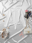 SXY Women Minimalist Solid Color Fitted Backless Long Sleeve Bodysuit
