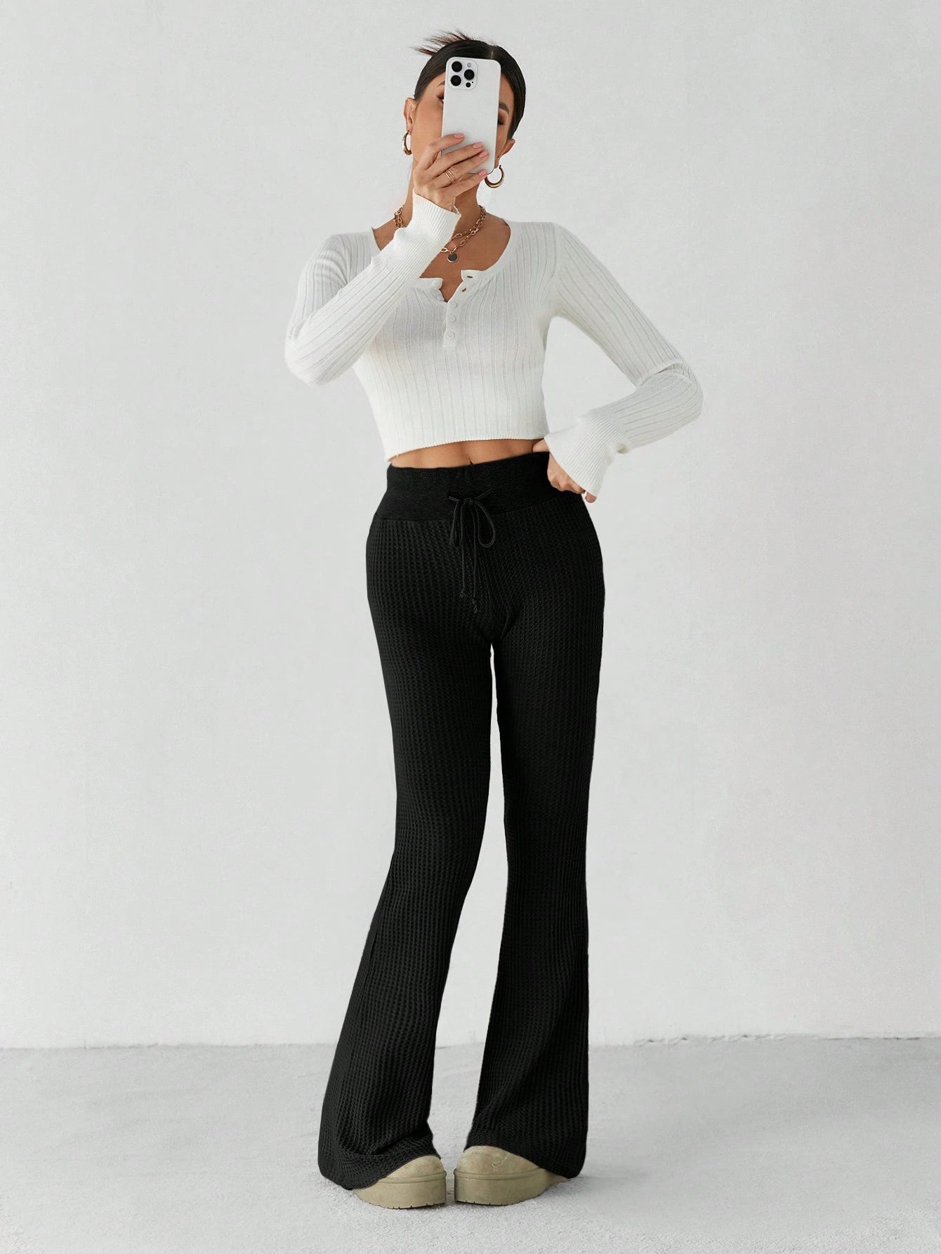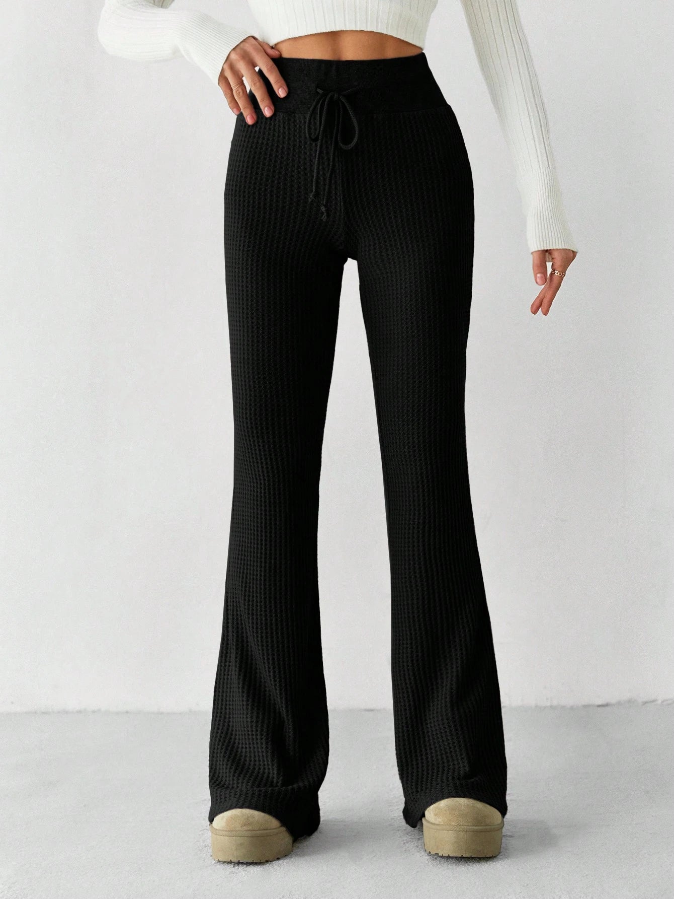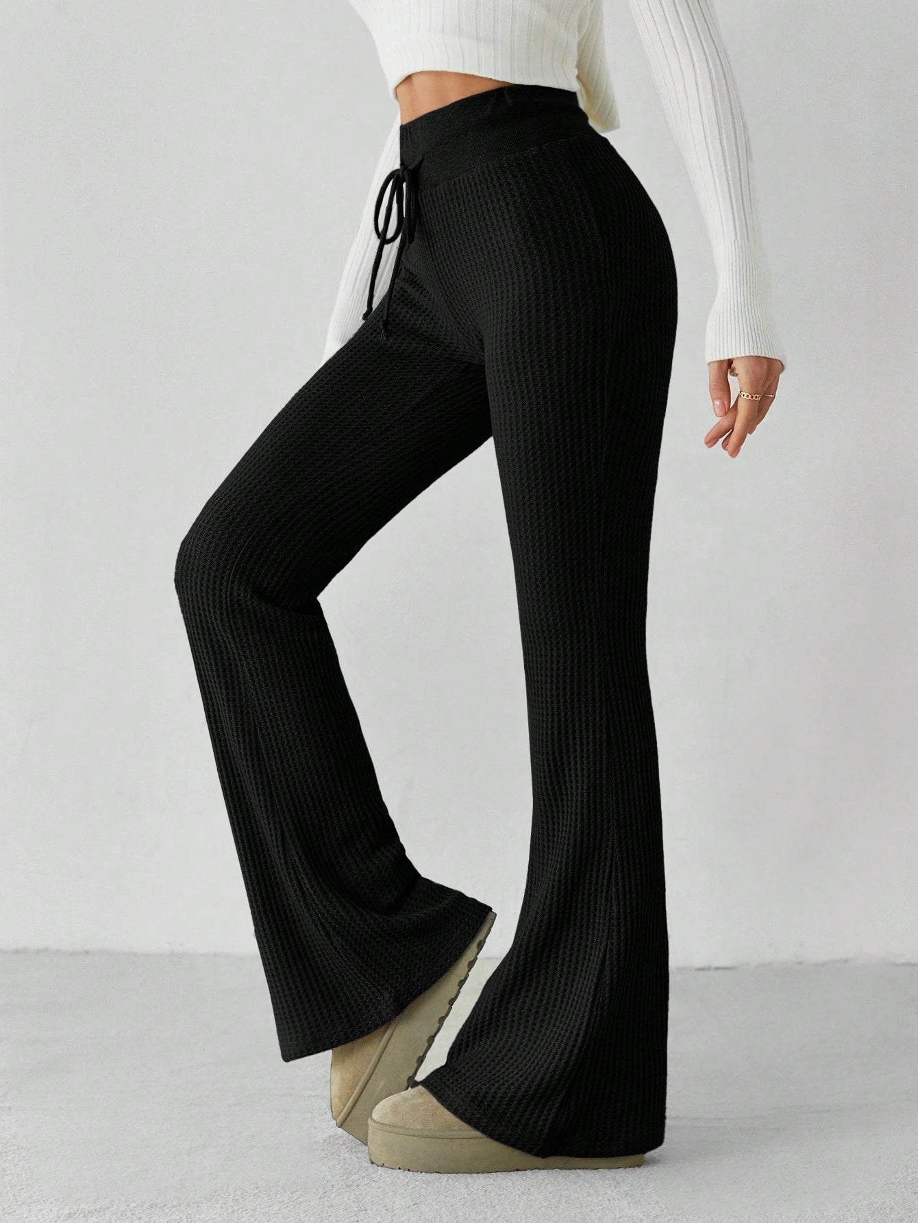 Tall Casual Low Rise Drawstring Knitted Waffle Waist Elastic Sweatpants Flared Pants