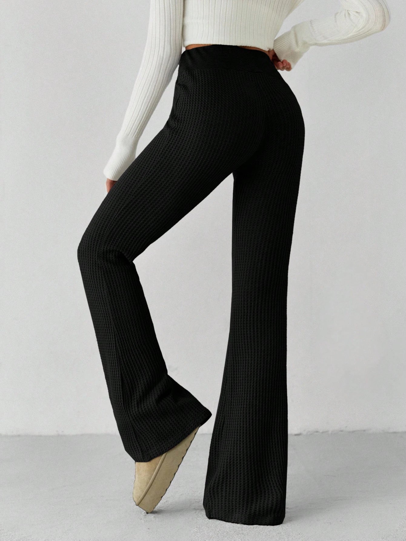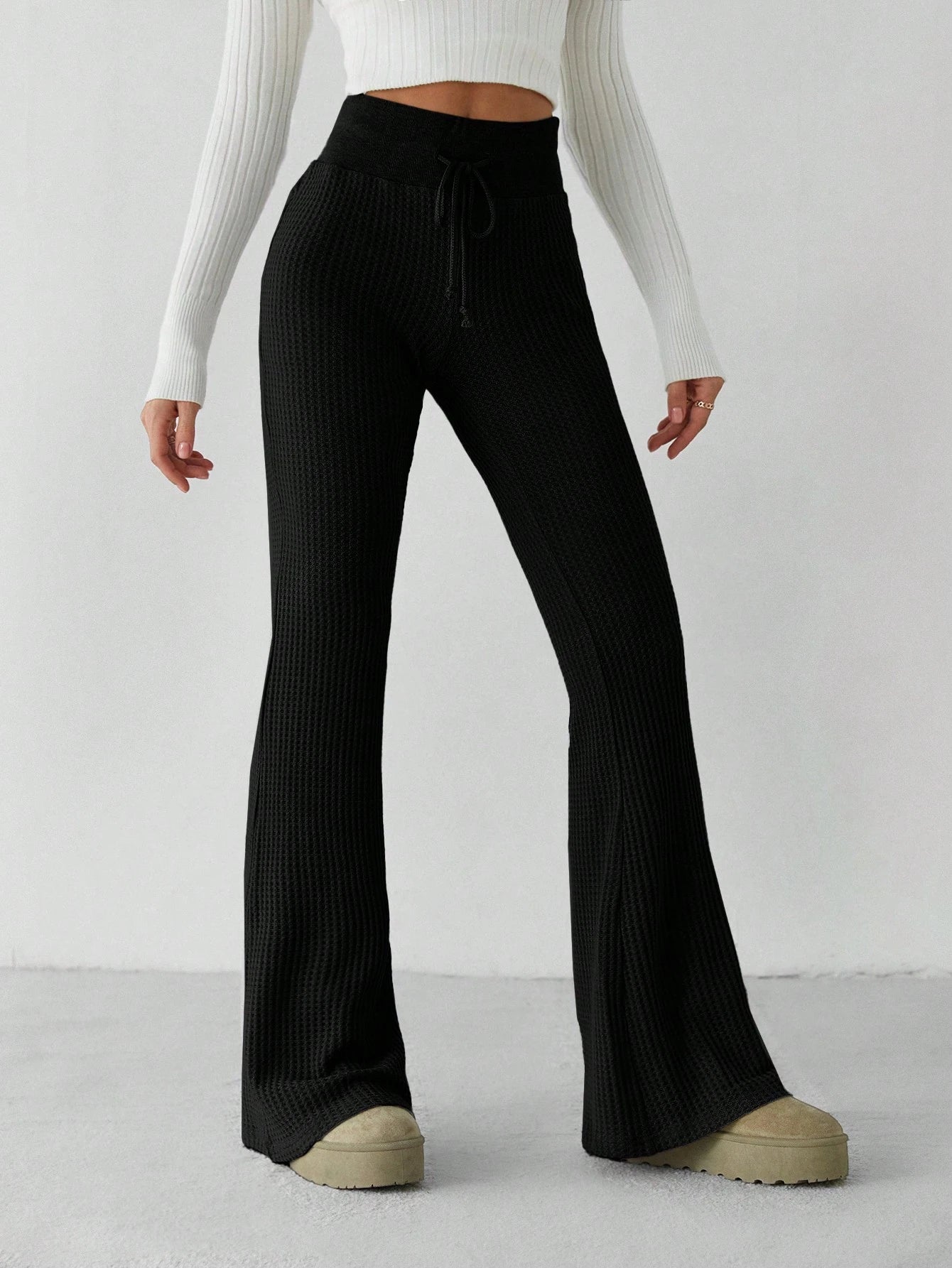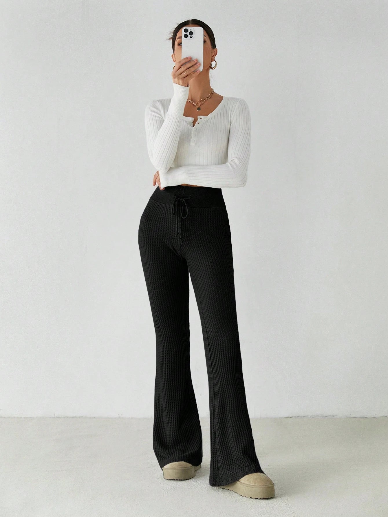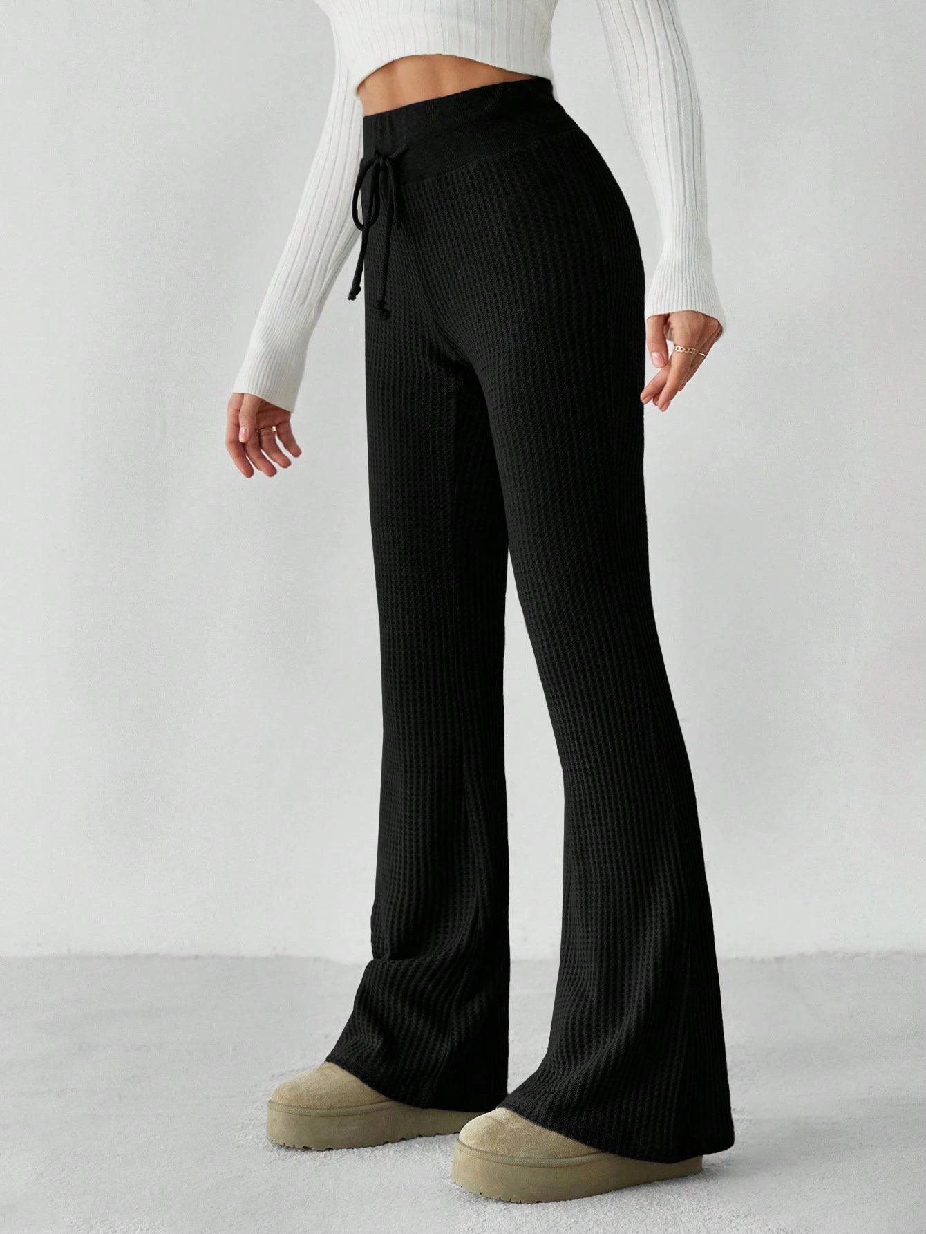 Tall Casual Low Rise Drawstring Knitted Waffle Waist Elastic Sweatpants Flared Pants