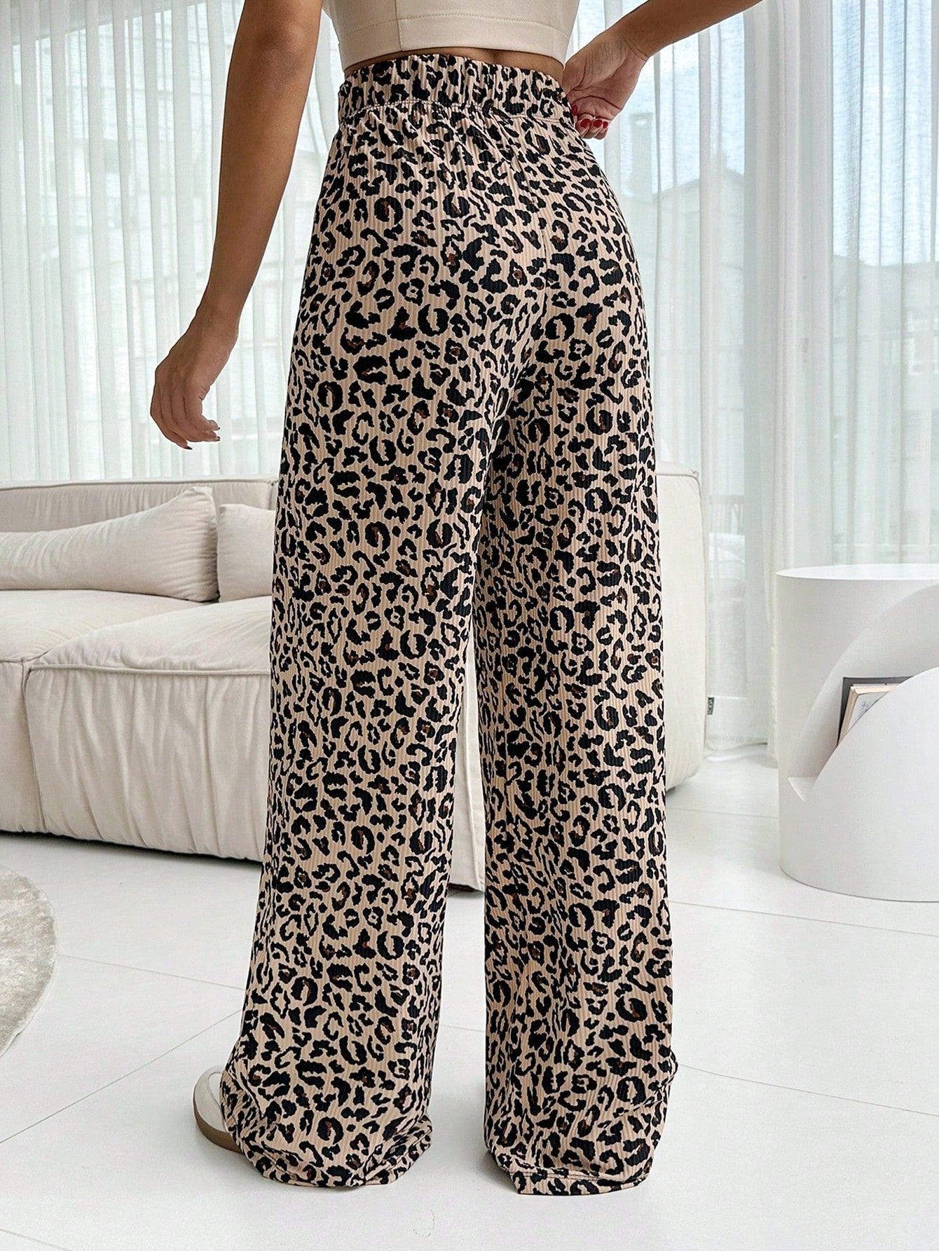 Tall Fashionable Leopard Print Wide Leg Pants