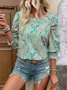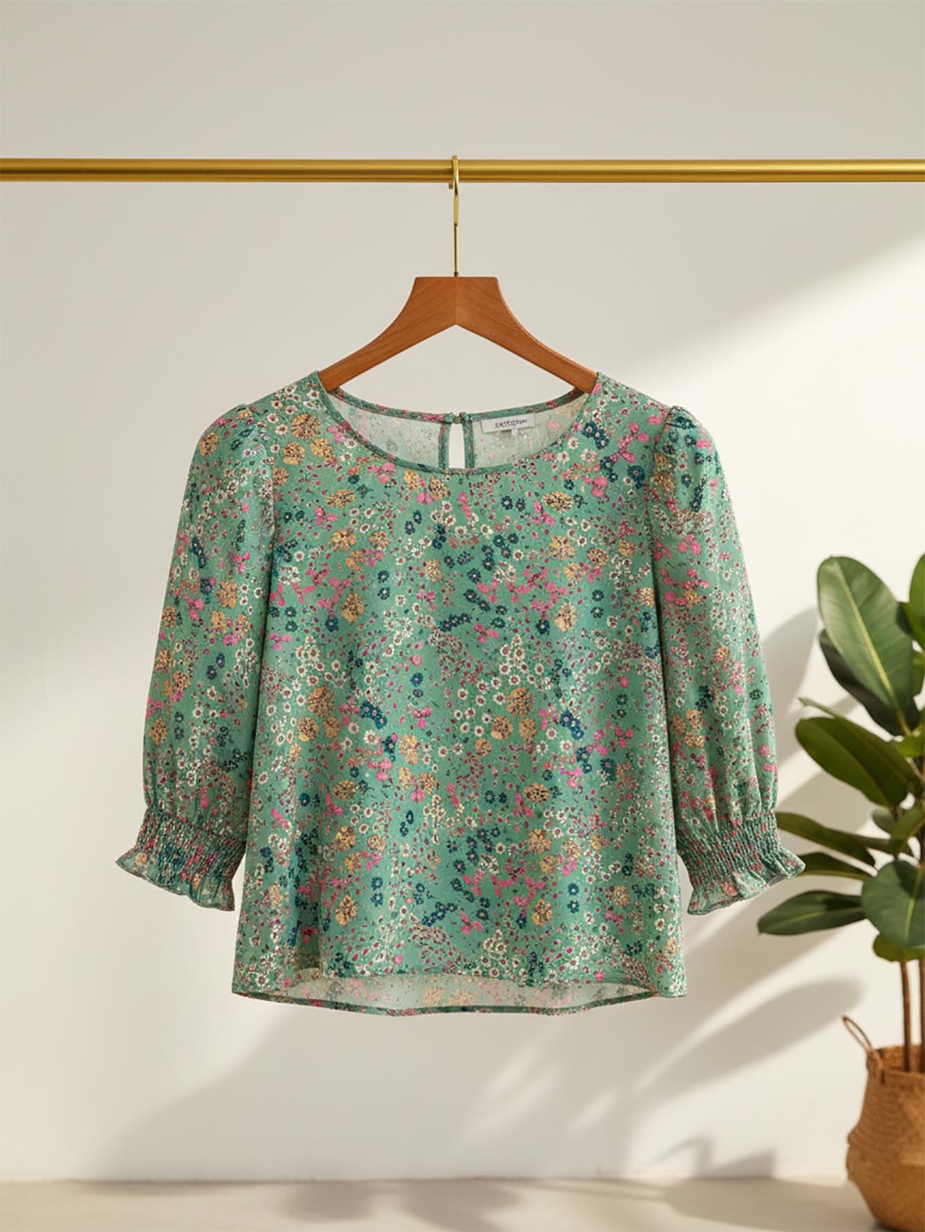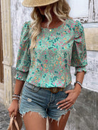 Tall Ladies New Mid-Sleeve Ditsy Floral Printed Shirt (Asymmetrical Floral Pattern)