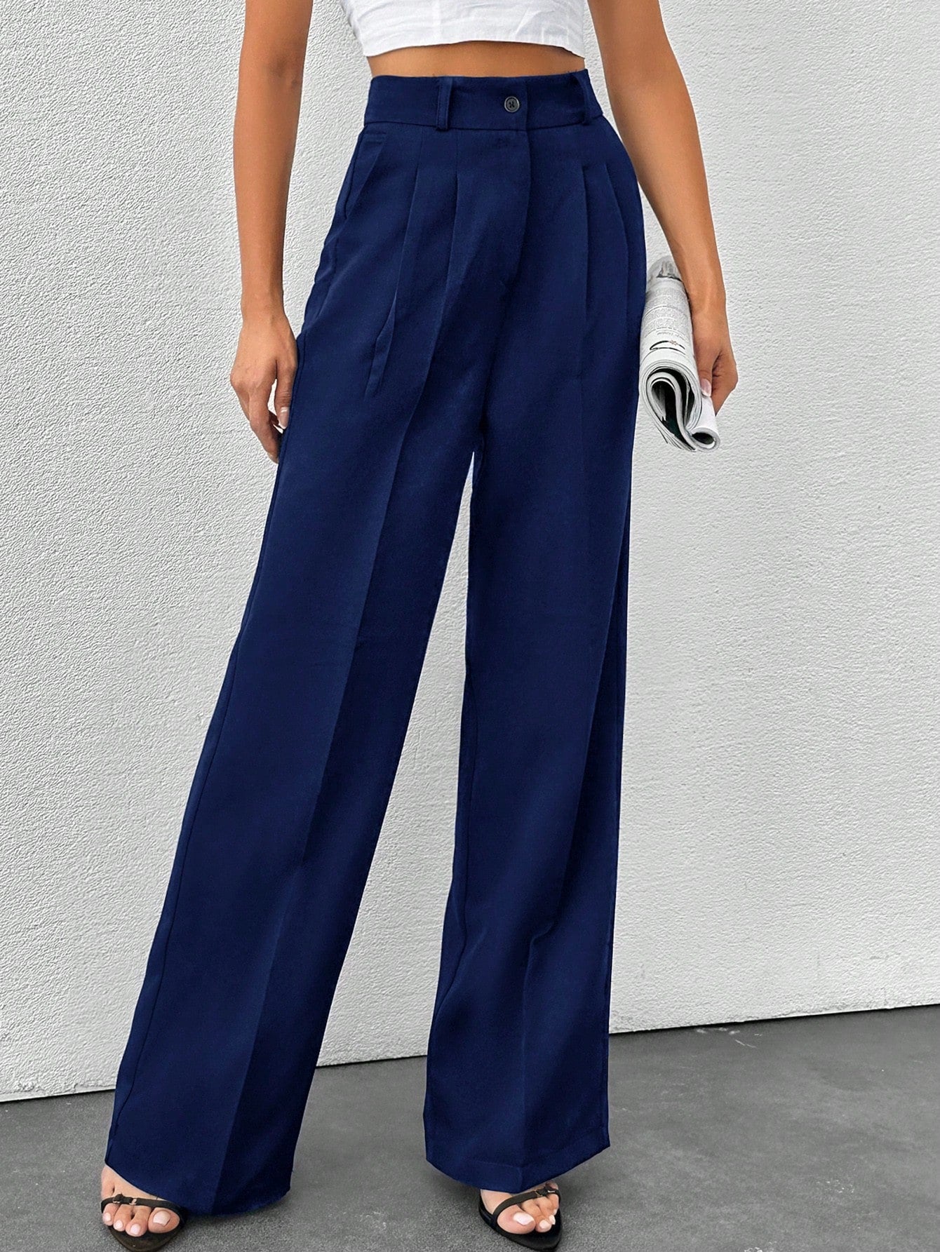 Tall Tall Women's Solid Color High Waisted Wide Leg Pants
