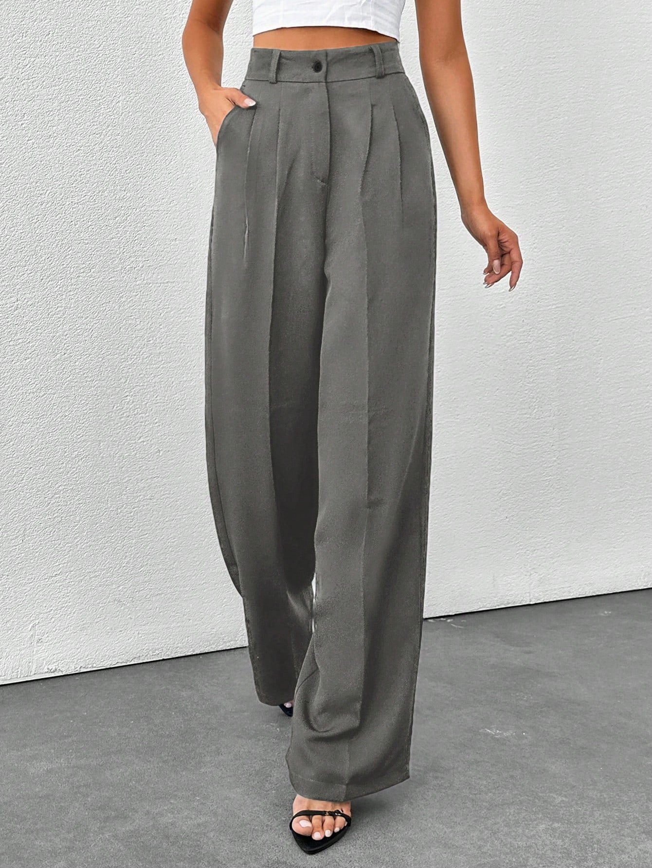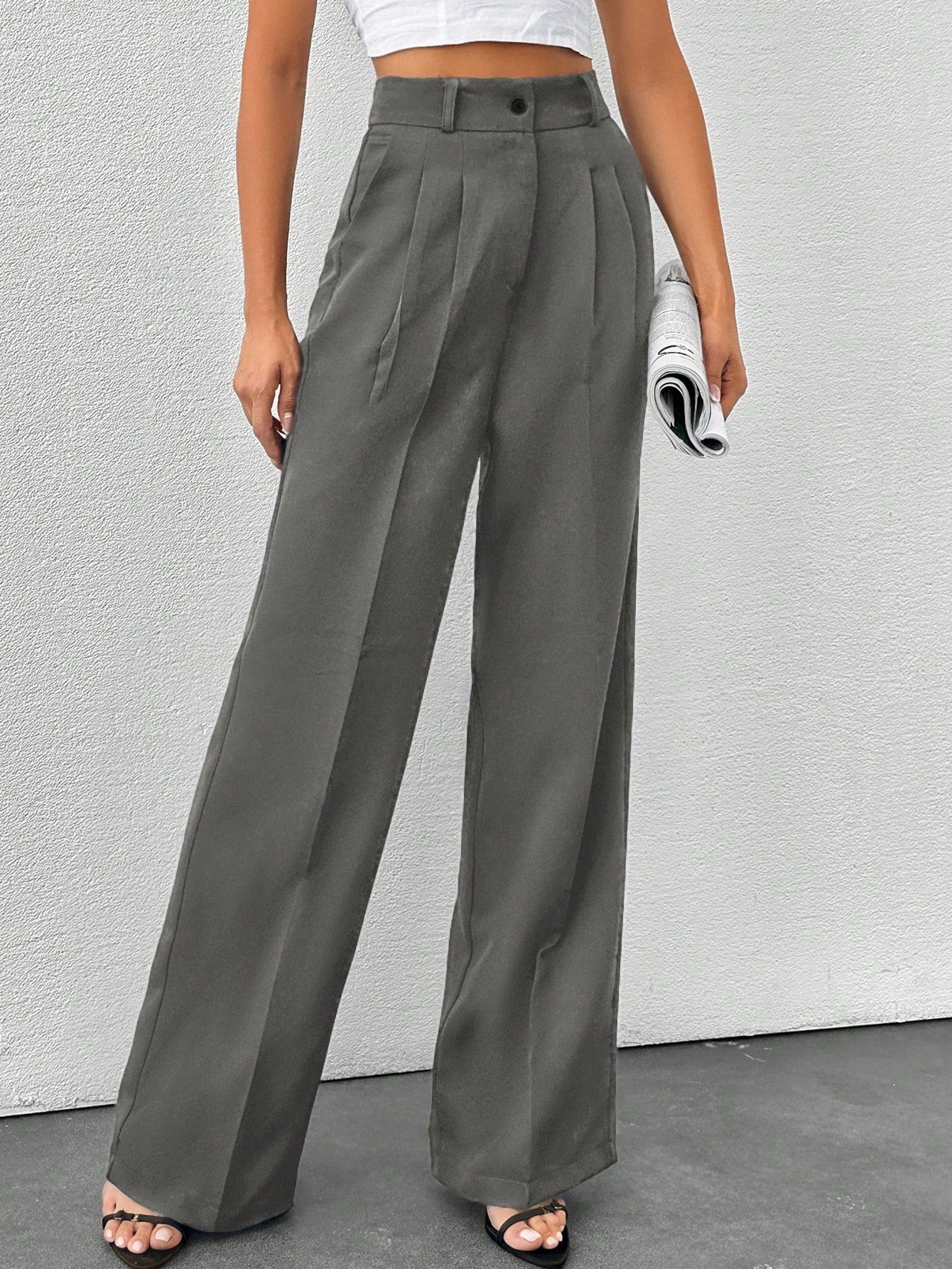 Tall Tall Women's Solid Color High Waisted Wide Leg Pants