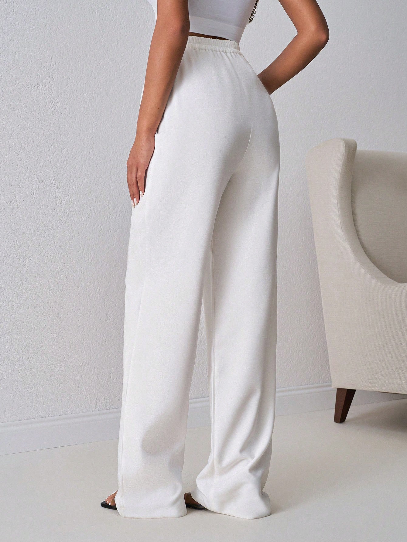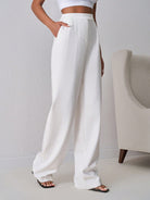 Tall Tall Women's Stylish Solid Color High Waist Straight Pant With Button And Zipper Details