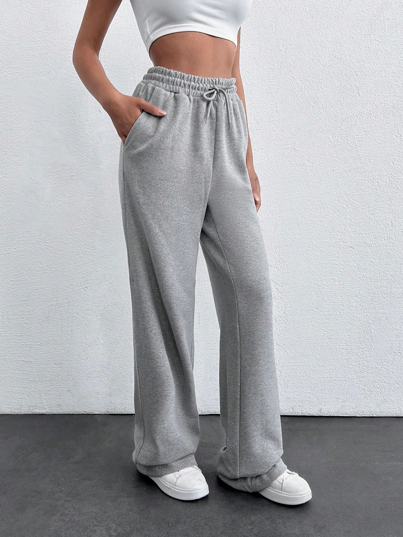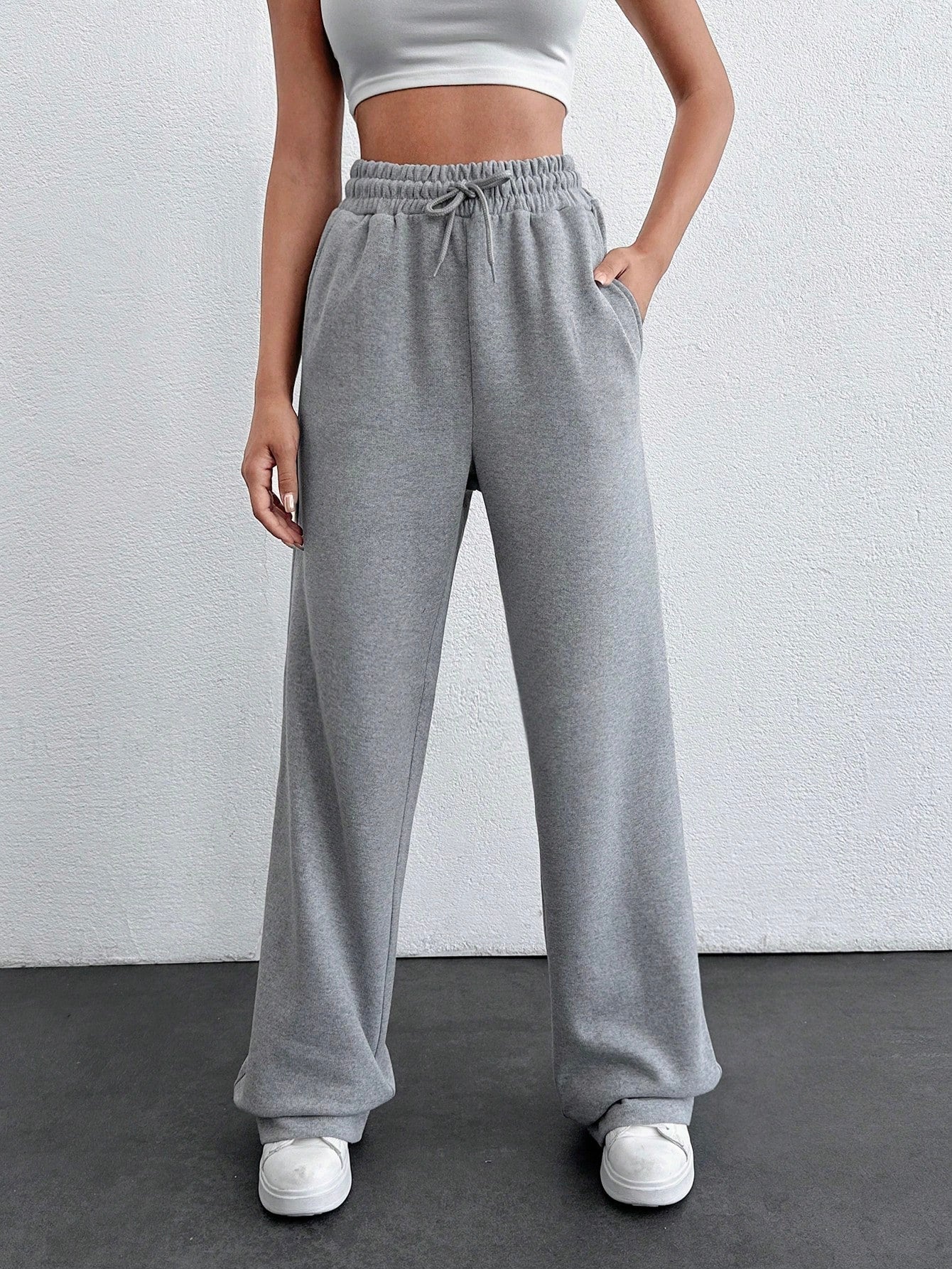 Tall Women Casual Sports Solid Color Drawstring Waist Slant Pockets Loose Sweatpants