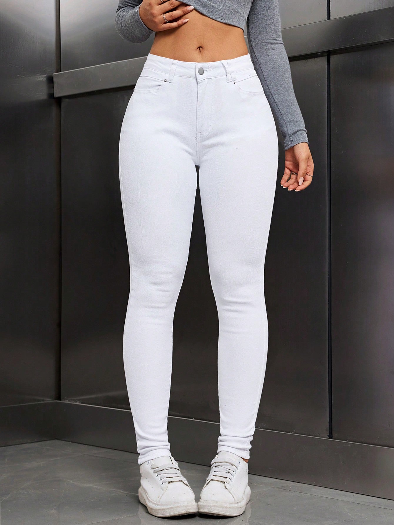 Tall Women Pockets Skinny Casual Jeans -Women's Front Button Pocket Simple Casual Jeans