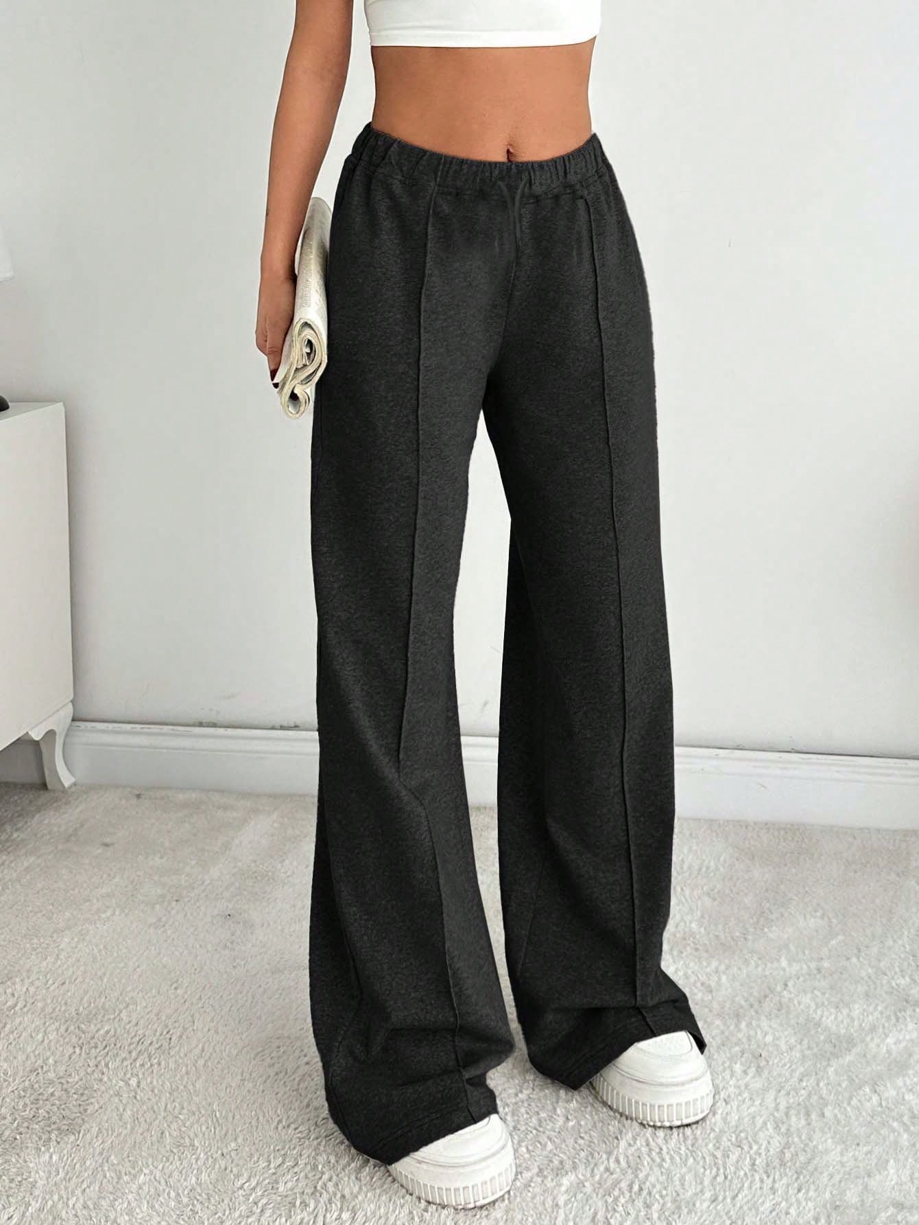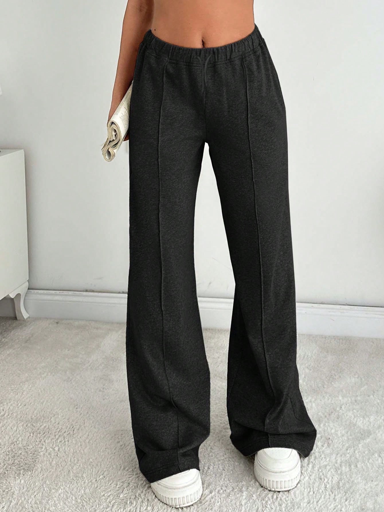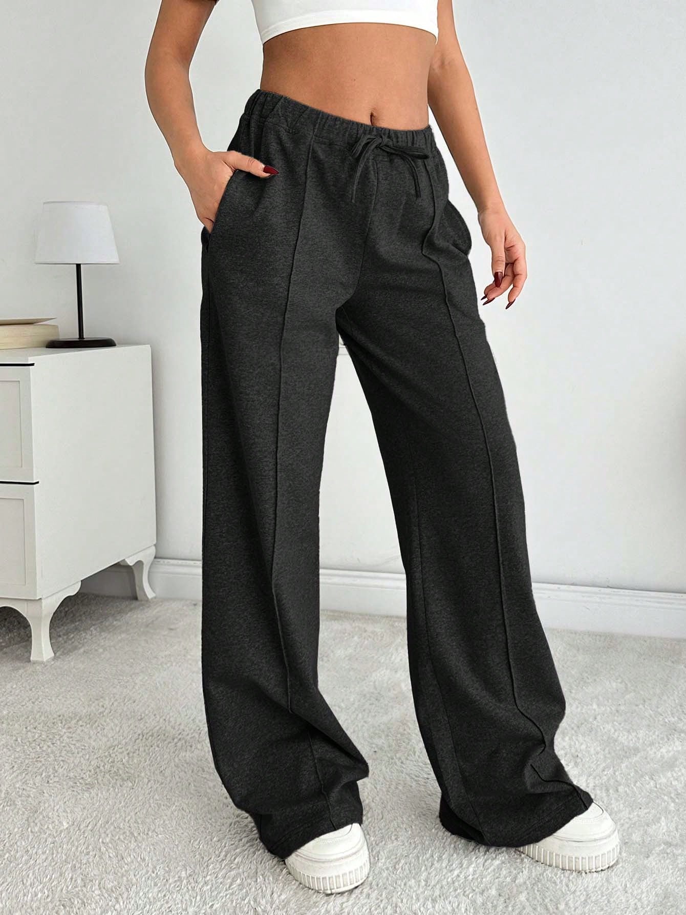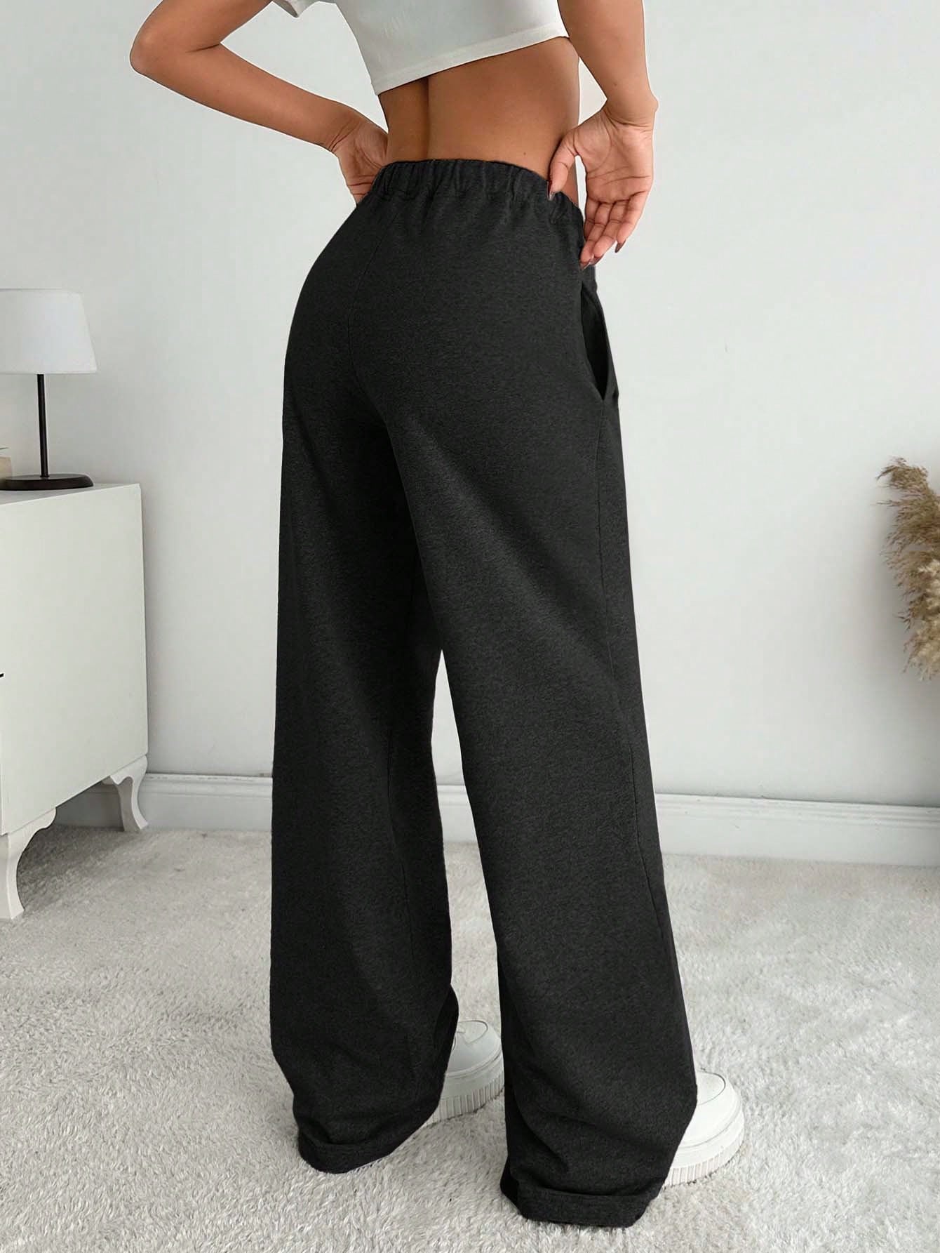 Tall Women Solid Color Mid Waist Straight Sweatpants