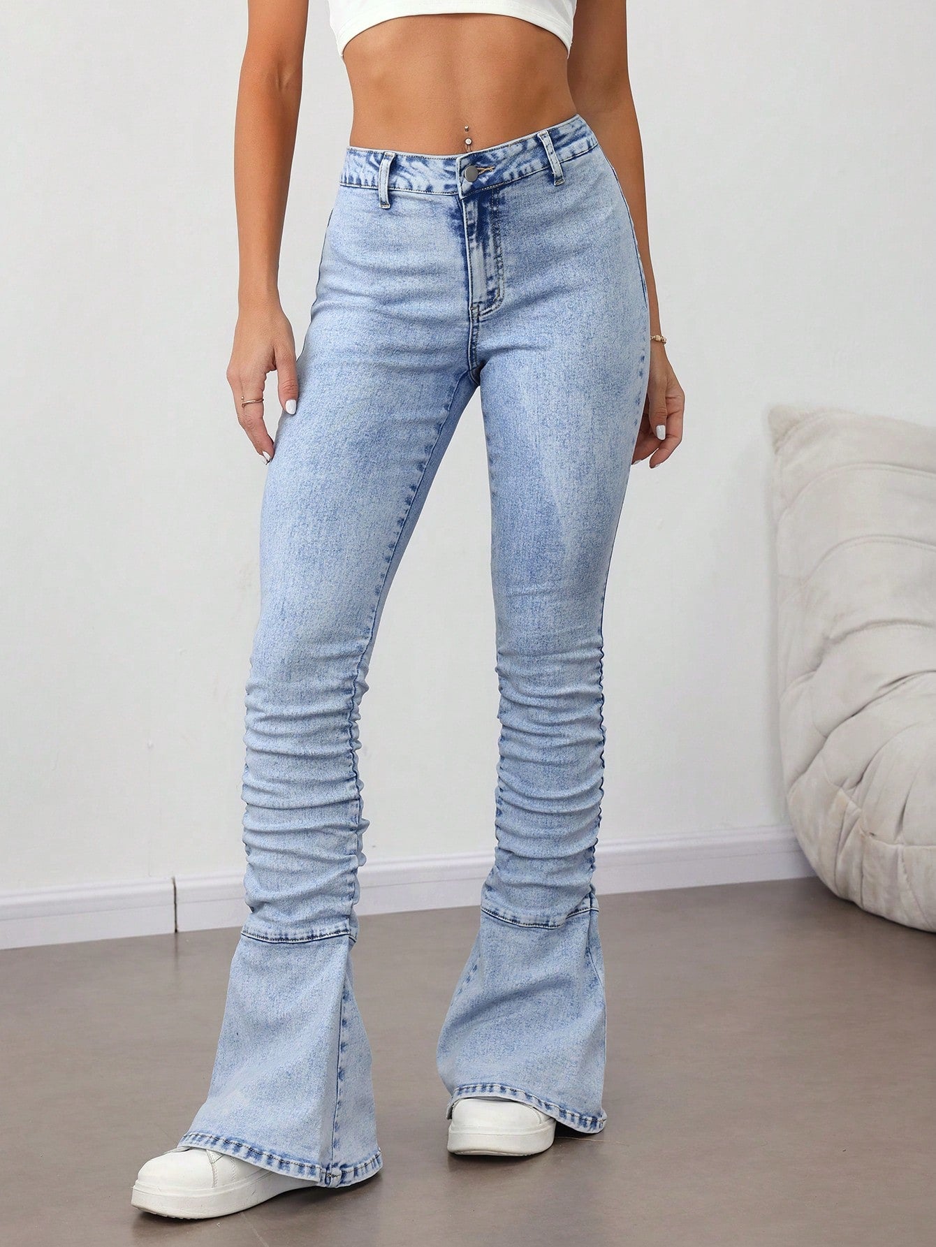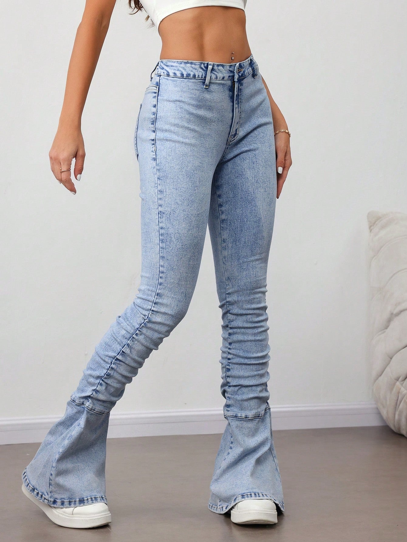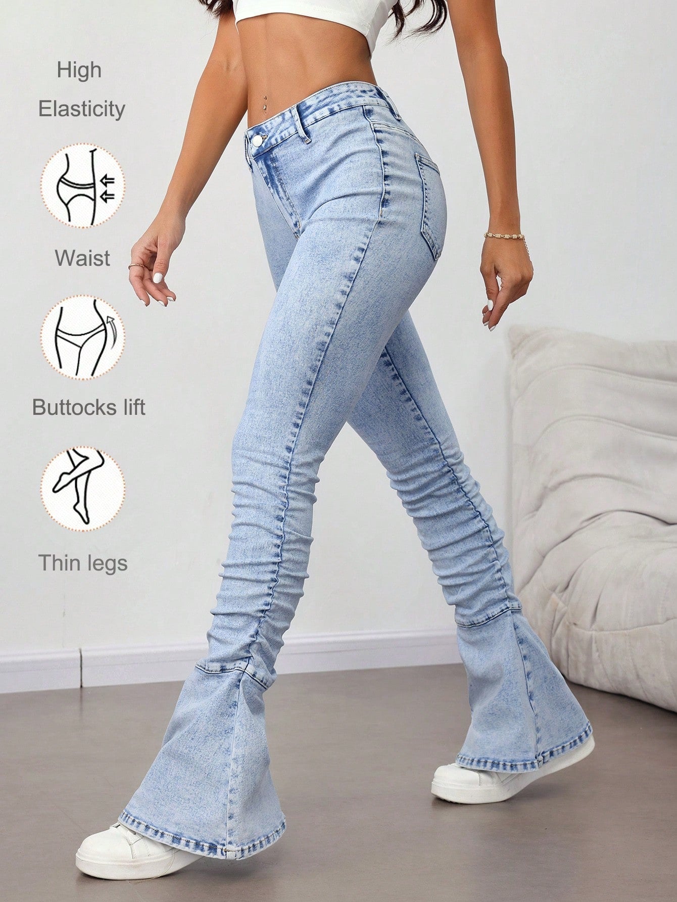 Tall Women's Casual Elastic Skinny Flared Jeans, BlueWomen Summer Clothes Jeans Pants Women Low Rise