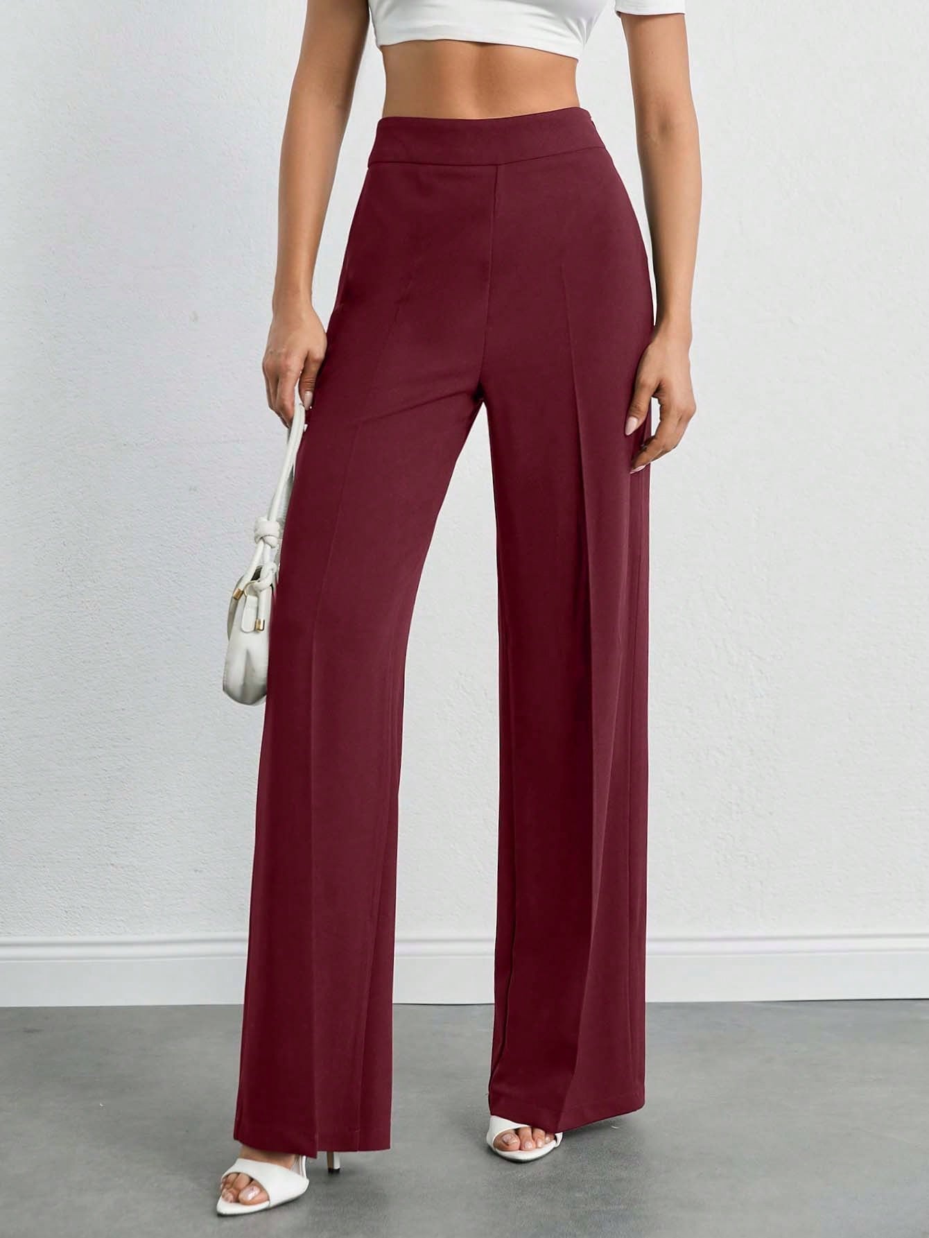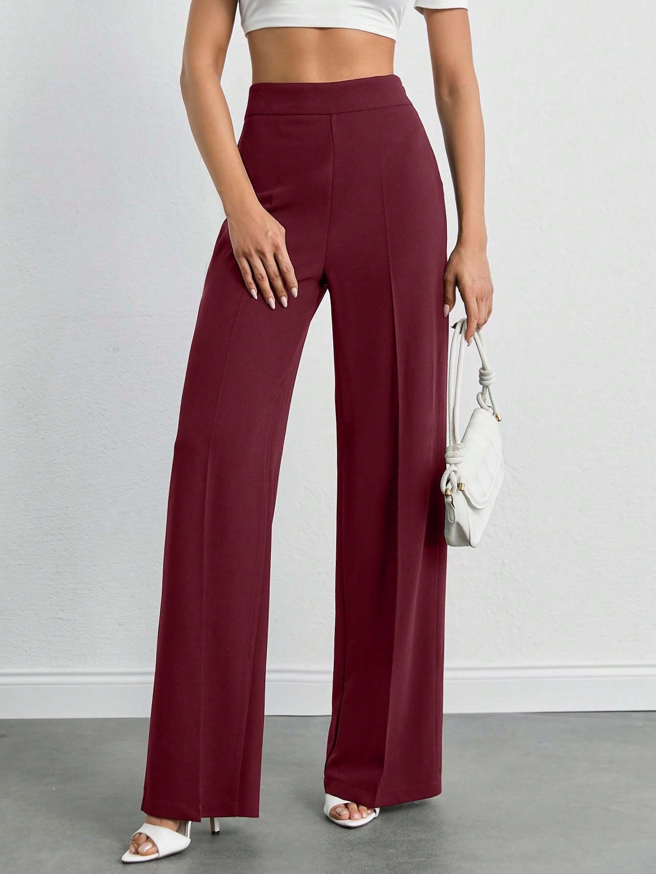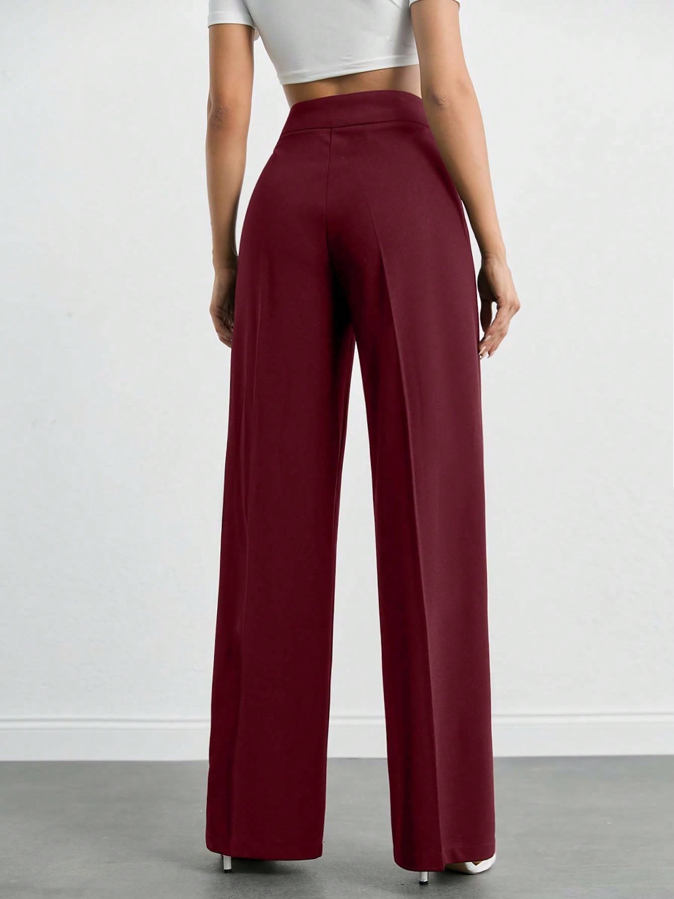 Tall Women's High-Waist Solid Color Casual Wide-Leg Pants