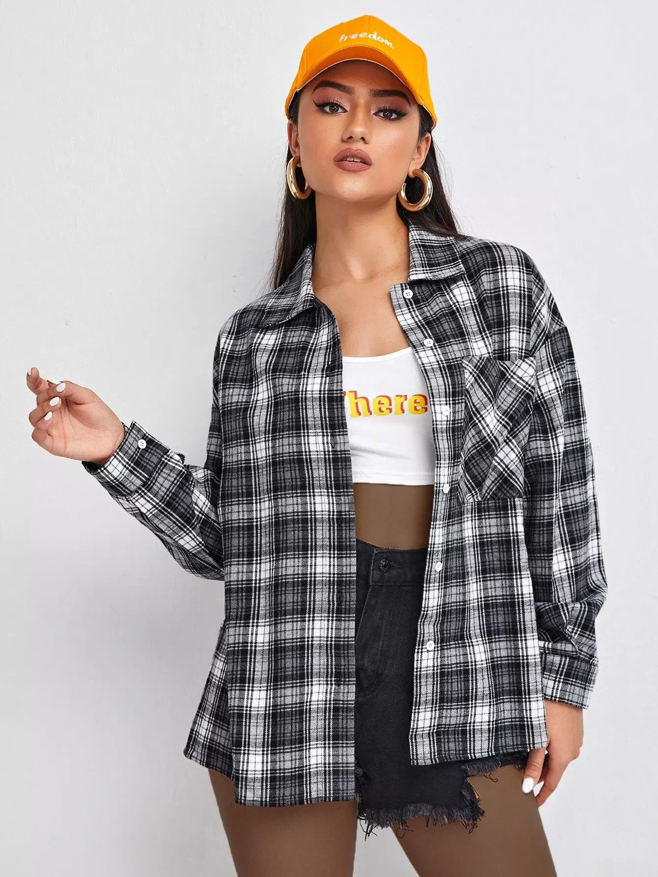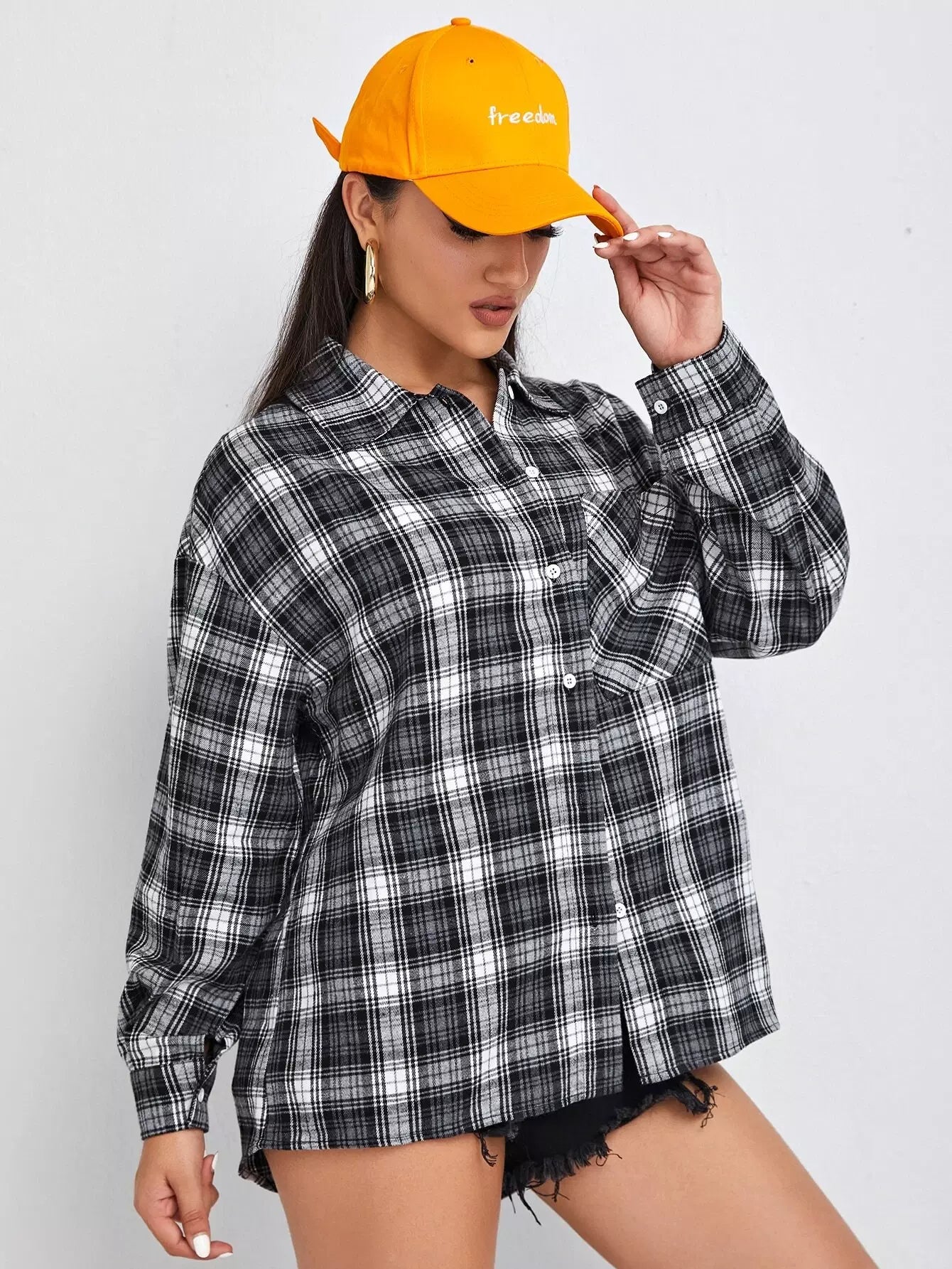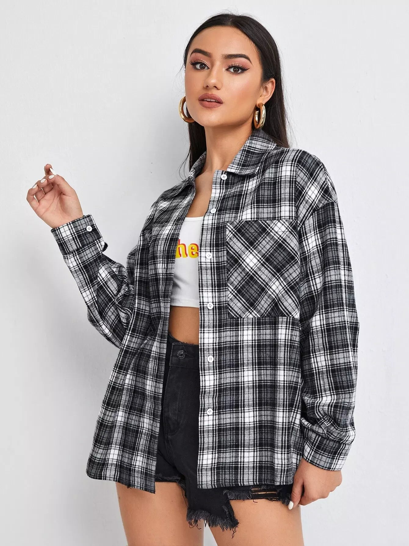 Tartan Plaid Button Front Blouse