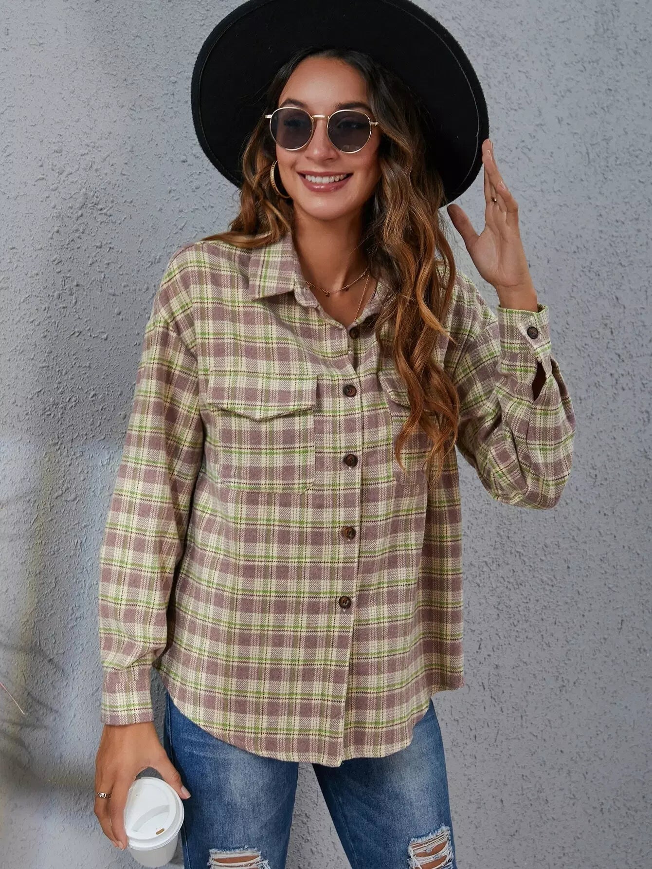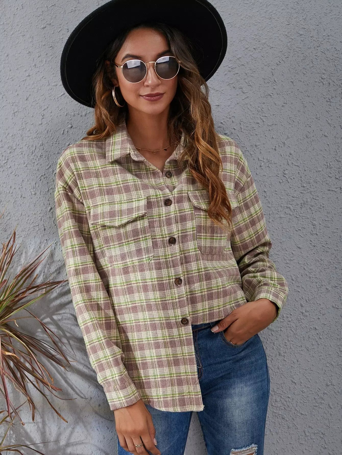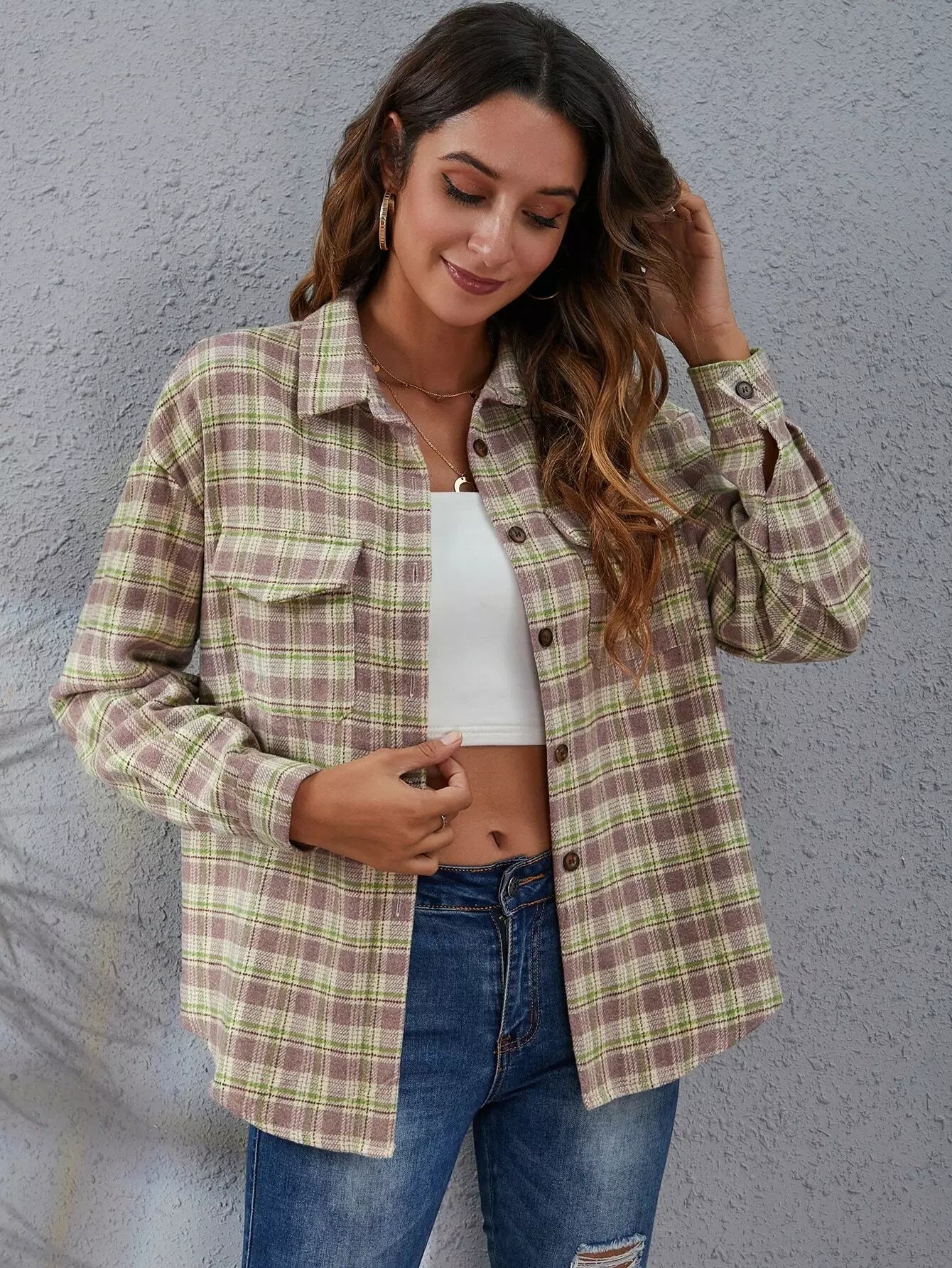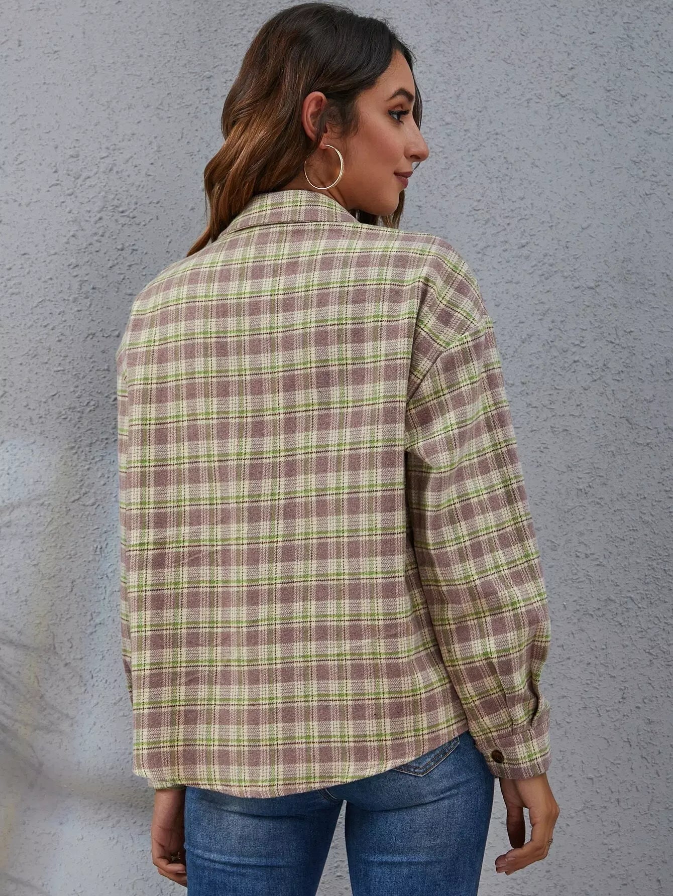 Tartan Print Flap Pocket Drop Shoulder Coat
