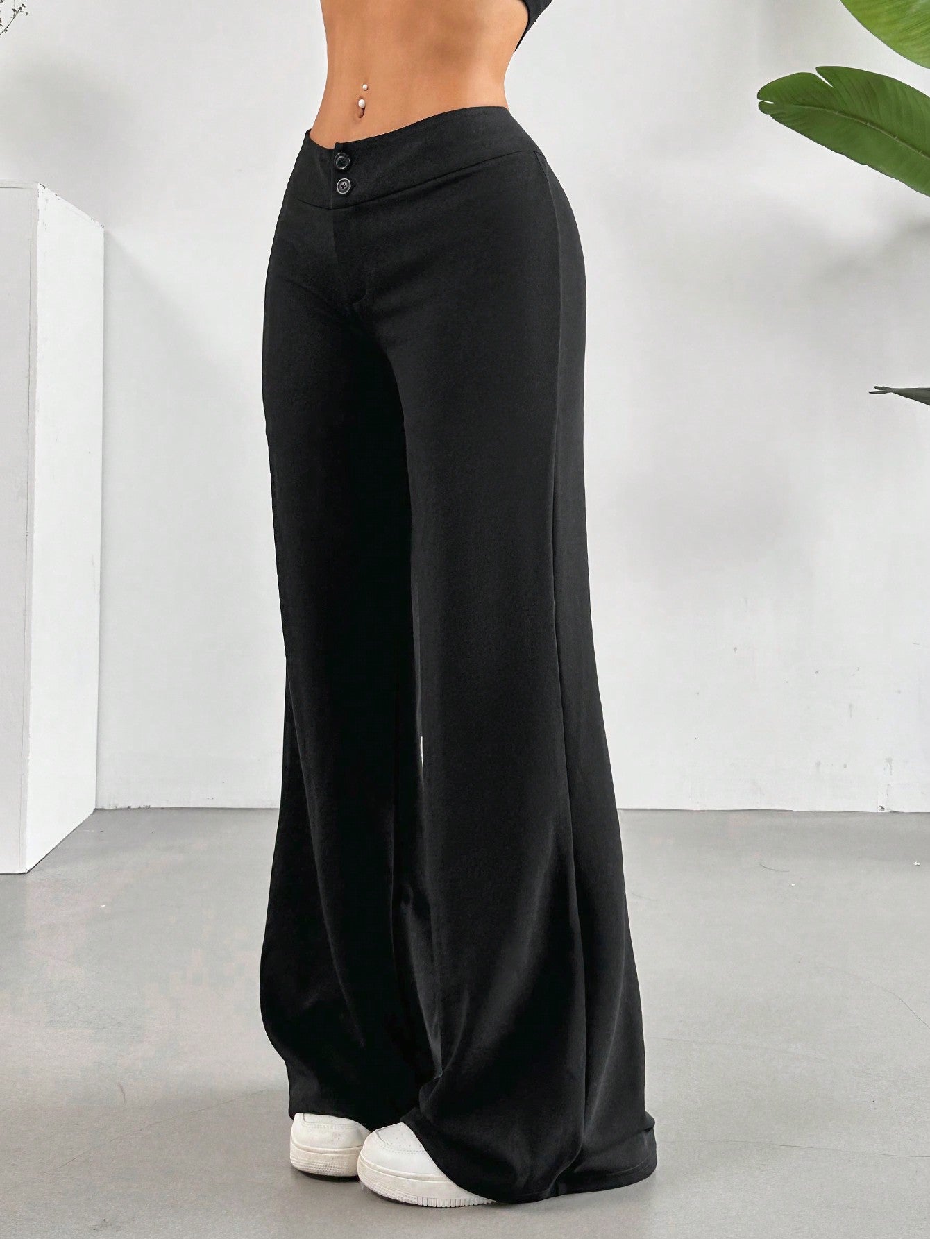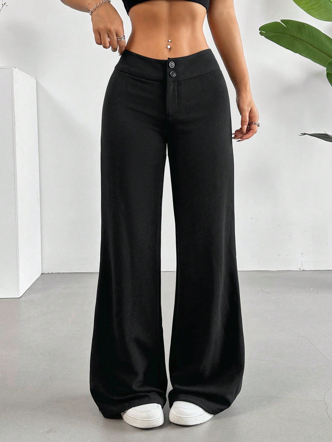 Teen Girls Plain Knit Open Front Fitted Casual Straight Leg Pants