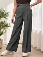 Teenage Girls Faux Pocket Decor Waist Elegant Wide Leg Pants For Commute